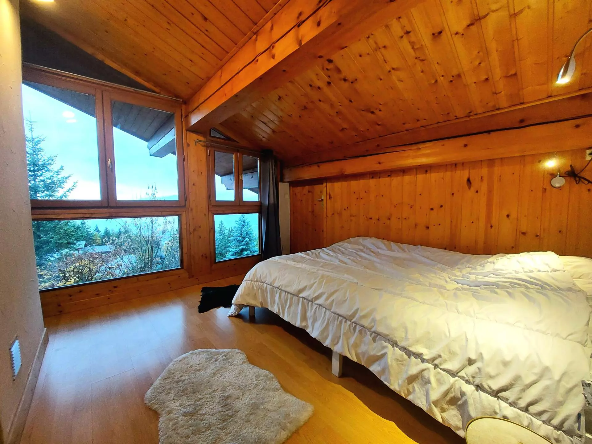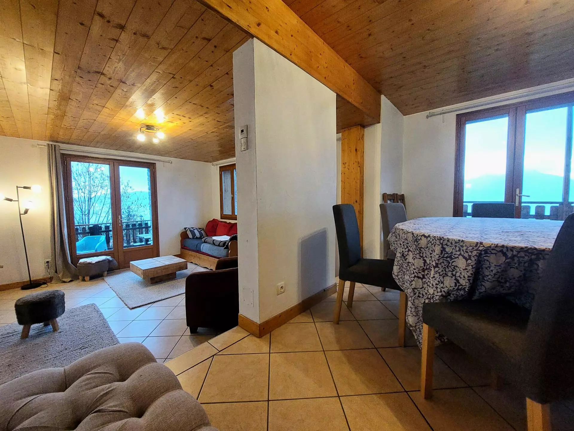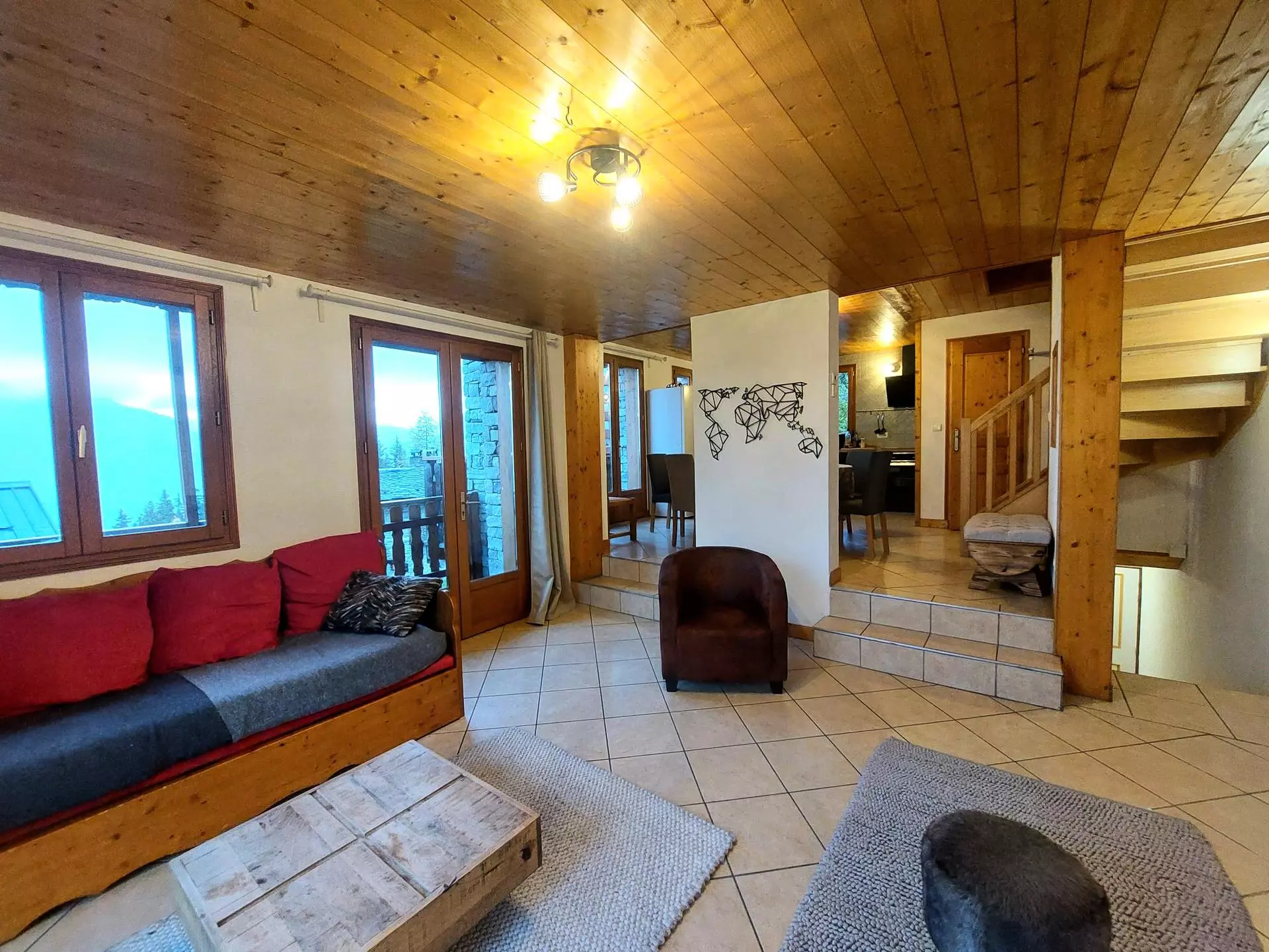 Chalet mit einer Fläche von 100 m², für 8 Personen, in La Croisette gelegen, 1 km vom Zentrum von Les Arcs 1800 entfernt, nach Südwesten ausgerichtet mit Terrasse und Balkon mit Blick auf das Tal