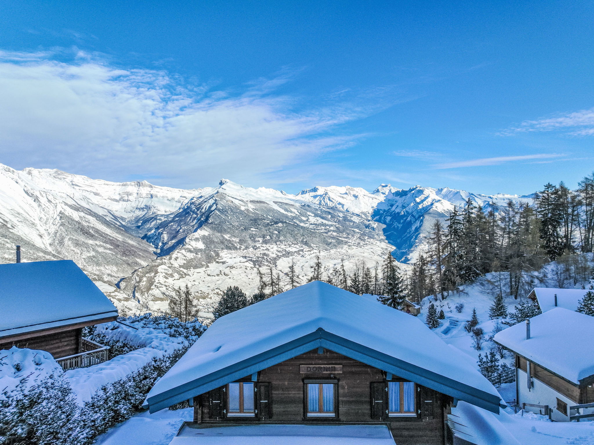 "Dorine", 4-Zimmer-Chalet 80 m2, Nordlage. Objekt geeignet für 2 Erwachsene + 3 Kinder. Teilweise renoviert im Jahre 2021, zweckmässig und schön eingerichtet: Eingang. Wohn-/Esszimmer mit Kabel-TV. Ausgang zur Terrasse. Offene Küche (Backofen, Geschirrspüler, 4 Induktionskochplatten, Toaster, Wasserkocher, elektrische Kaffeemaschine, Kapseln für die Kaffeemaschine (Nespresso) extra, Racletteofen, Fondue Set (Käse)). Sep. WC. E-Heizung. Obergeschoss: 2 Zimmer, jedes Zimmer mit 2 Betten (90 cm, Länge 200 cm). Ausgang zum Balkon, Richtung Norden. 1 kleines Kinderzimmer mit 1 Bett (120 cm, Länge 190 cm). Dusche/WC. Balkon, Nordlage, Terrasse, Nordlage. Terrassenmöbel, Gartengrill. Schöne Sicht auf die Berge. Zur Verfügung: Waschmaschine, Wäschetrockner, Babybett. Internet (WLAN, gratis). Parkplatz (2 Autos) beim Haus. Bitte beachten: Nichtraucher-Haus. Maximal 1 Haustier/Hund erlaubt.
