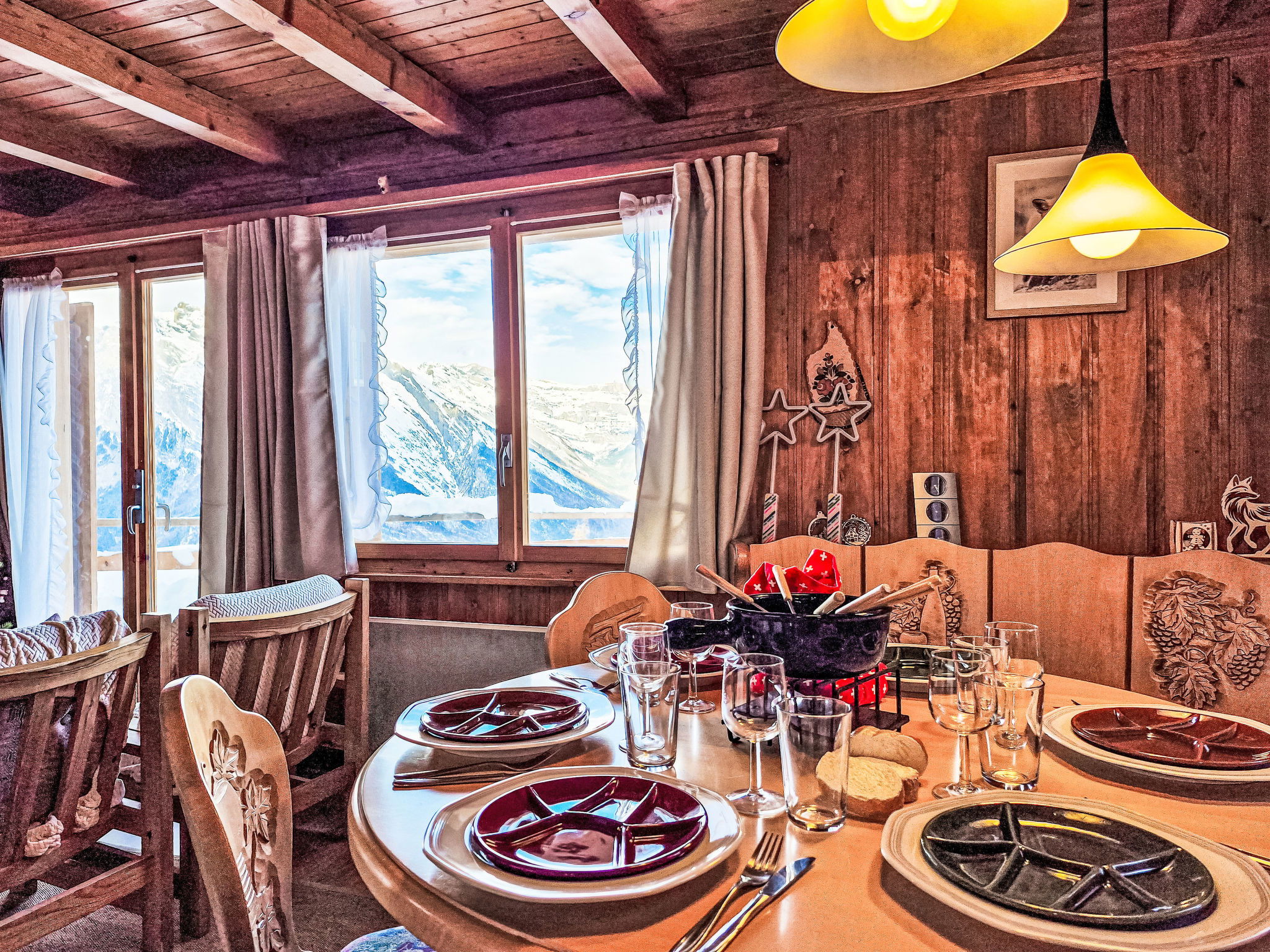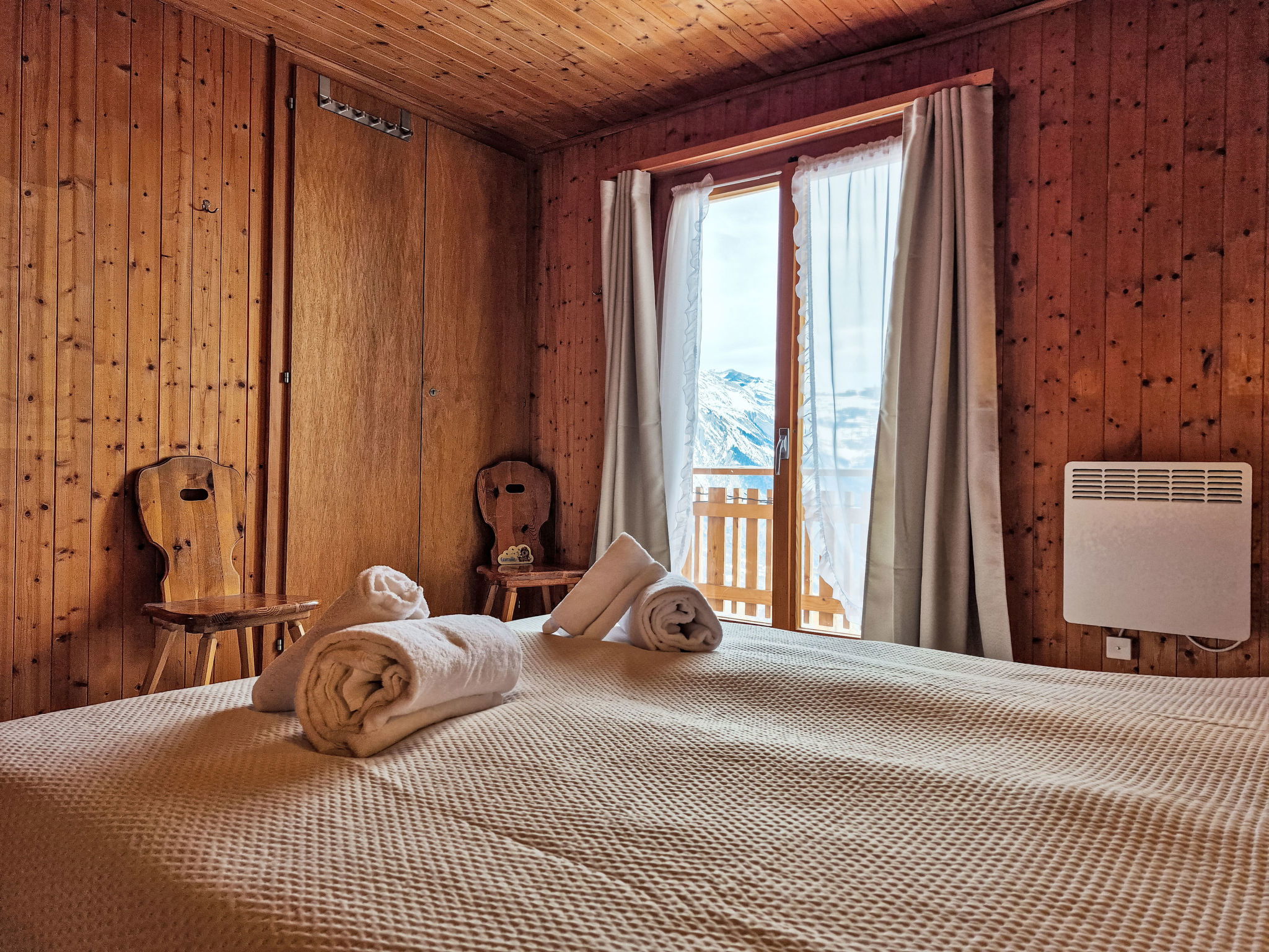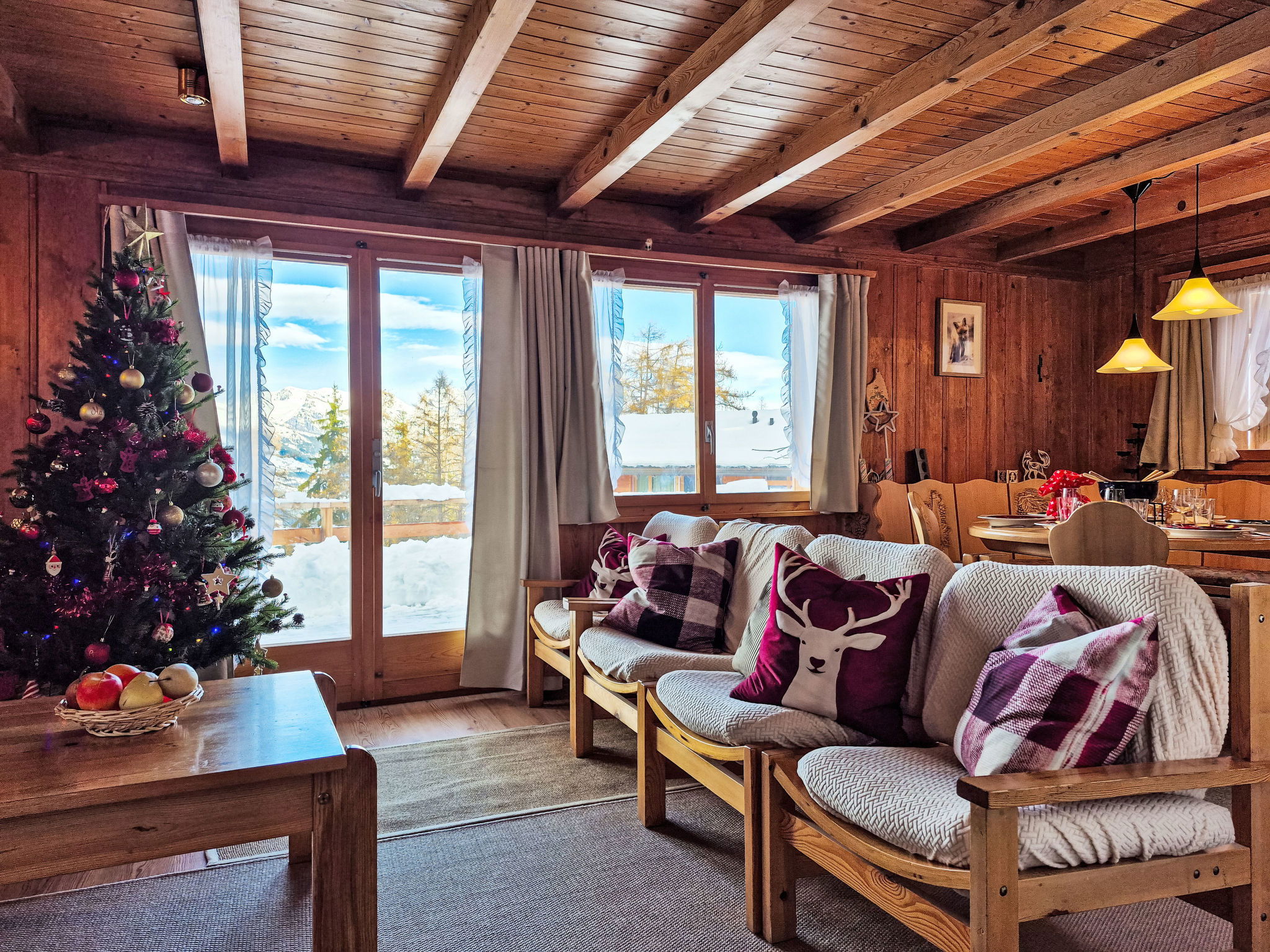 "La Tanière", 4-Zimmer-Chalet 78 m2 auf 2 Stockwerken, Nordlage. Objekt geeignet für 4 Erwachsene + 2 Kinder. Komfortabel und schön eingerichtet: Eingang. Wohn-/Esszimmer mit Sat-TV. Ausgang zum Garten, Richtung Norden. Offene Küche (4 Kochplatten, Backofen, Toaster, elektrische Kaffeemaschine, Kapseln für die Kaffeemaschine (Nespresso) extra, Racletteofen, Fondue Set (Käse)). Sep. WC. Obergeschoss: 2 Zimmer, jedes Zimmer mit 1 Doppelbett. Ausgang zum Balkon, Richtung Norden. 1 Kinderzimmer mit 1 x 2 Etagenbetten. Dusche/WC. Balkon, Terrasse. Terrassenmöbel, Gartengrill. Sehr schöne Sicht auf die Berge. Zur Verfügung: Waschmaschine, Wäschetrockner, Babybett. Parkplatz (2 Autos). Bitte beachten: Nichtraucher-Unterkunft. Maximal 1 Haustier/Hund erlaubt. TV nur DE.