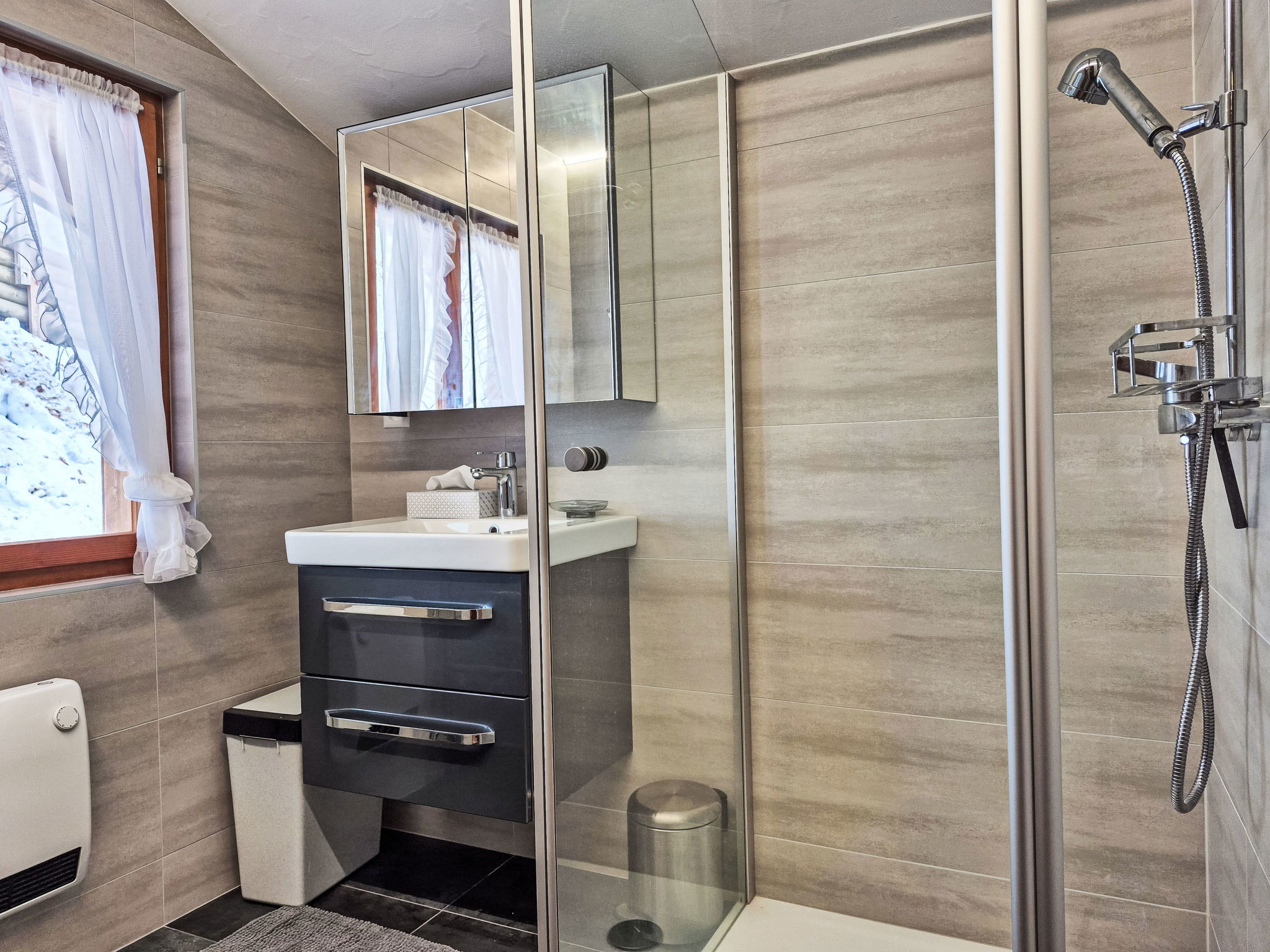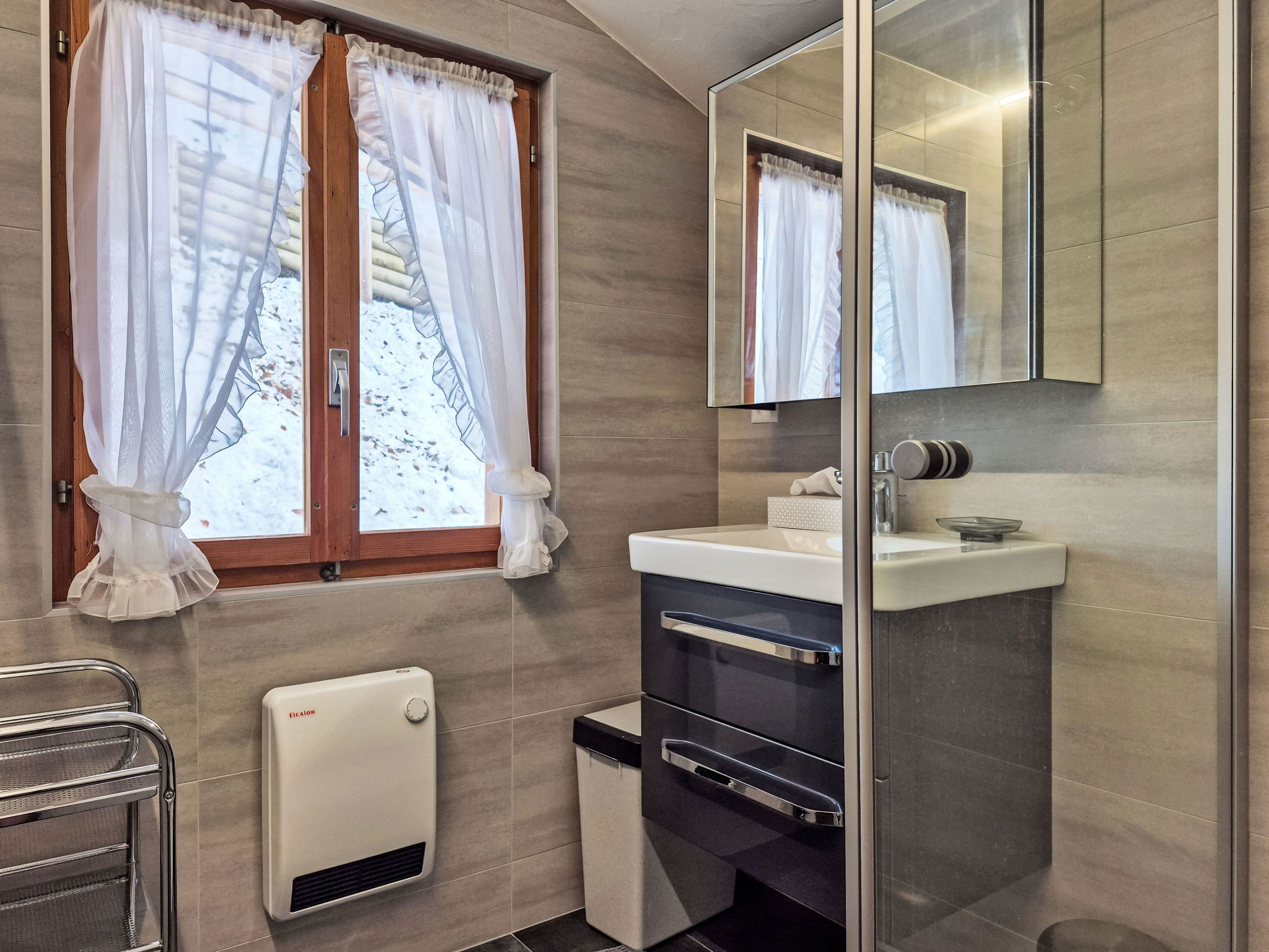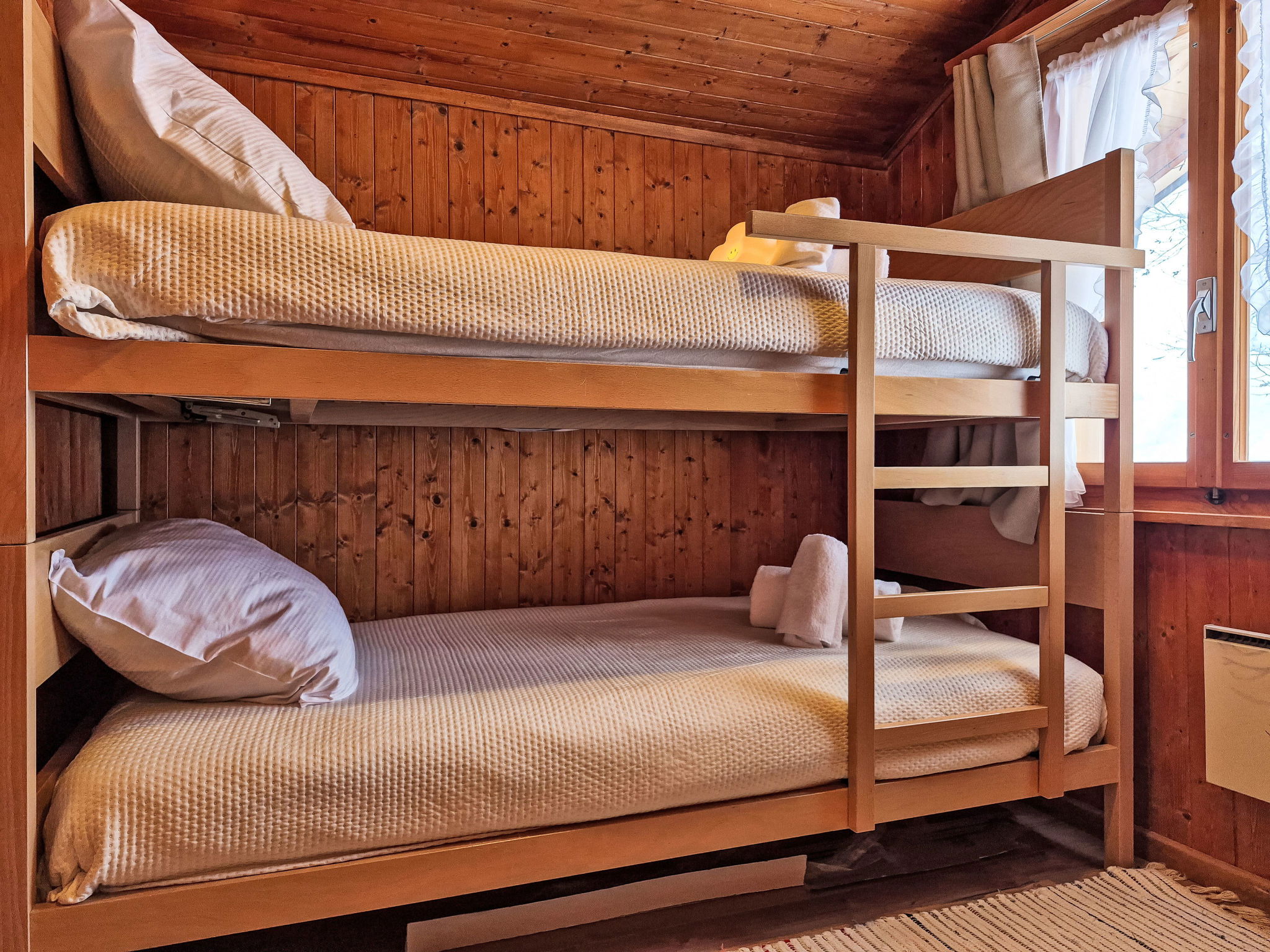 "La Tanière", 4-Zimmer-Chalet 78 m2 auf 2 Stockwerken, Nordlage. Objekt geeignet für 4 Erwachsene + 2 Kinder. Komfortabel und schön eingerichtet: Eingang. Wohn-/Esszimmer mit Sat-TV. Ausgang zum Garten, Richtung Norden. Offene Küche (4 Kochplatten, Backofen, Toaster, elektrische Kaffeemaschine, Kapseln für die Kaffeemaschine (Nespresso) extra, Racletteofen, Fondue Set (Käse)). Sep. WC. Obergeschoss: 2 Zimmer, jedes Zimmer mit 1 Doppelbett. Ausgang zum Balkon, Richtung Norden. 1 Kinderzimmer mit 1 x 2 Etagenbetten. Dusche/WC. Balkon, Terrasse. Terrassenmöbel, Gartengrill. Sehr schöne Sicht auf die Berge. Zur Verfügung: Waschmaschine, Wäschetrockner, Babybett. Parkplatz (2 Autos). Bitte beachten: Nichtraucher-Unterkunft. Maximal 1 Haustier/Hund erlaubt. TV nur DE.
