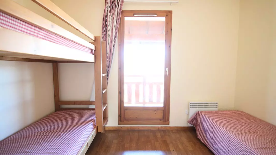 - Obergeschoss: ein Schlafzimmer mit einem Doppelbett und Zugang zu einem kleinen Nordbalkon, ein Schlafzimmer mit einem Etagenbett und einem Einzelbett, Schrank und Kleiderschrank. Badezimmer.