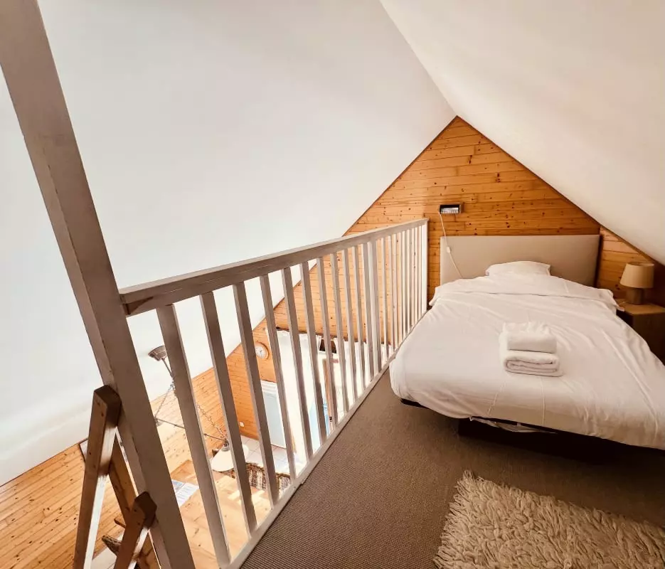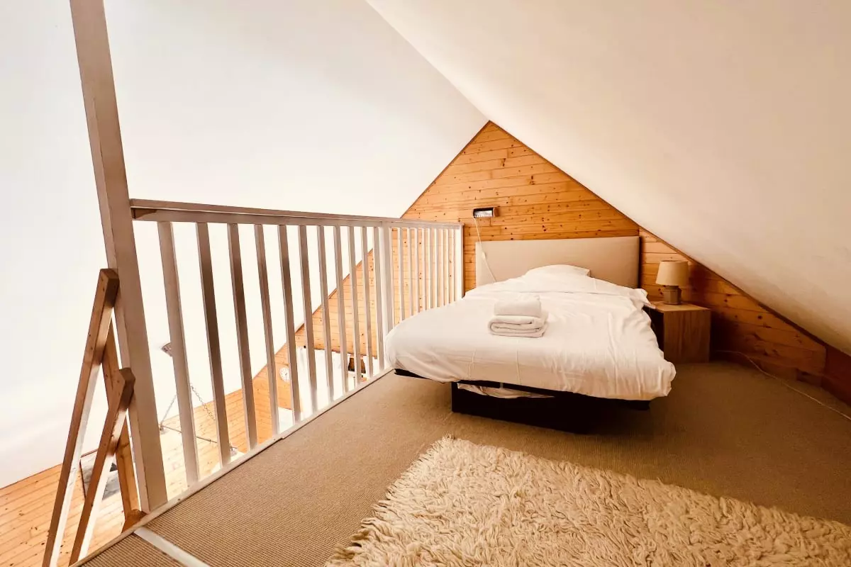 - ein Zwischengeschoss mit einem Einzelbett;