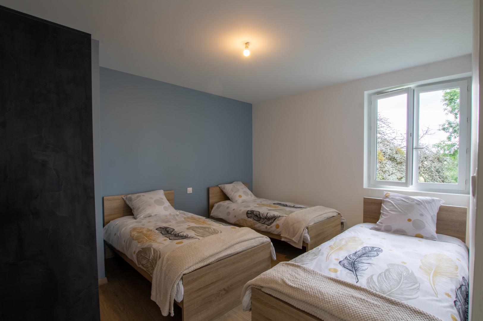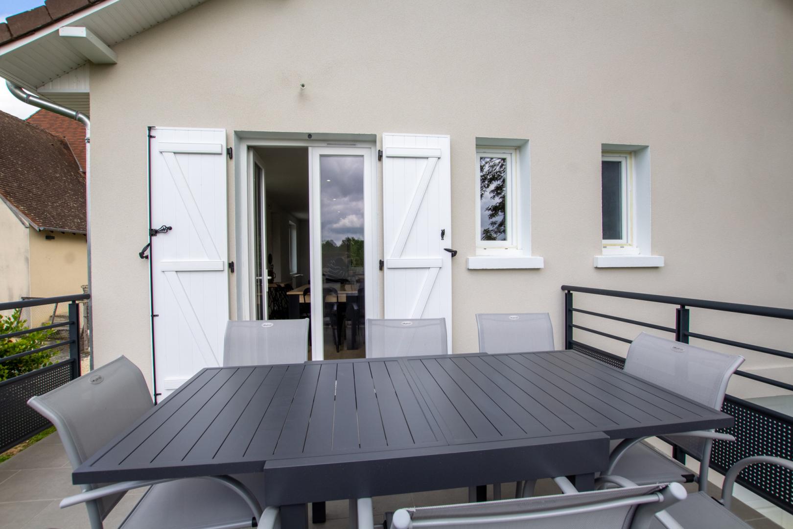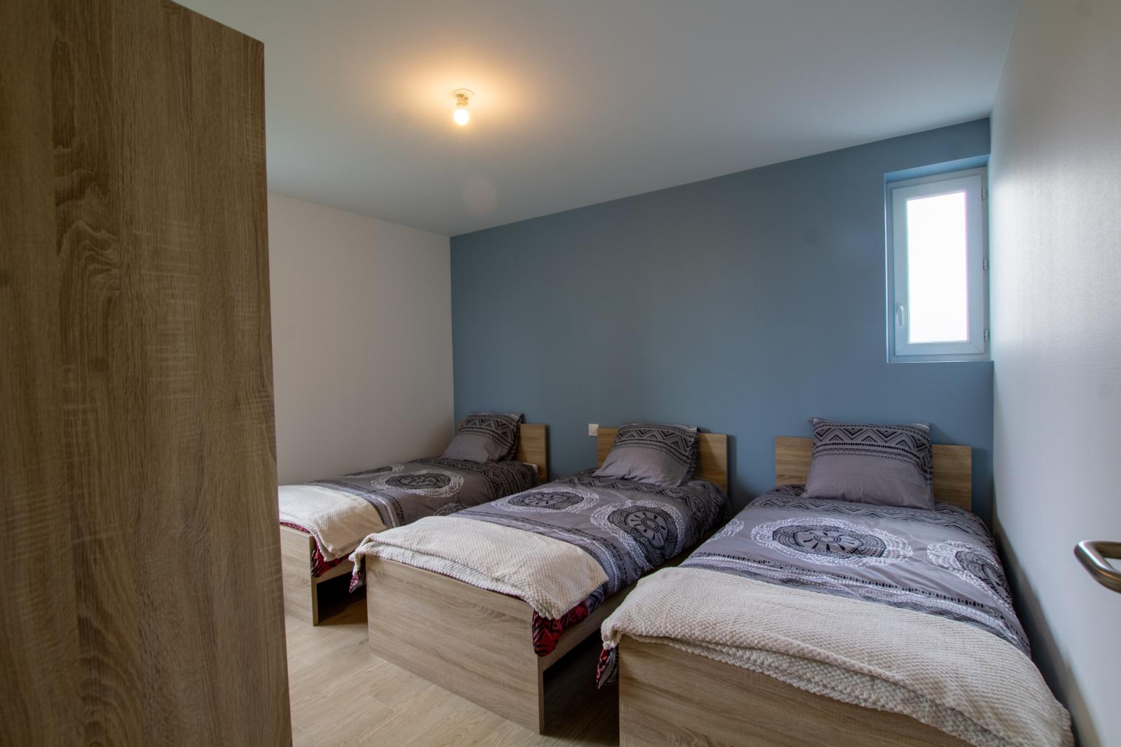 Gemeinschaftsunterkunft im Dorf hinter dem Rathaus. Kürzlich renoviertes Haus mit 66 m², einer 16 m² großen Terrasse mit Gartenmöbeln, Markise, Grill und eingezäuntem Grundstück von ca. 100 m² (Gras, Bäume und Innenhof) mit Tor und 1,20 m hohem Zaun. Wohnzimmer mit einem komplett ausgestatteten Küchenbereich (Backofen, Mikrowelle, Kühl-Gefrierkombination, Geschirrspüler, 3-Flammen-Induktionskochfeld), einem Esstisch und einer Sitzecke mit Ecksofa, Sessel und Fernseher. 1 Duschraum. 1 WC. 2 Schlafzimmer mit jeweils 3 Betten à 90 cm.