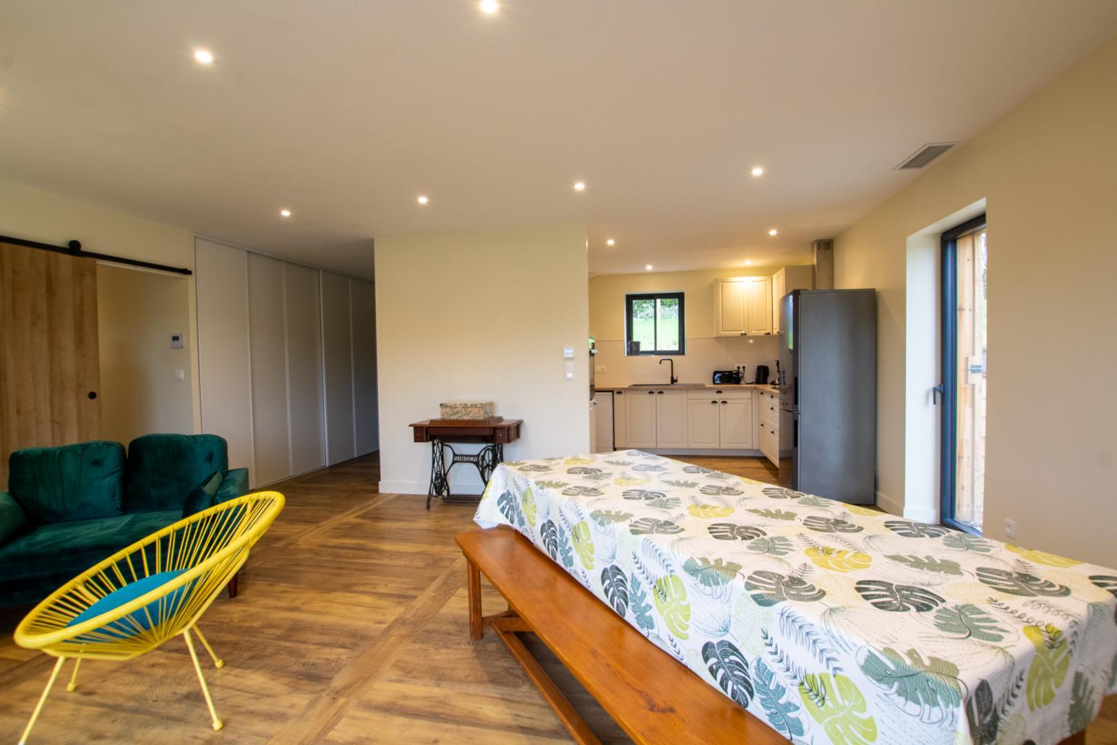Einfamilienhaus in der Gemeinde Sarlat. Ein schöner Hauptraum für 6 Personen, mit einer Einbauküche (Backofen, Geschirrspüler, Mikrowelle), die zum Wohnzimmer (TV, 2 Sofas) und zum Esszimmer hin offen ist. Über den Flur gelangen Sie zu 3 Schlafzimmern mit 2 160 x 200 cm großen Betten und 2 90 x 190 cm großen Betten, einem Badezimmer mit ebenerdiger Dusche, 2 Waschbecken und WC. Separate Toiletten. Private Terrasse vor dem Ferienhaus mit Grill und Gartenmöbeln. Privater Parkplatz vor Ort. Babyausstattung: Hochstuhl und Reisebett. Endreinigung 80 €. 10 € Bettwäsche/Bett pers. / ändern. Handtücher inklusive. Kaution für Tiere 100 €. Dieses von den Eigentümern erbaute Ferienhaus im Tabaktrockner-Stil zeugt von einem bemerkenswerten Engagement für die Erhaltung des lokalen Erbes. Die Unterkunft liegt in der Nähe berühmter Reiseziele wie Sarlat, Les Eyzies de Tayac und dem Internationalen Zentrum für Höhlenkunst Lascaux 4 und bietet Besuchern die Möglichkeit, in die Geschichte und Kultur der Region einzutauchen.
