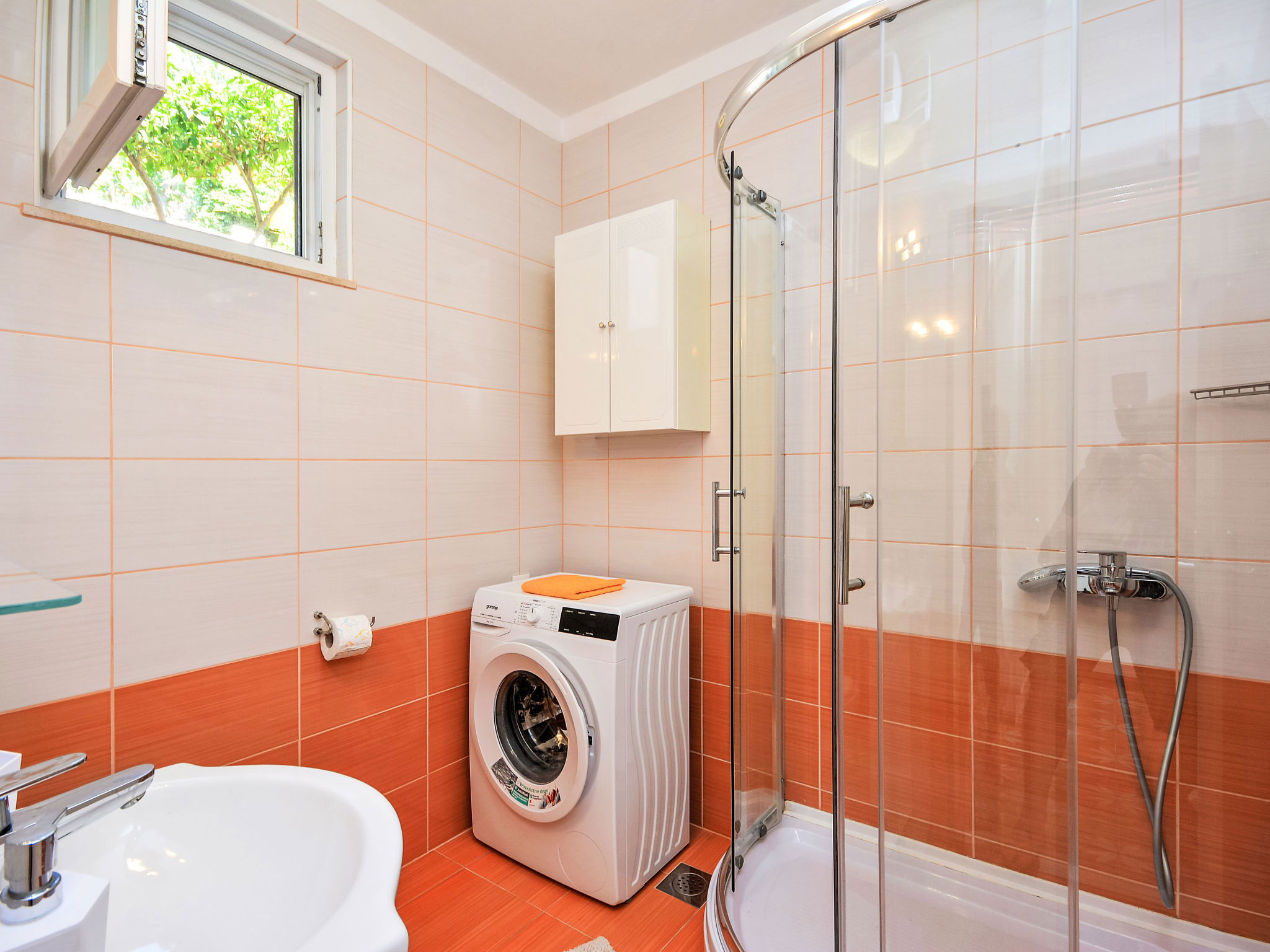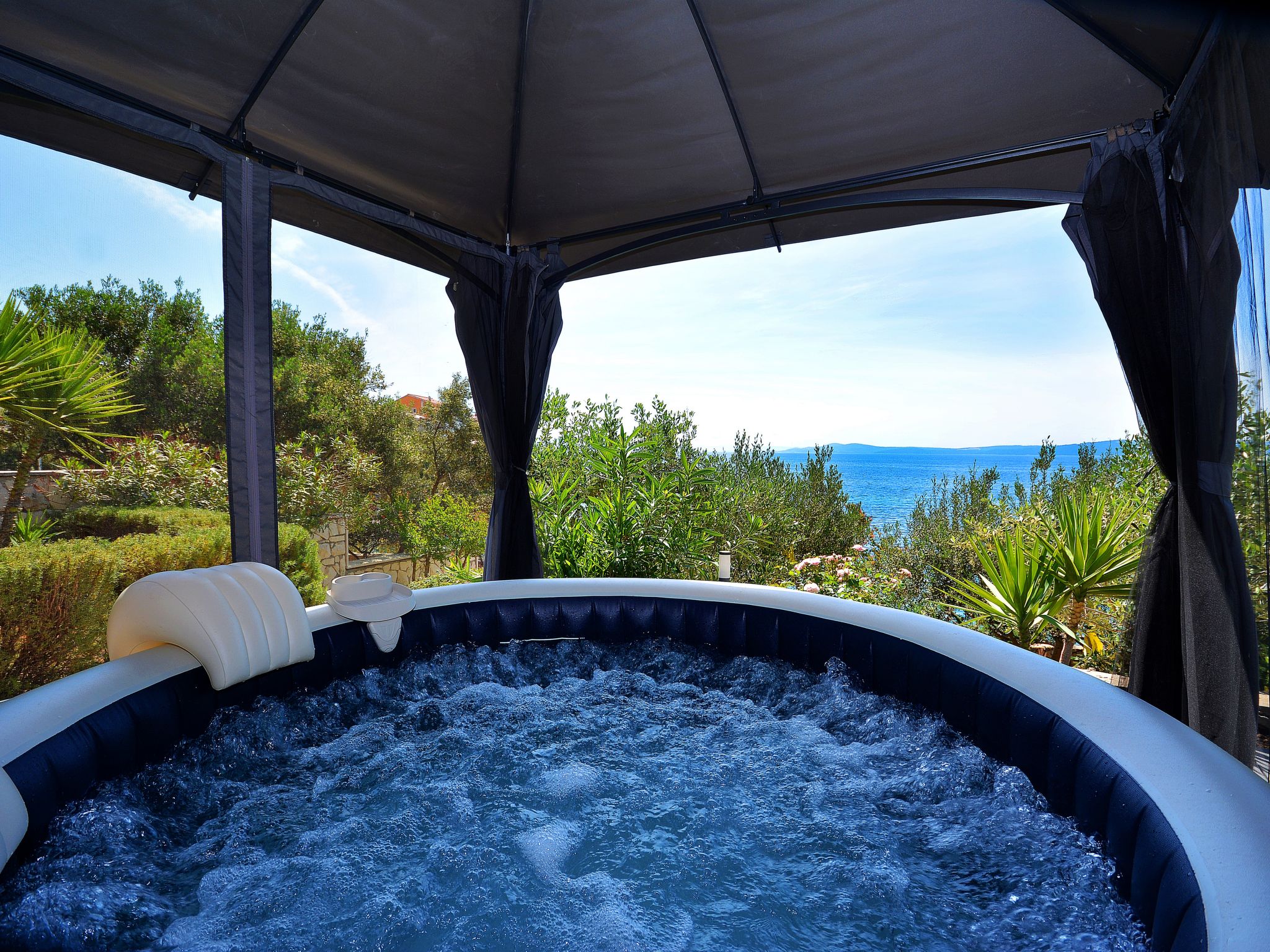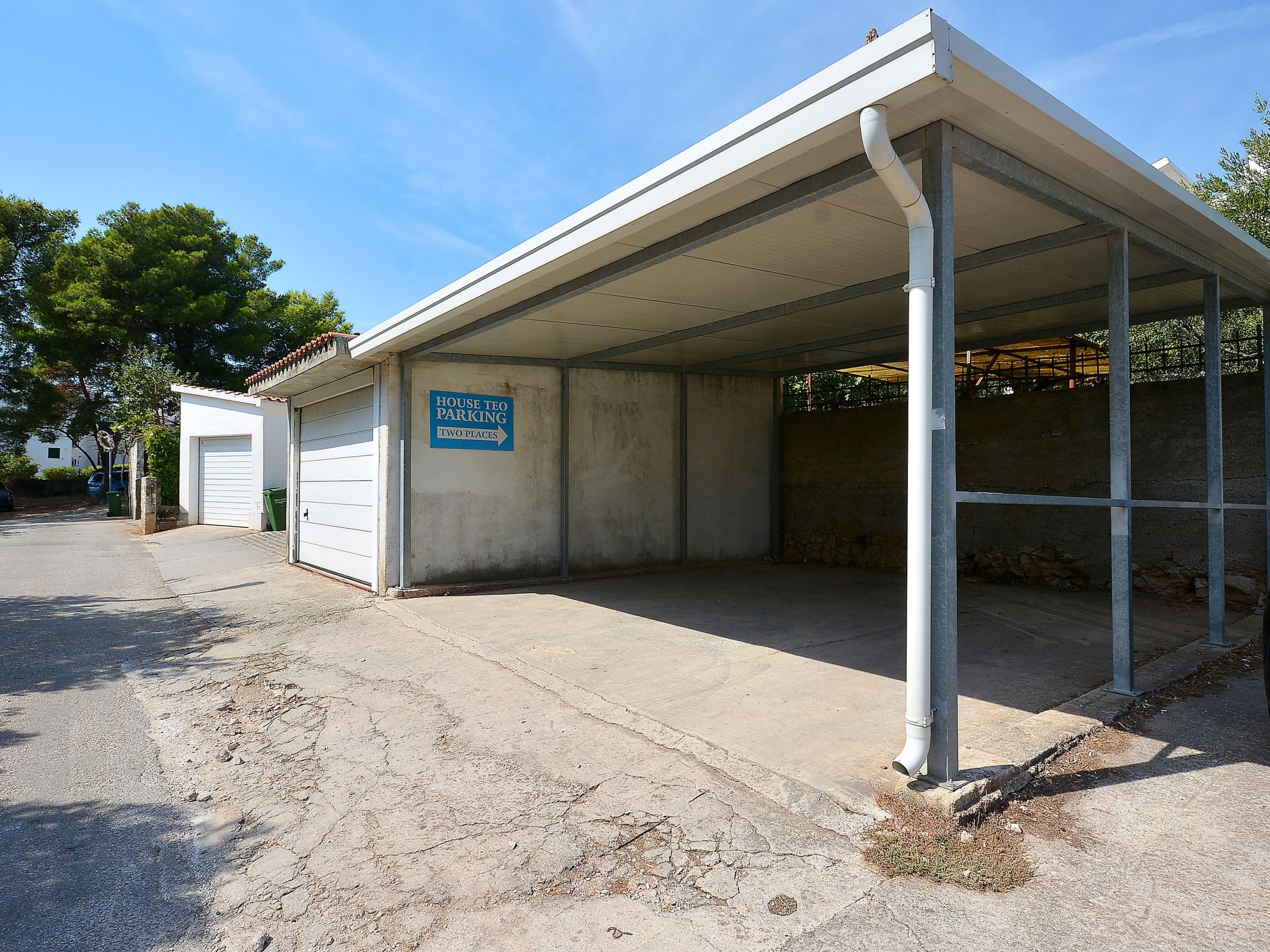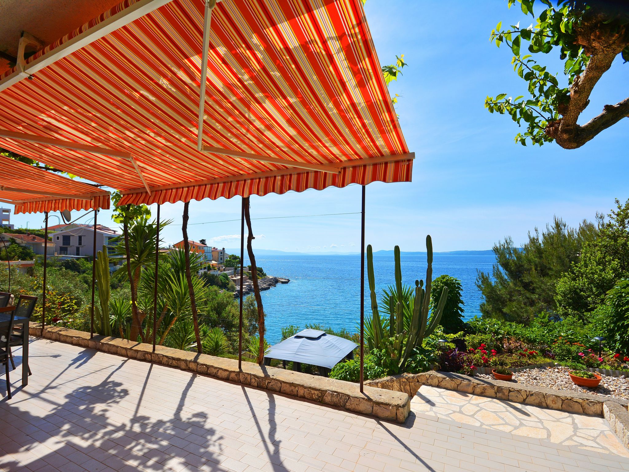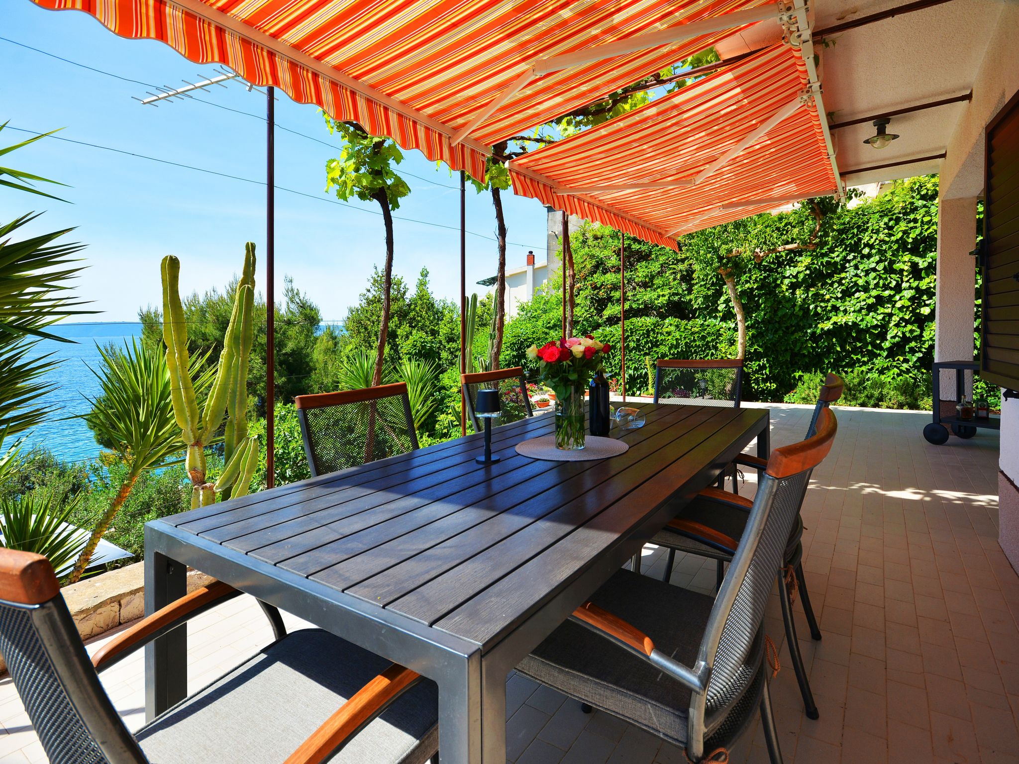 Haus "Teo", auf 2 Stockwerken. 5 km vom Zentrum von Trogir, sonnige, erhöhte Lage am Hang, 30 m vom Meer, 30 m vom Strand. Zur Alleinbenutzung: Grundstück 650 m2 (eingezäunt), terrassierter Garten. Terrasse (50 m2), Gartenmöbel. Im Hause: Internetzugang, Waschmaschine. 40 m Treppenweg (50 Stufen) bis zum Haus. Parkplatz (für 2 Autos, überdacht) in 80 m. Supermarkt 1.2 km, Restaurant 1.2 km, Café 400 m, Bushaltestelle 1.6 km, Felsstrand, betonierter Strand 30 m. Bitte beachten: Flugplatz 9 km vom Haus.