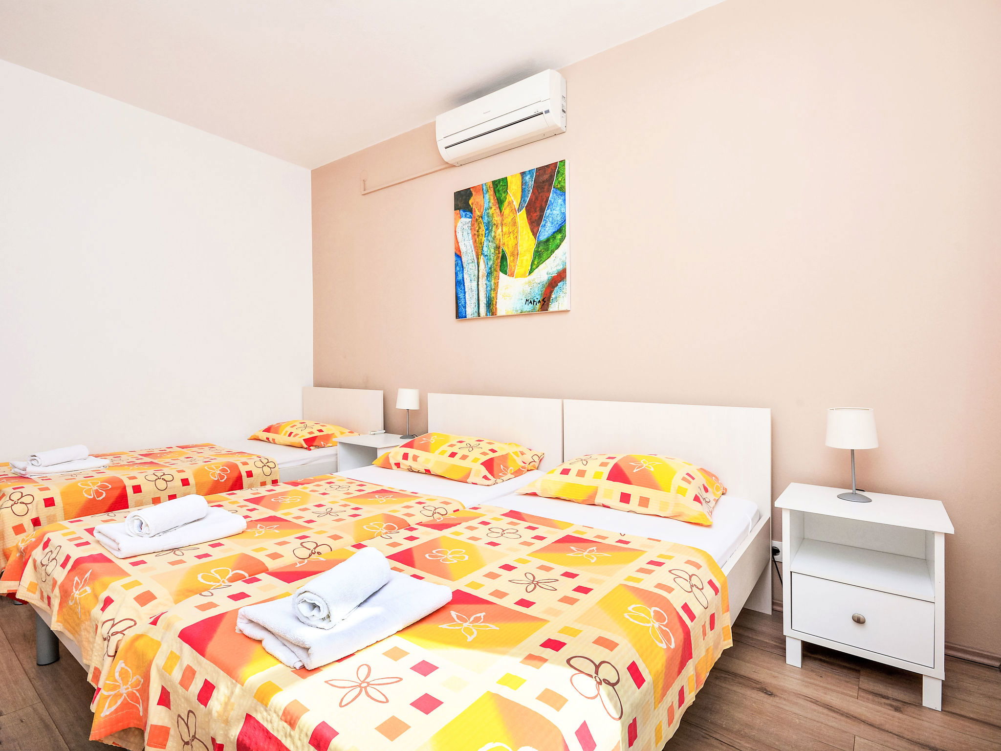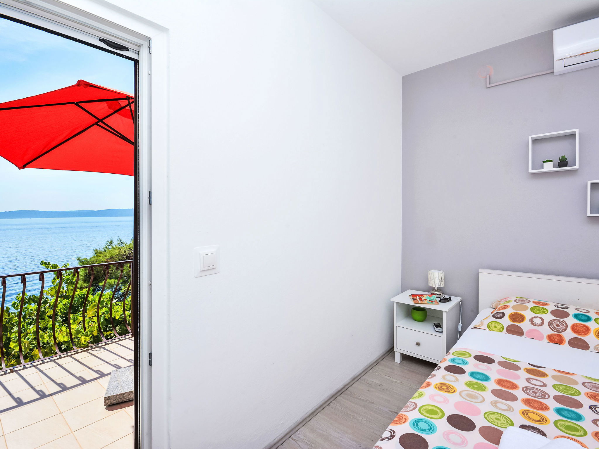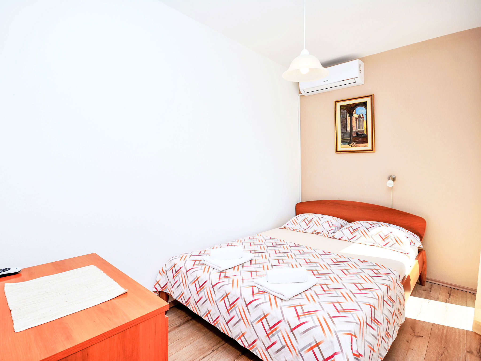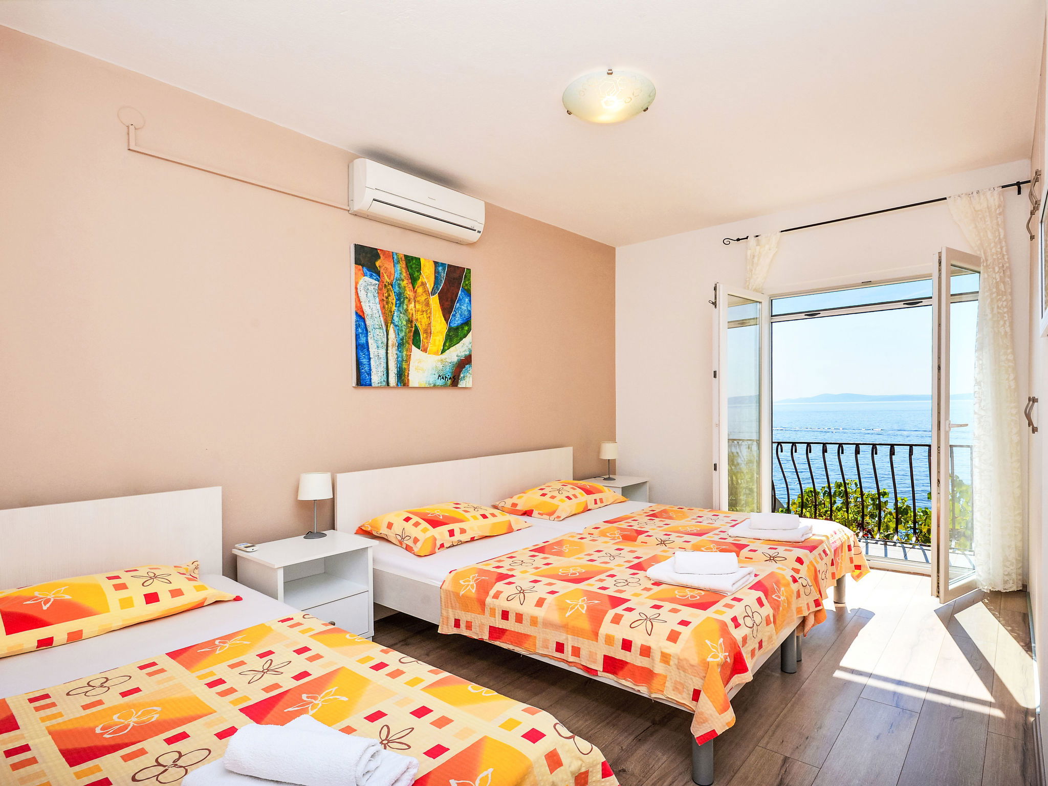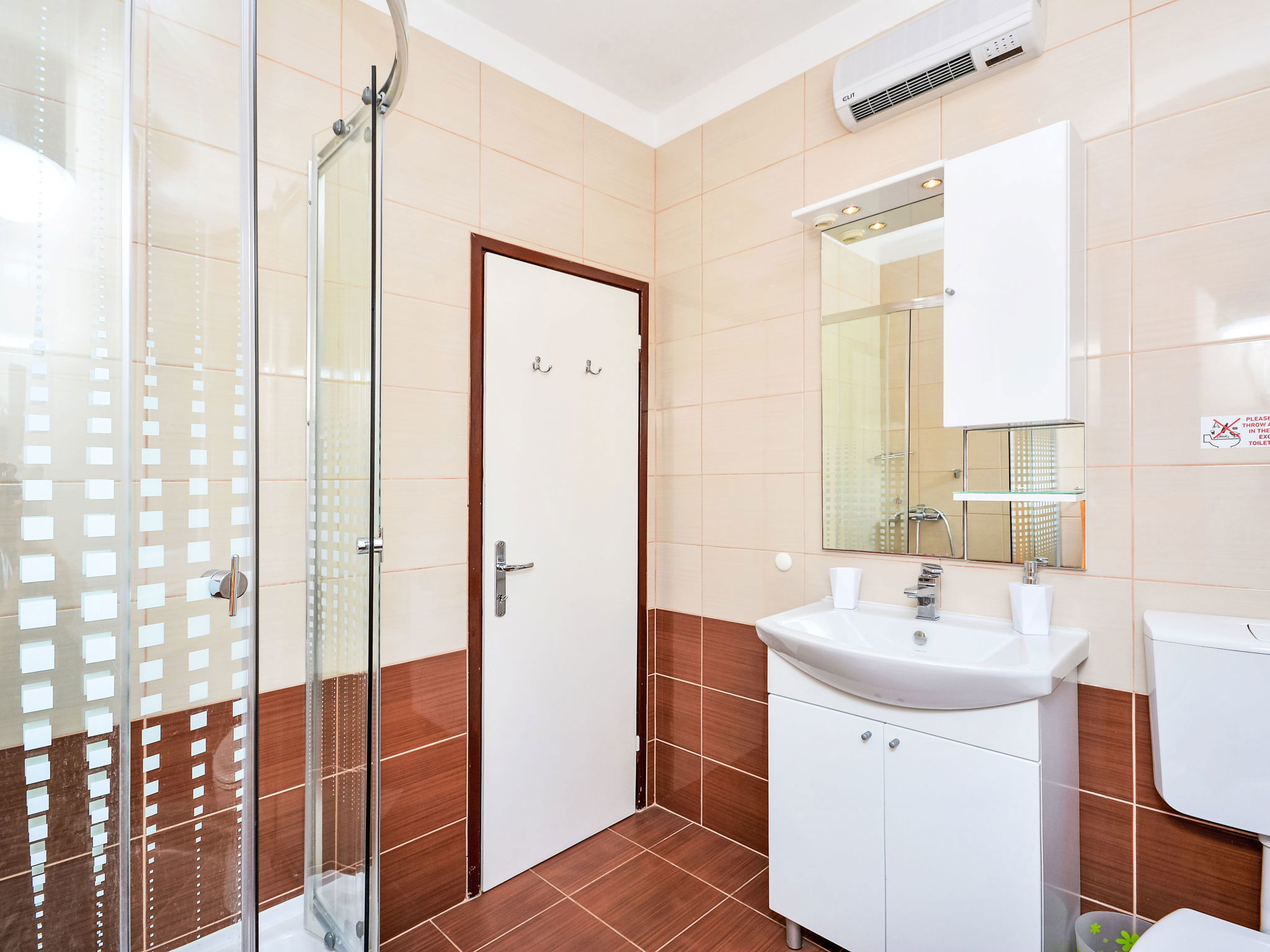 Haus "Teo", auf 2 Stockwerken. 5 km vom Zentrum von Trogir, sonnige, erhöhte Lage am Hang, 30 m vom Meer, 30 m vom Strand. Zur Alleinbenutzung: Grundstück 650 m2 (eingezäunt), terrassierter Garten. Terrasse (50 m2), Gartenmöbel. Im Hause: Internetzugang, Waschmaschine. 40 m Treppenweg (50 Stufen) bis zum Haus. Parkplatz (für 2 Autos, überdacht) in 80 m. Supermarkt 1.2 km, Restaurant 1.2 km, Café 400 m, Bushaltestelle 1.6 km, Felsstrand, betonierter Strand 30 m. Bitte beachten: Flugplatz 9 km vom Haus.