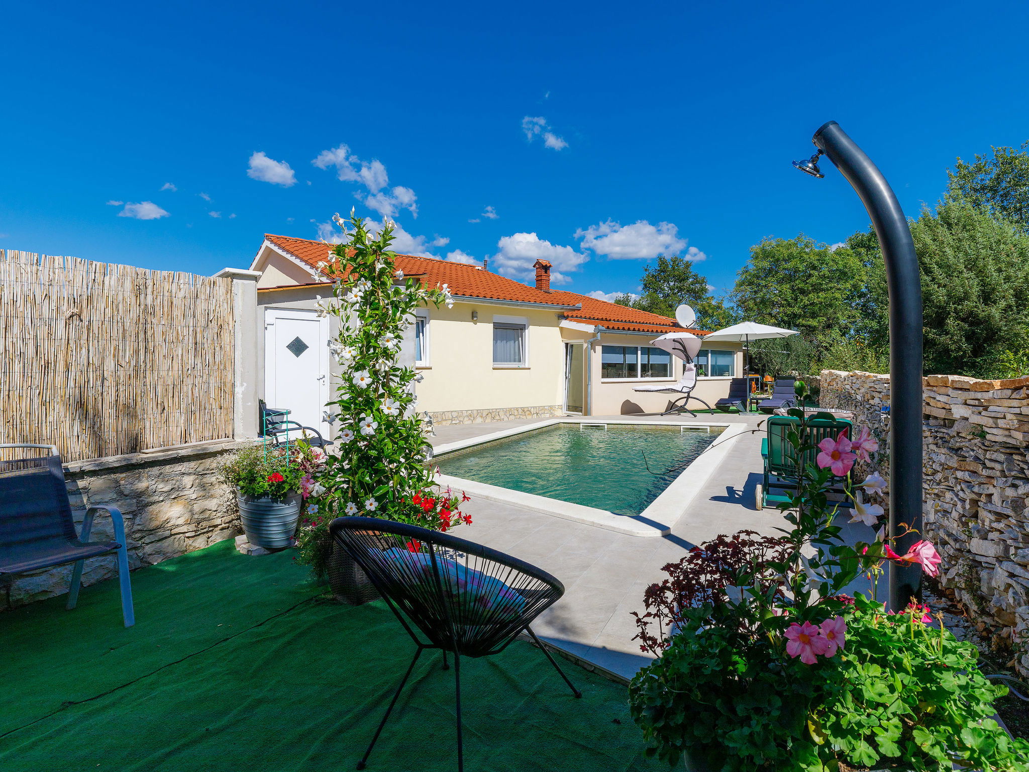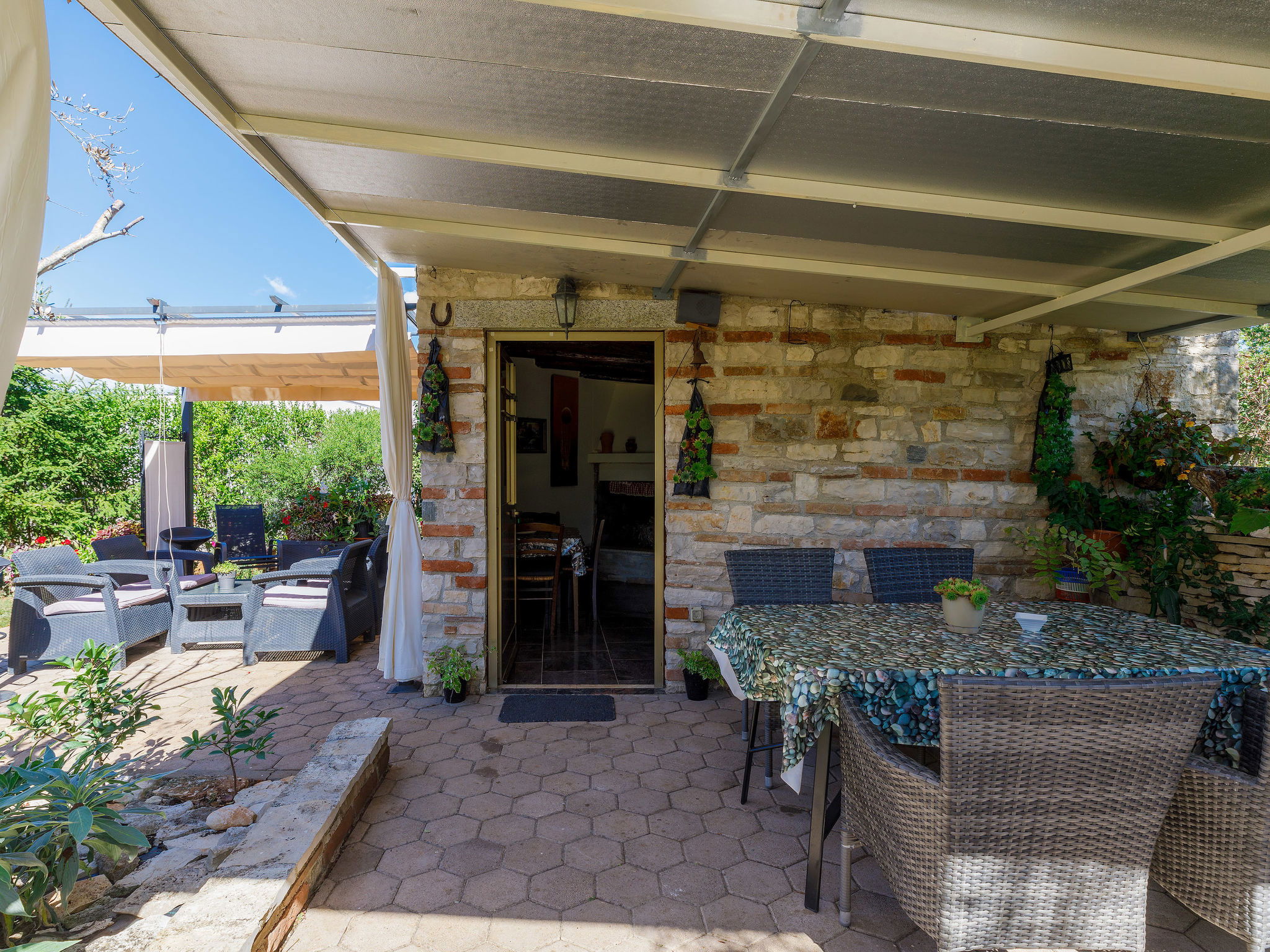 Einfamilienhaus "Marija". Im Weiler Kacana, 3.5 km vom Zentrum von Vodnjan, 10 km vom Zentrum von Pula, 10 km vom Meer. Zur Alleinbenutzung: Grundstück 600 m2 (eingezäunt), Pflanzen und Blumen, Schwimmbad (28 m2, 135 - 140 cm tief, saisonale Verfügbarkeit: 13.Mai. - 13.Okt.) mit Innentreppe. Ungleichmässige Schwimmbadform, WC im Poolbereich, Aussendusche, Tischtennis, Terrasse, Gartenmöbel, Poolpflege durch den Besitzer/Gärtner. Im Hause: Internetzugang, Billard, Waschmaschine. Zufahrt bis zum Haus (100 m Naturweg). Parkplatz (für 3 Autos) beim Haus auf dem Grundstück. Einkaufsgeschäft 3.5 km, Einkaufszentrum 10 km, Restaurant 3.5 km, Café 3.5 km, Bushaltestelle 2.8 km, Kieselstrand 10 km. Jugendgruppen nur auf Anfrage. Bitte beachten: Flugplatz 15 km vom Haus.