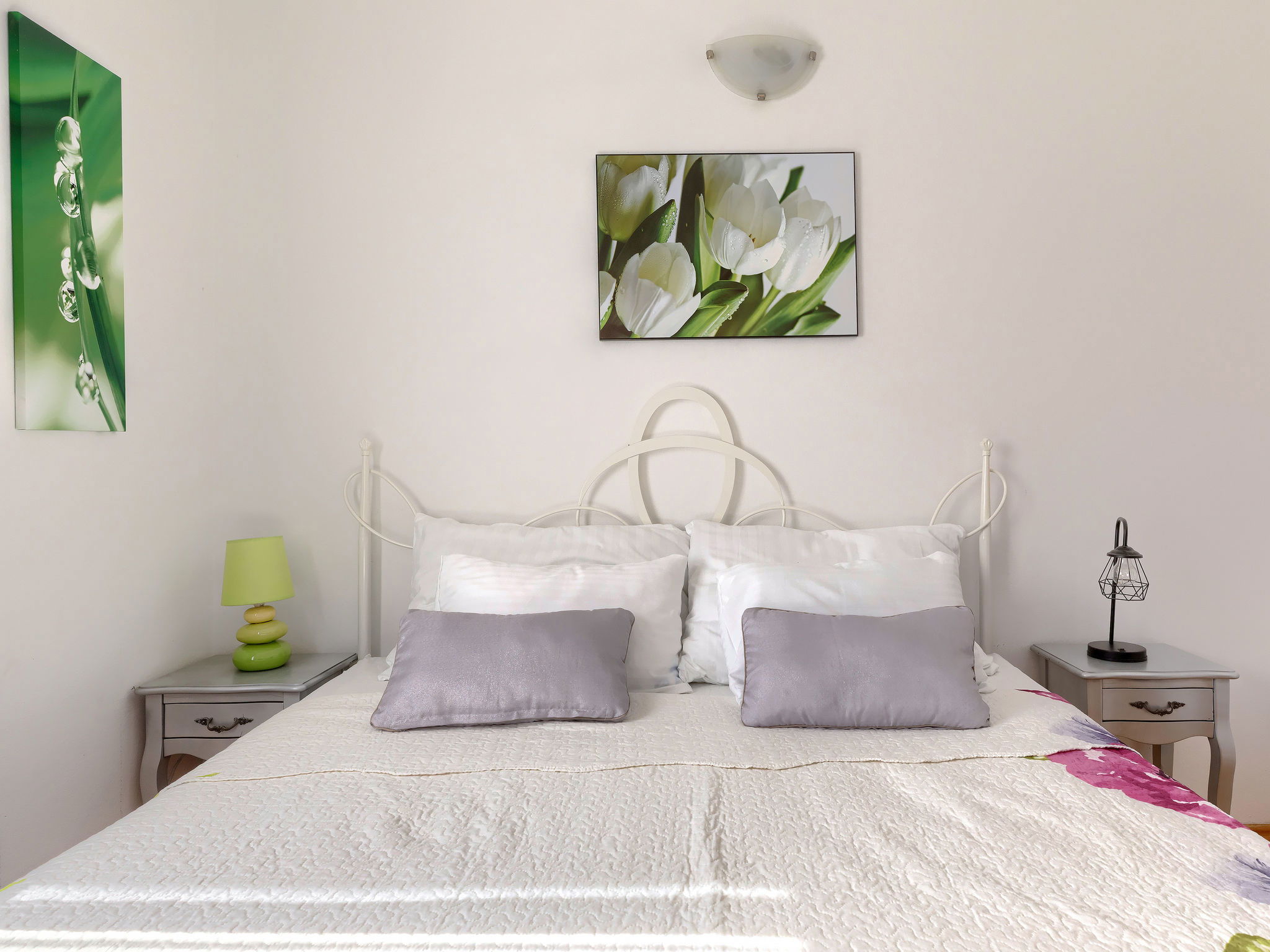 4-Zimmer-Haus 120 m2. Wohn-/Schlafzimmer mit 2 Diwanbetten und Sat-TV (Flachbildschirm), Klimaanlage. Ausgang zur Veranda. 2 Zimmer, jedes Zimmer mit 1 franz. Bett (160 cm, Länge 200 cm), Sat-TV (Flachbildschirm). 1 Zimmer mit 2 Betten (80 cm, Länge 200 cm) mit Dusche/WC. Küche (1 Kochplatte, Backofen, Geschirrspüler, 3 Flammen, Toaster, Wasserkocher, Mikrowelle, Tiefkühler, elektrische Kaffeemaschine). Dusche. Keine Heizmöglichkeit. Terrasse 12 m2. Terrassenmöbel, Gartengrill (mobil), Liegestühle. Zur Verfügung: Safe, Bügeleisen, Fliegengitter, Haartrockner. Internet (WLAN, gratis). Bitte beachten: Nichtraucher-Haus. Maximal 3 Haustiere/Hunde erlaubt.