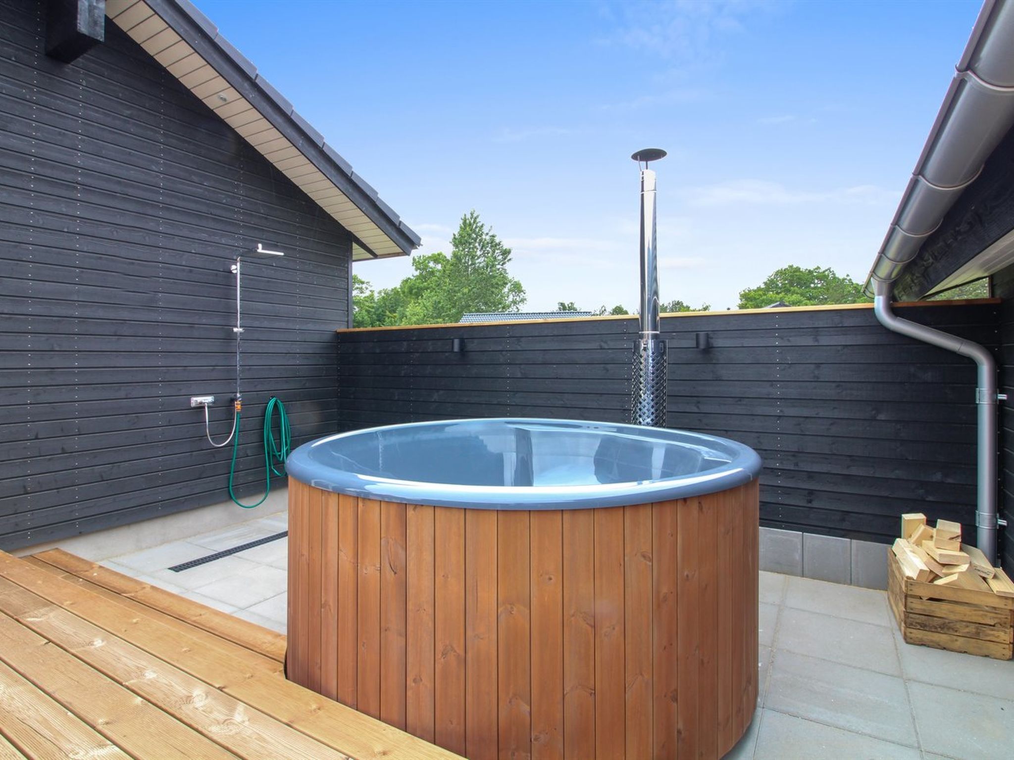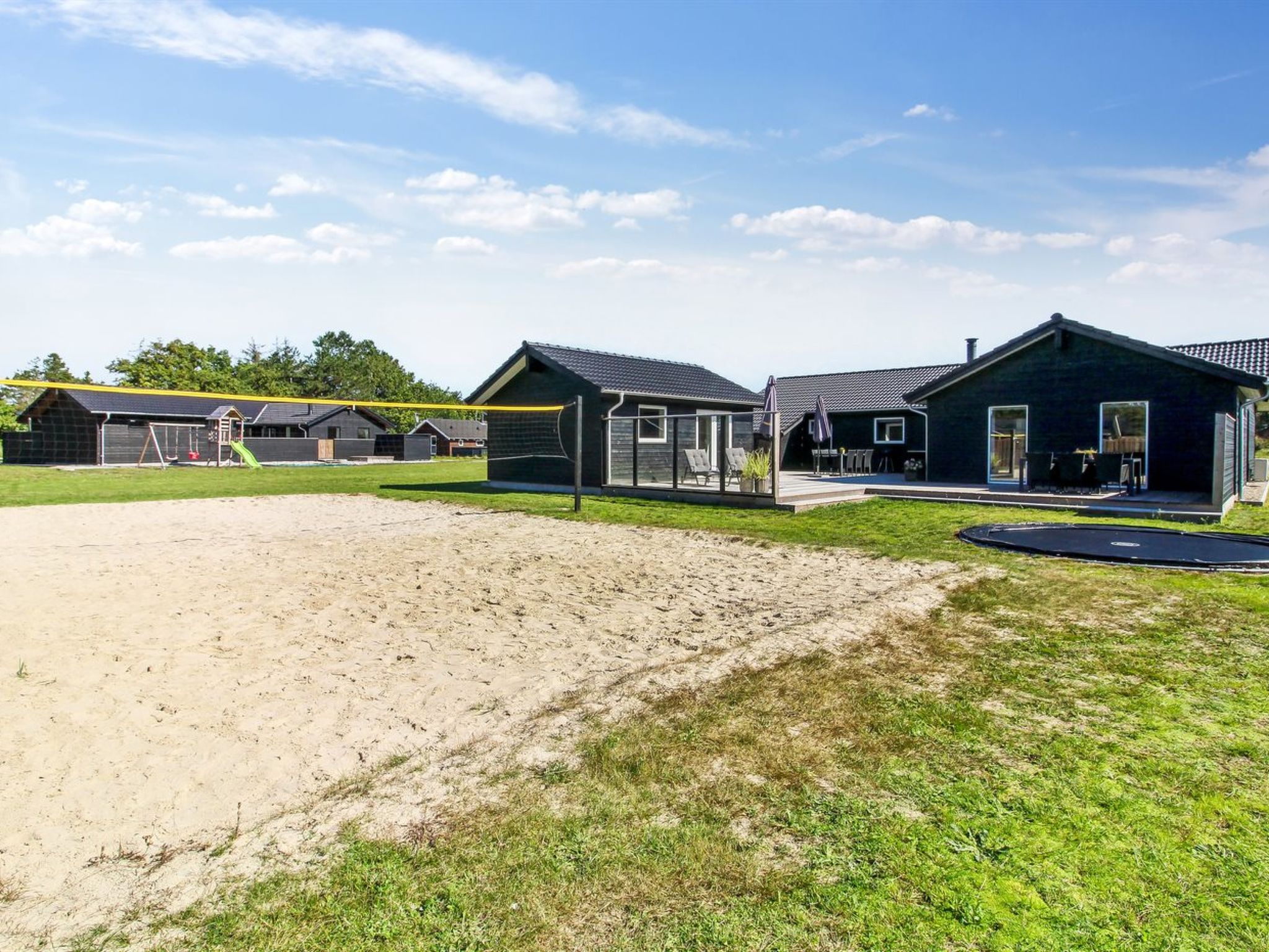 Einfamilienhaus, Baujahr 2022. 2.3 km vom Meer. Zur Alleinbenutzung: naturbelassenes Grundstück 1'200 m2. Aussendusche, Grill, Kinderspielplatz (Schaukel). Im Hause: Tischfussball, Trampolin, Waschmaschine, Wäschetrockner. Parkplatz beim Haus. E-Ladestation. Lebensmittelgeschäft 500 m. Golfplatz 900 m. Der Besitzer akzeptiert keine Jugendgruppen.