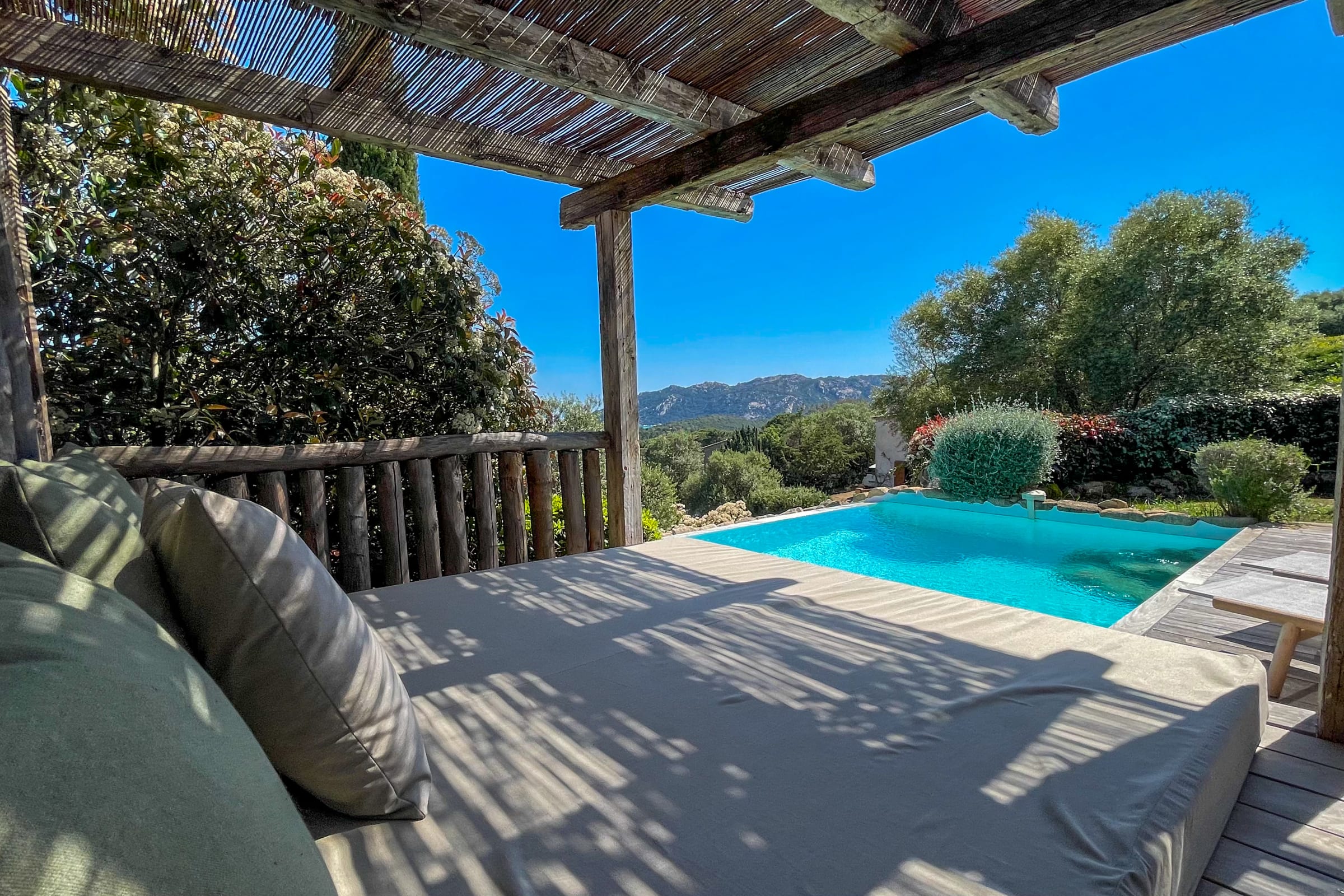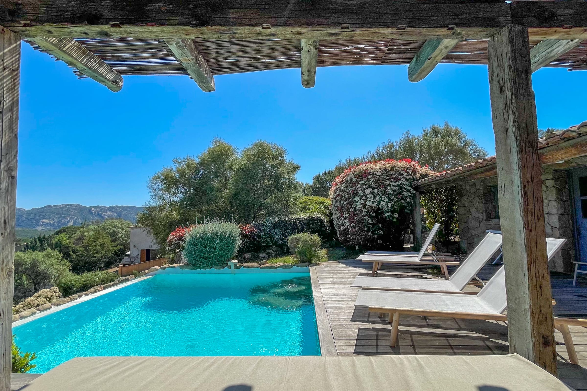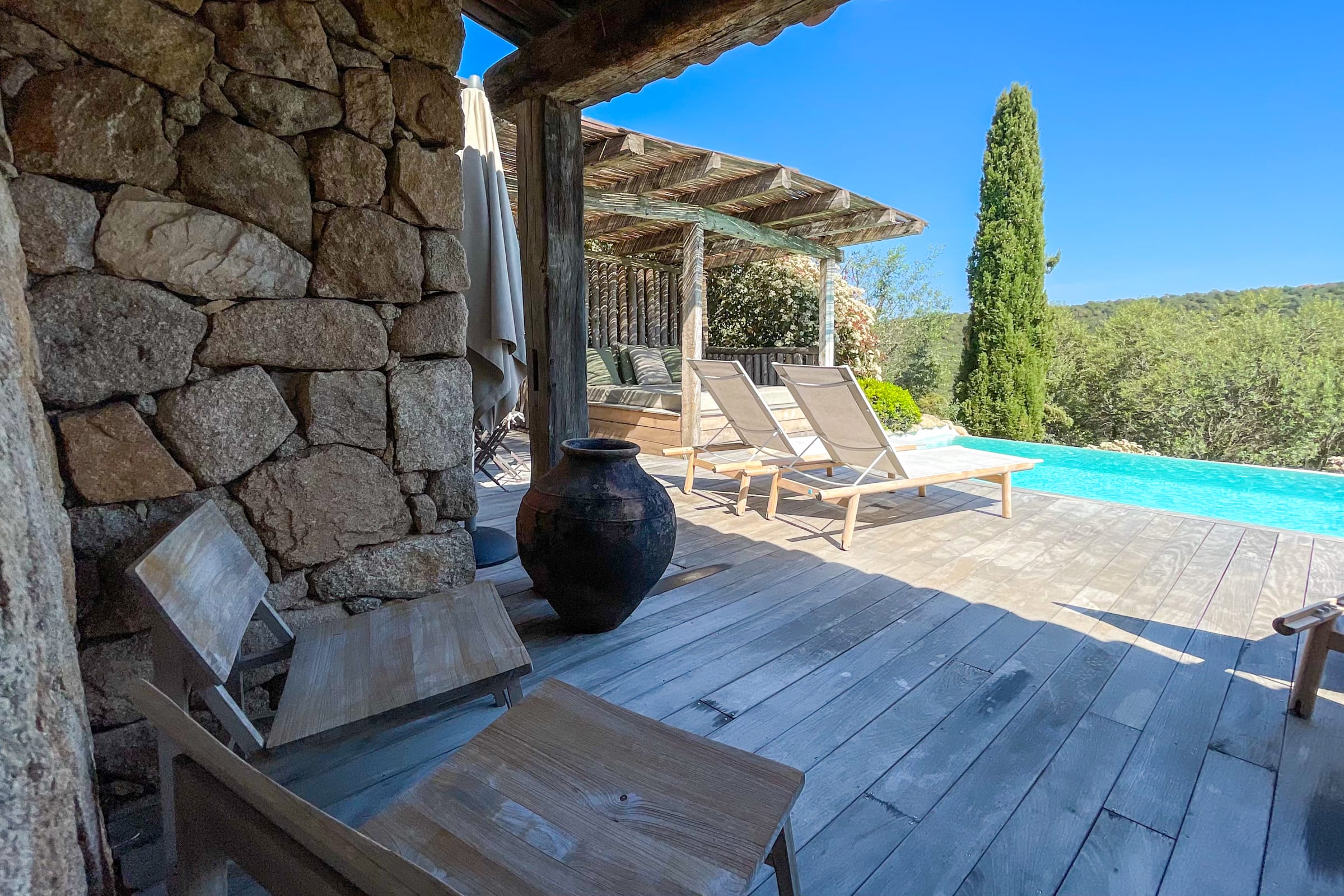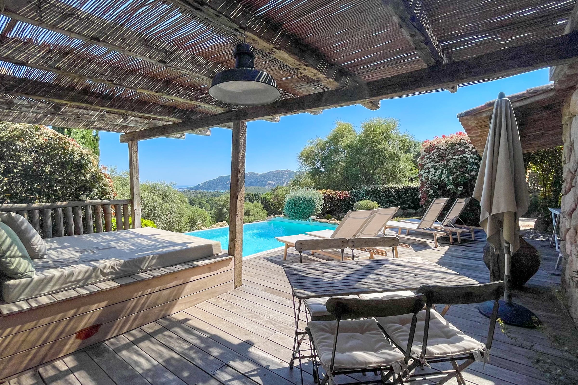 Große terrasse mit herrlichem Blick auf die Bucht von Santa Giulia.