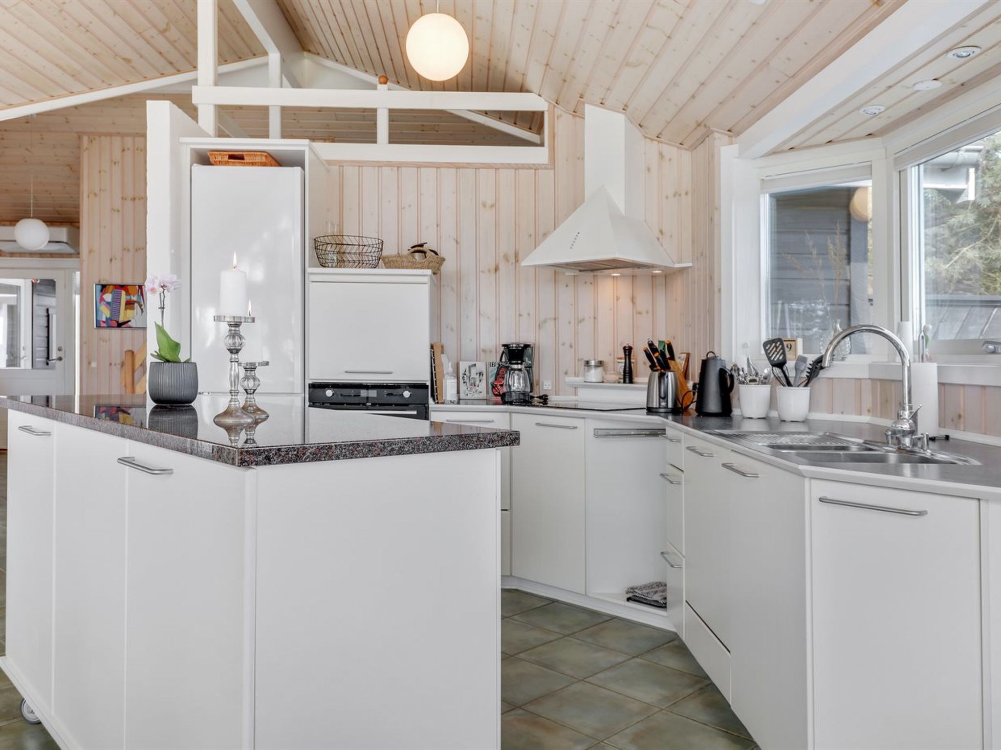 Einfamilienhaus, Baujahr 2001. 150 m vom Meer. Zur Alleinbenutzung: naturbelassenes Grundstück 1'200 m2. Terrasse (100 m2), Grill, Kinderspielplatz (Schaukel). Im Hause: Sauna, Waschmaschine, Wäschetrockner. Parkplatz beim Haus. Carport. E-Ladestation. Lebensmittelgeschäft 3 km. Golfplatz 4.3 km. Der Besitzer akzeptiert keine Jugendgruppen.