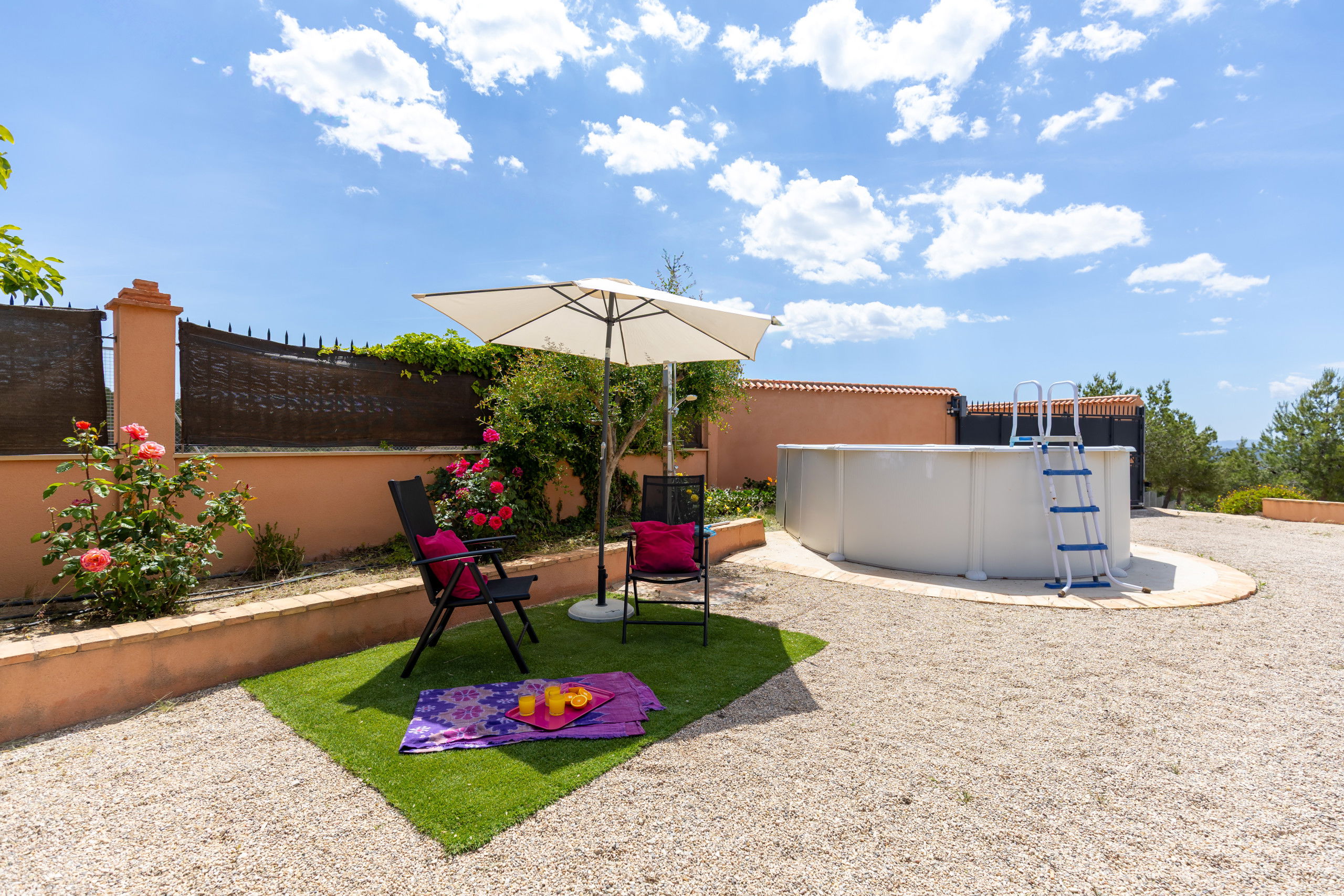 Die Unterkunft verfügt über garten, gartenmöbel, umzäuntes grundstück, waschmaschine, bügeleisen/-brett, internet (WLAN), haartrockner, kinderbereich, heizung, klimaanlage nur im esszimmer, swimming-pool privater pool, parkplatz im freien in auf dem grundstück, 4 ventilatoren, 1 Fernseher, sat-tv (Sprachen: Spanisch), radio.