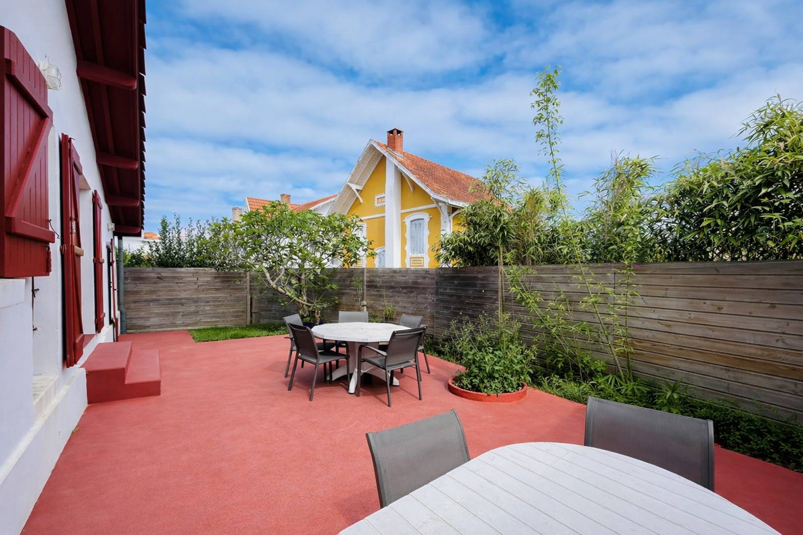 Nur 600 Meter vom Strand entfernt, in einem ruhigen Wohngebiet, bietet dieses einstöckige Haus im baskischen Stil mit etwa 85 m² Terrassen und Platz für bis zu 6 Personen.