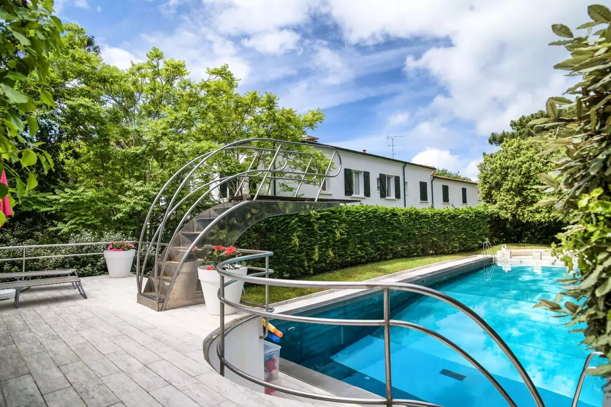 Im Sommer können Sie dank der Ruhe der Nachbarschaft die Außenbereiche mit zahlreichen Liegestühlen und der Terrasse mit Blick auf den Pool in vollen Zügen genießen. Dort stehen Gartenmöbel und unter dem großen Sonnenschirm ein großer Familientisch aus exotischem Holz (10 Stühle).