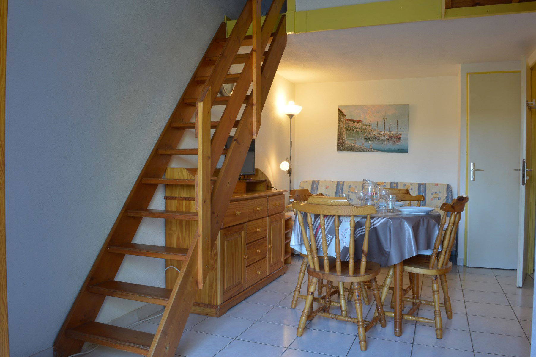 Dieses 700 m vom Strand und dem Zentrum des Ferienortes entfernte, nach Osten ausgerichtete Familienferienhaus besteht aus einem Wohnzimmer mit einem Doppelschlafsofa, einer ausgestatteten Küchenzeile, einem Schlafzimmer mit 2 Einzeletagenbetten, einem Duschraum mit WC und einem Schlafzimmer im Obergeschoss mit 1 Doppelbett.