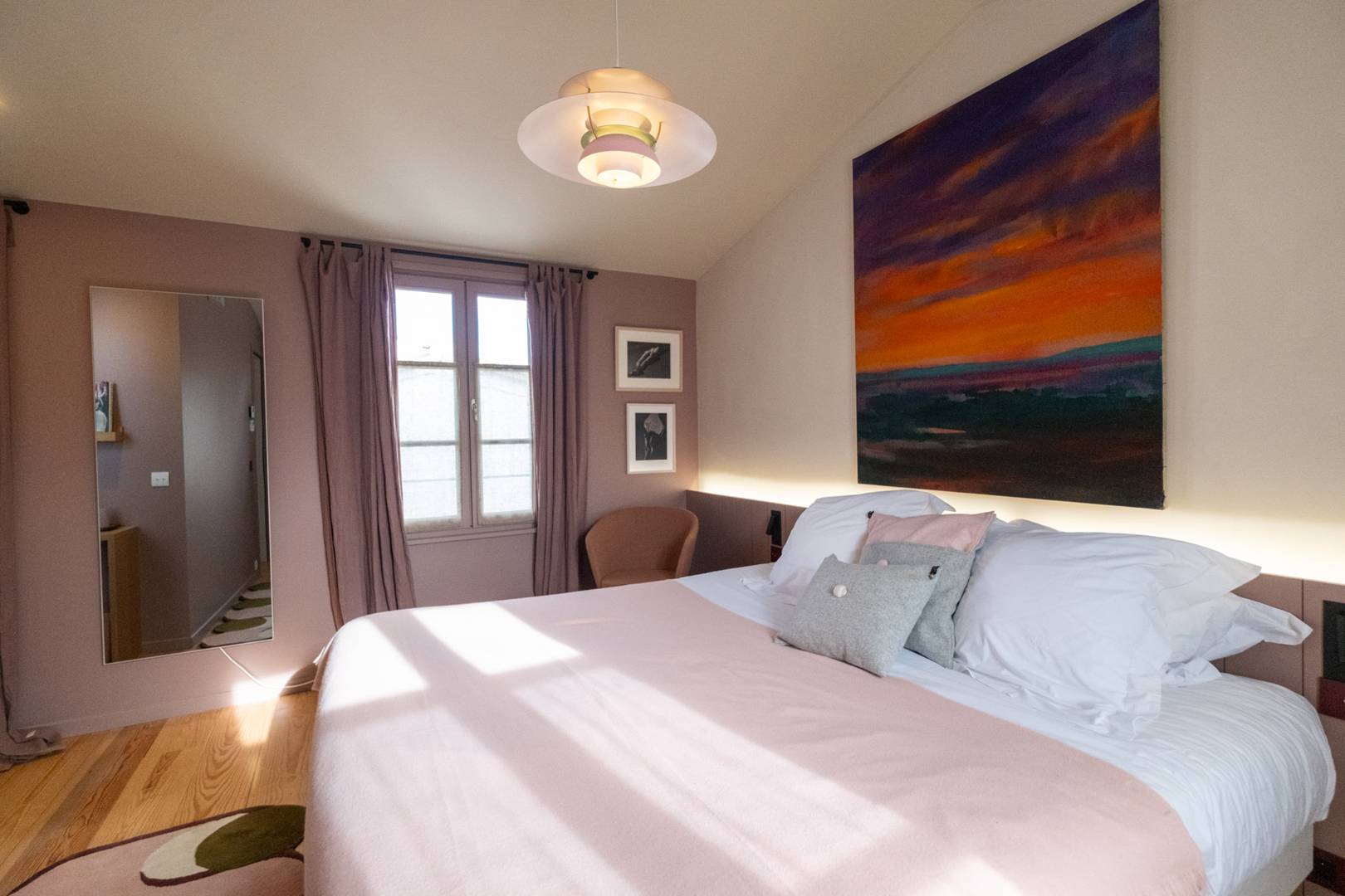* Schlafzimmer 6: (rosa) Doppelzimmer mit eigenem Duschbad und WC