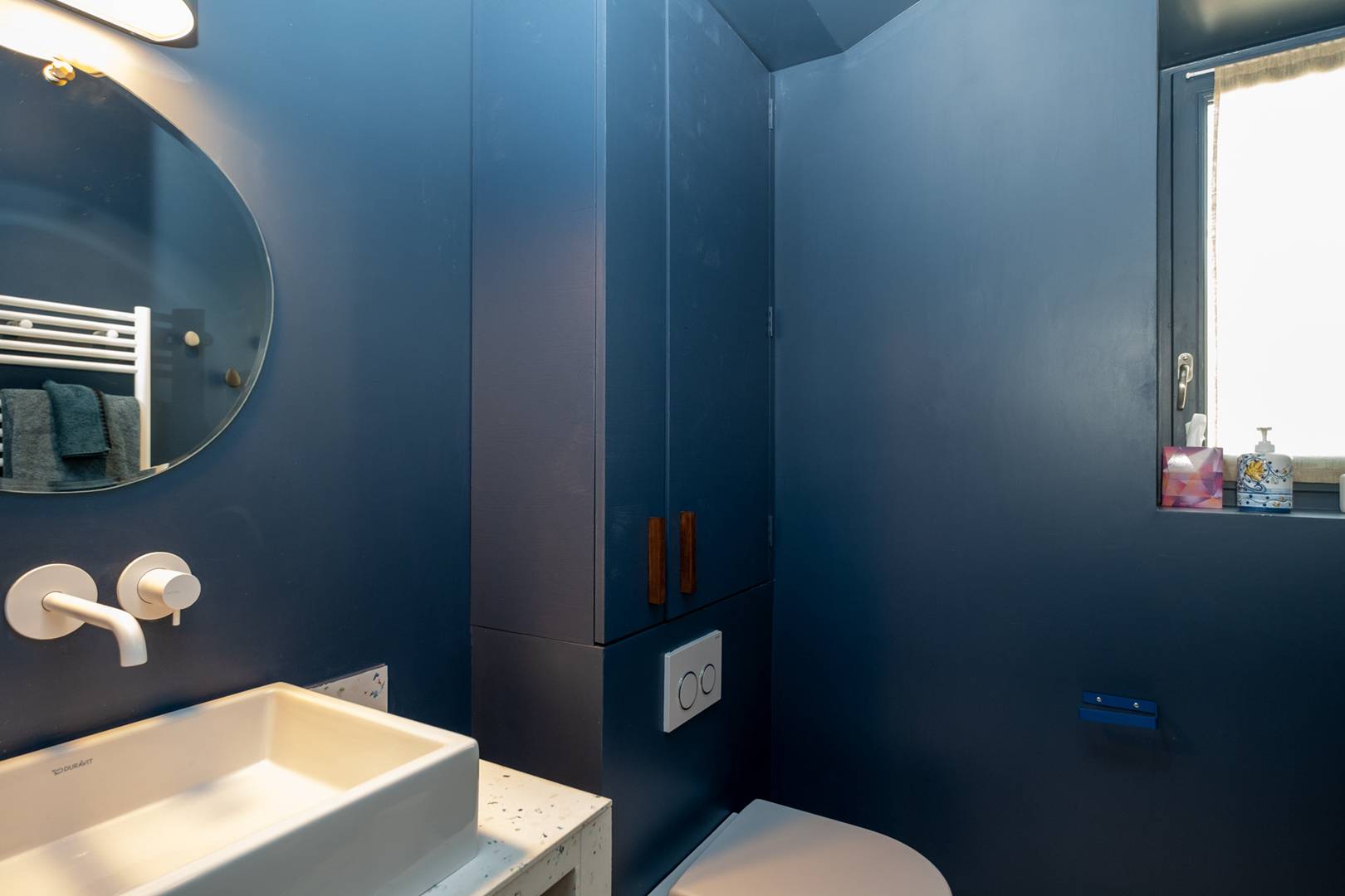 * Schlafzimmer 3 (blau): Doppelzimmer mit Blick auf die Straße und angrenzendem Duschbad und WC
