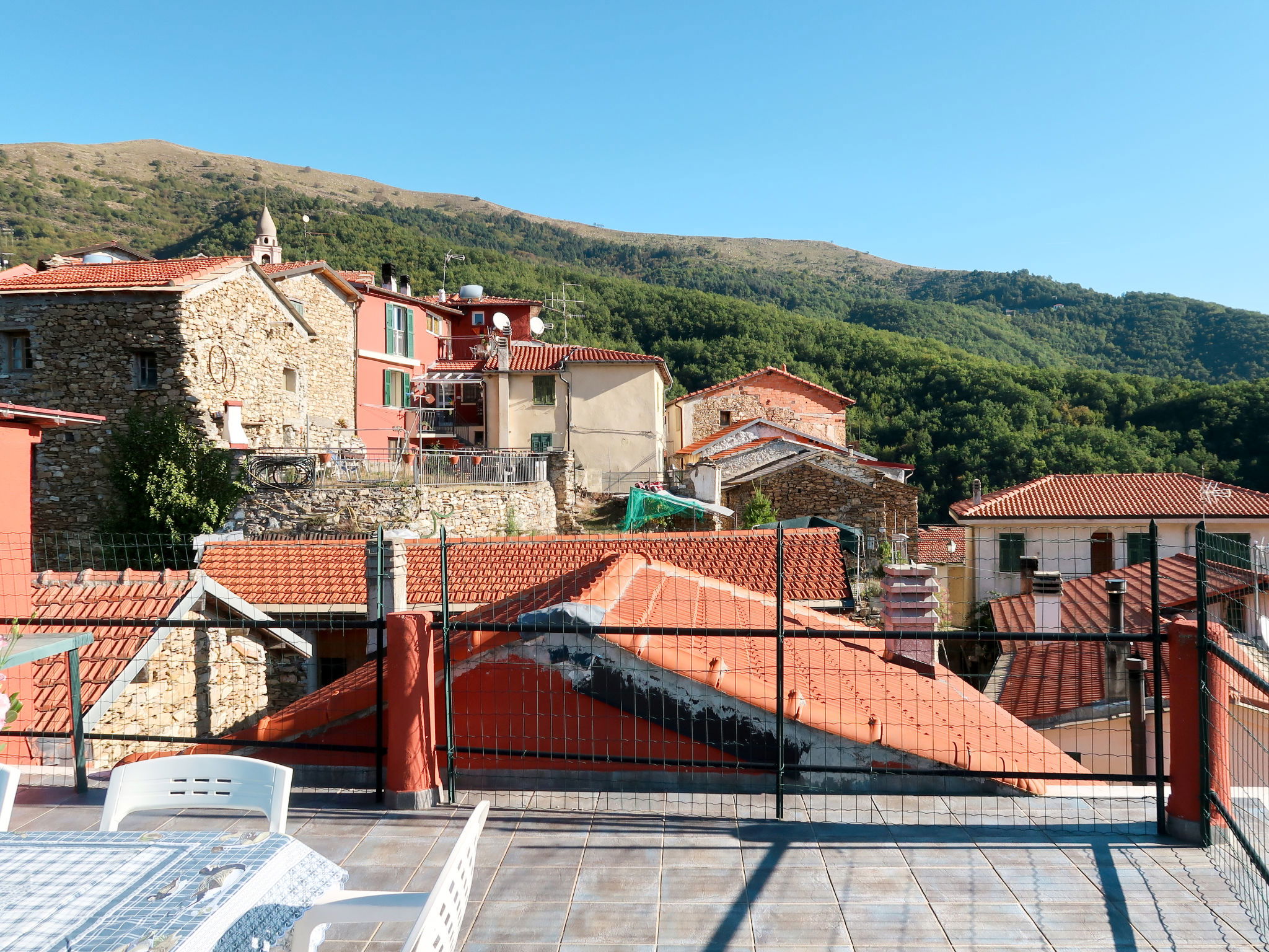 "Bel Vedere ", 3-Zimmer-Haus 100 m2 auf 2 Stockwerken. Sehr rustikal eingerichtet: Obergeschoss: 1 Zimmer mit 1 franz. Bett (180 cm). Ausgang zum Garten. 1 Kinderzimmer mit 1 franz. Bett (160 cm). Dusche/WC. 2. Obergeschoss: Wohn-/Schlafzimmer mit 1 Doppeldiwanbett (160 cm), Esstisch und TV. Ausgang zum Balkon. Kleine, offene Küche (Backofen, 4 Flammen, Toaster, Wasserkocher, Tiefkühler, elektrische Kaffeemaschine). Sep. WC. G-Heizung. Balkon, grosse Terrasse. Terrassenmöbel, Balkonmöbel, Gartengrill (mobil), Liegestühle (4). Herrliche Panoramasicht auf die Berge, die Landschaft und die Ortschaft. Zur Verfügung: Waschmaschine, Kinderhochstuhl, Babybett. Internet (Wireless LAN, extra). Bitte beachten: geeignet für Familien. Nichtraucher-Haus. Maximal 2 Haustiere/Hunde erlaubt. Flexibilität bei der Bettenaufteilung: Es stehen mehr Schlafmöglichkeiten zur Verfügung als die maximal zugelassene Personenzahl, diese darf dennoch nicht überschritten werden. IT008005C27H3GBD8T