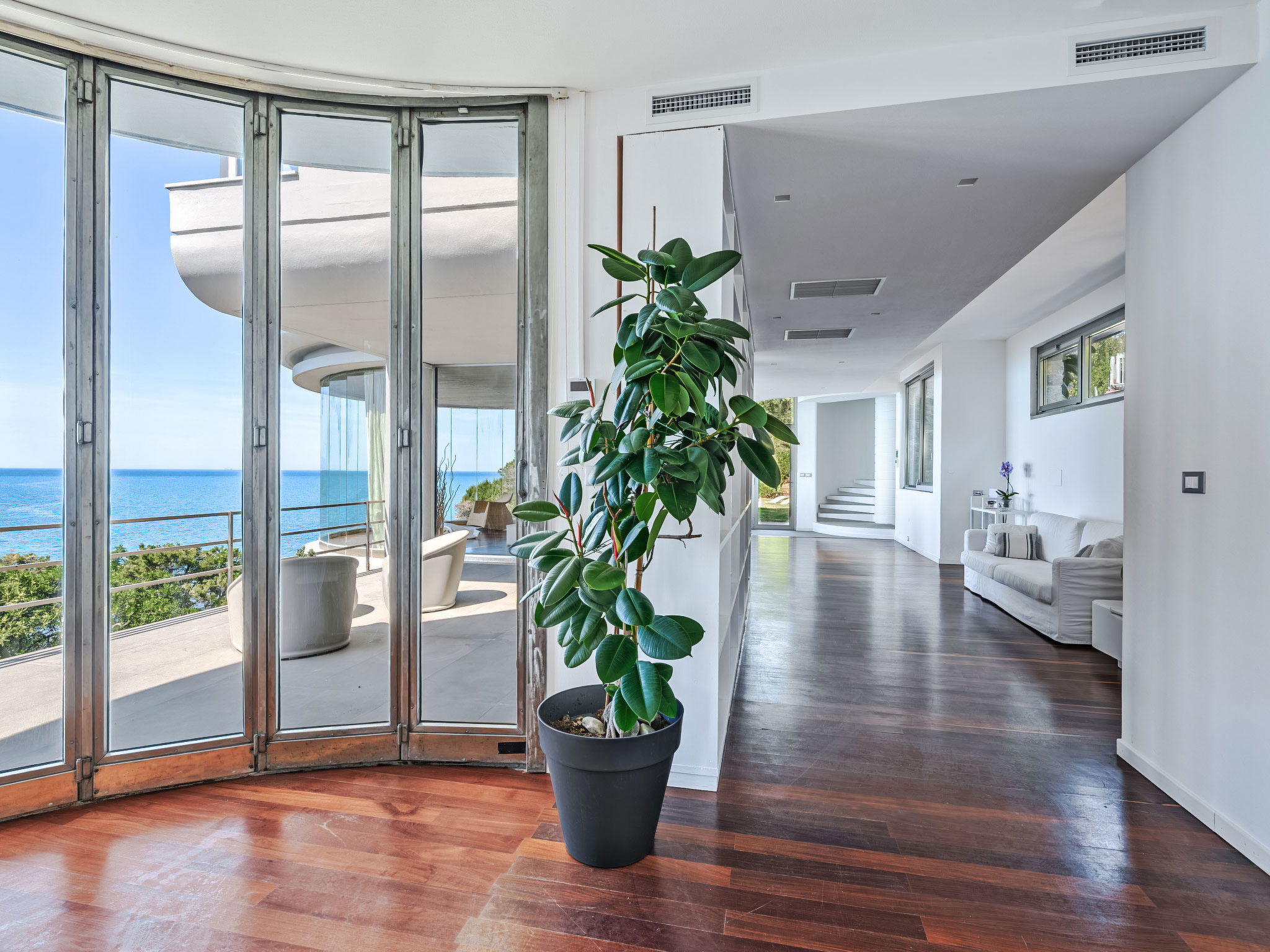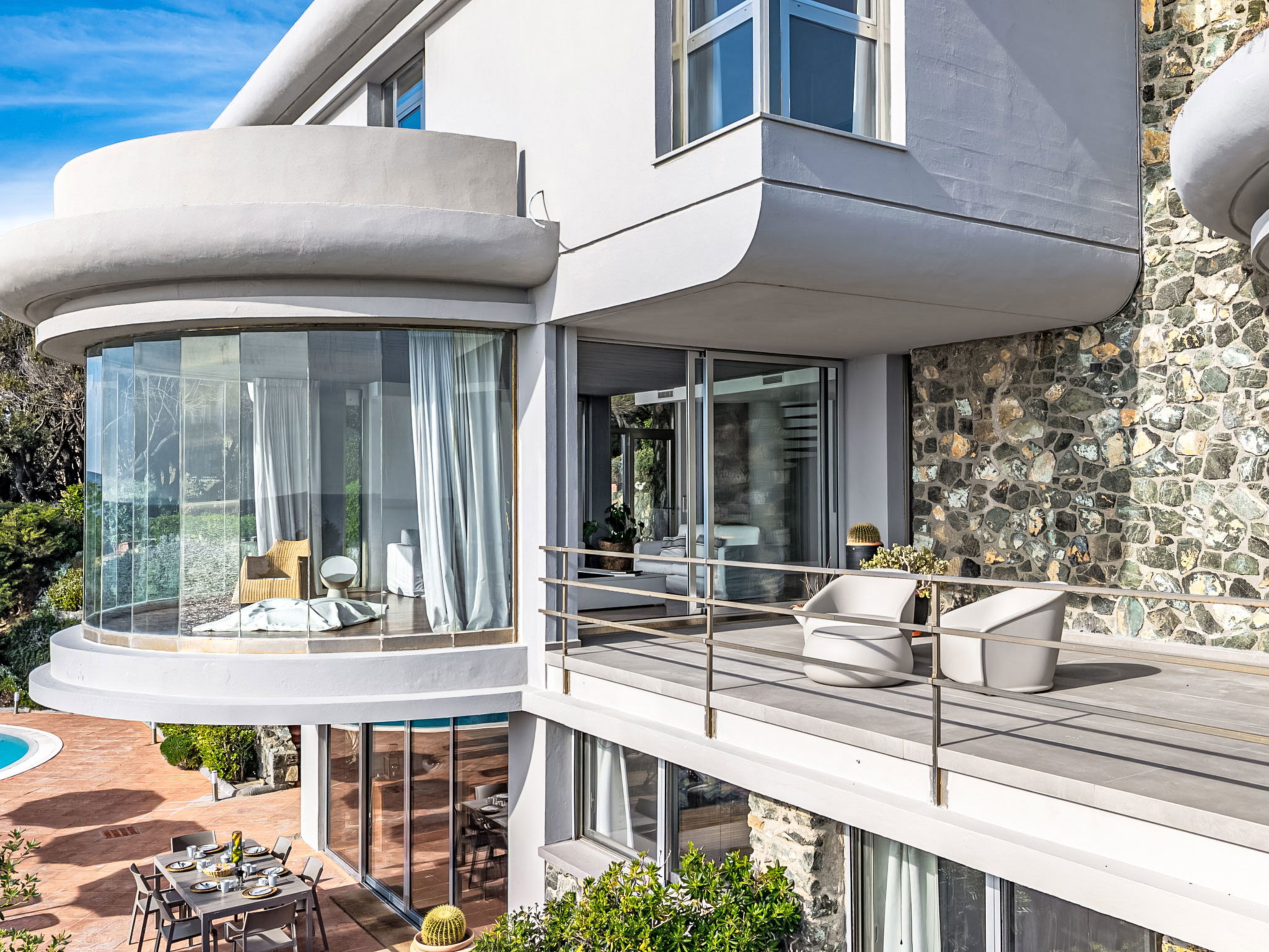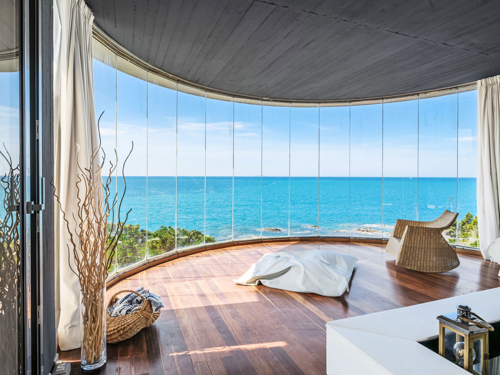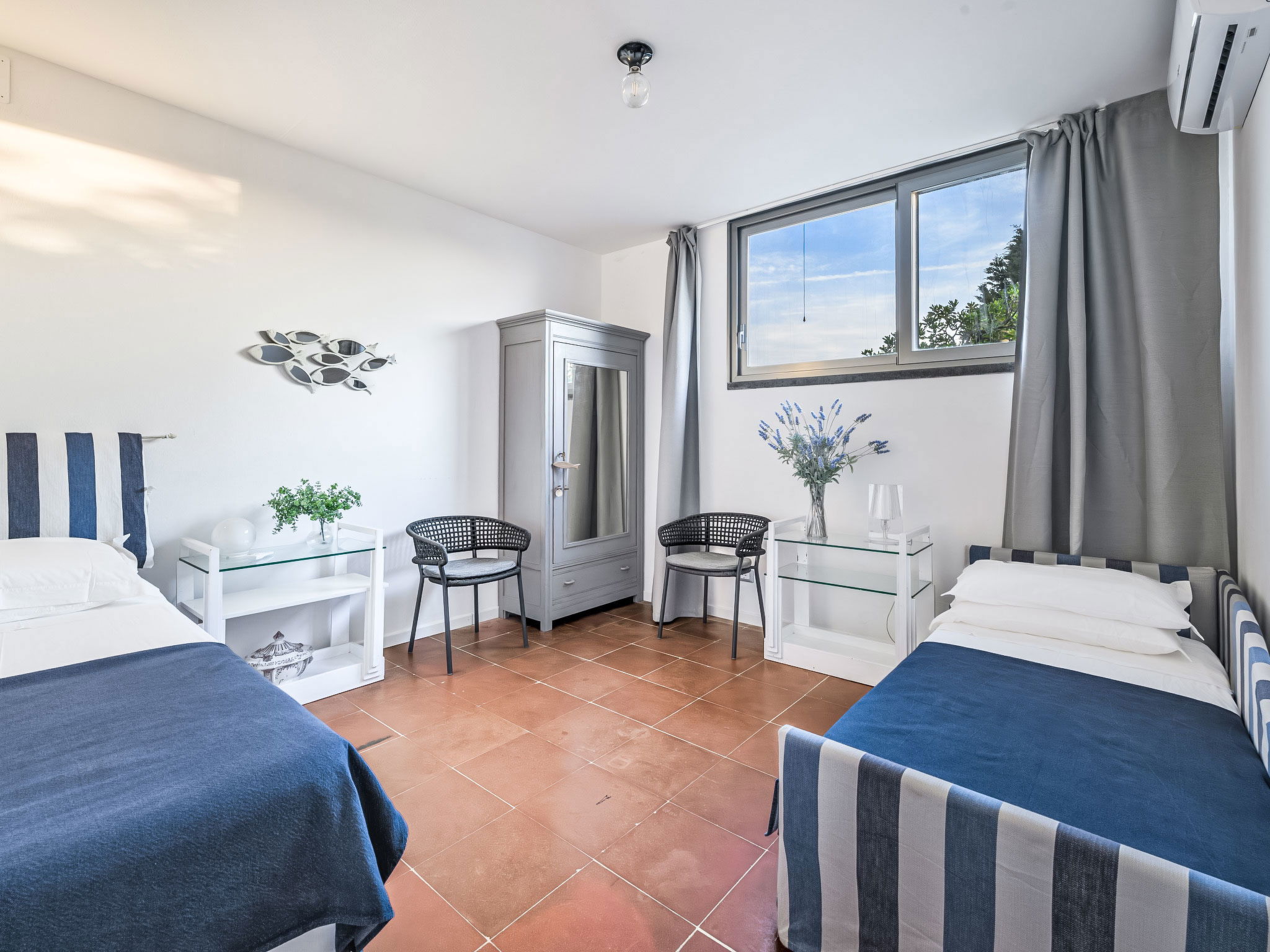 "Vistamare", 8-Zimmer-Haus 450 m2 auf 3 Stockwerken. Renoviert im Jahre 2022, schön und geschmackvoll eingerichtet: 1 Doppelzimmer mit 1 Doppelbett. 1 Zimmer mit 2 Betten (80 cm). Esszimmer mit Esstisch. Ausgang zur Terrasse. Küche (Backofen, Geschirrspüler, 5 Induktionskochplatten, Toaster, Wasserkocher, Mikrowelle, Tiefkühler, elektrische Kaffeemaschine). Ausgang zum Garten. Dusche/WC. Obergeschoss: (Wendeltreppe) Wohnzimmer mit TV, Stereoanlage und DVD. Ausgang zur Terrasse. 2. Obergeschoss: 2 Doppelzimmer. 1 Doppelzimmer. Ausgang zum Balkon. 1 Zimmer mit 2 Betten. Ausgang zum Balkon. 2 Duschen/WC. E-Heizung, Klimaanlage. Parkettboden. Balkon, 3 Terrassen teilweise überdacht. Terrassenmöbel, Abstellkammer. Herrliche Sicht auf das Meer. Zur Verfügung: Waschmaschine, Safe, Bügeleisen, Kinderhochstuhl, Babybett bis 3 Jahre, Haartrockner. Internet (WLAN, gratis). Bitte beachten: Maximal 2 Haustiere/Hunde erlaubt. Feuerlöscher. IT049017B4ZSMZZVZD