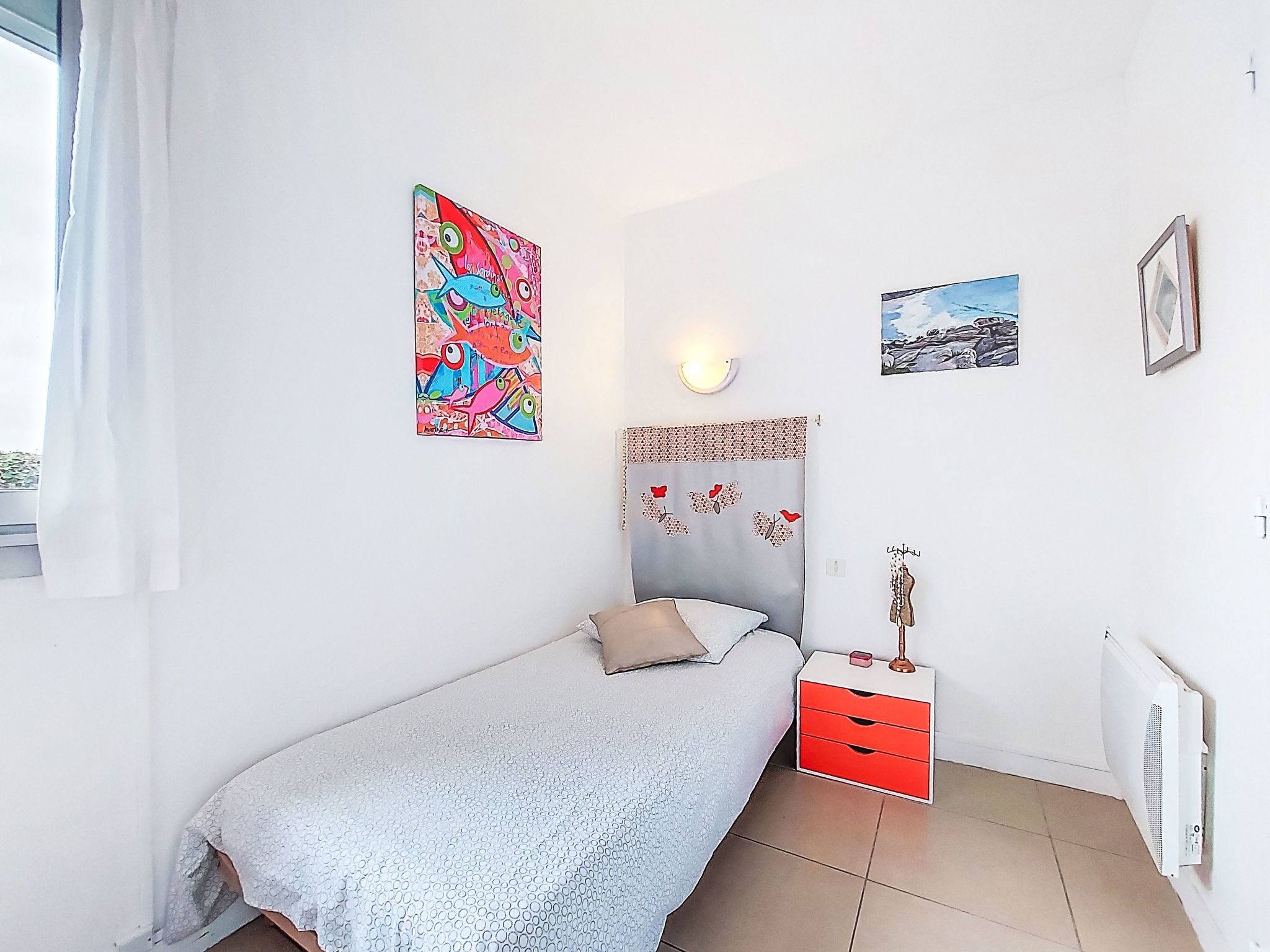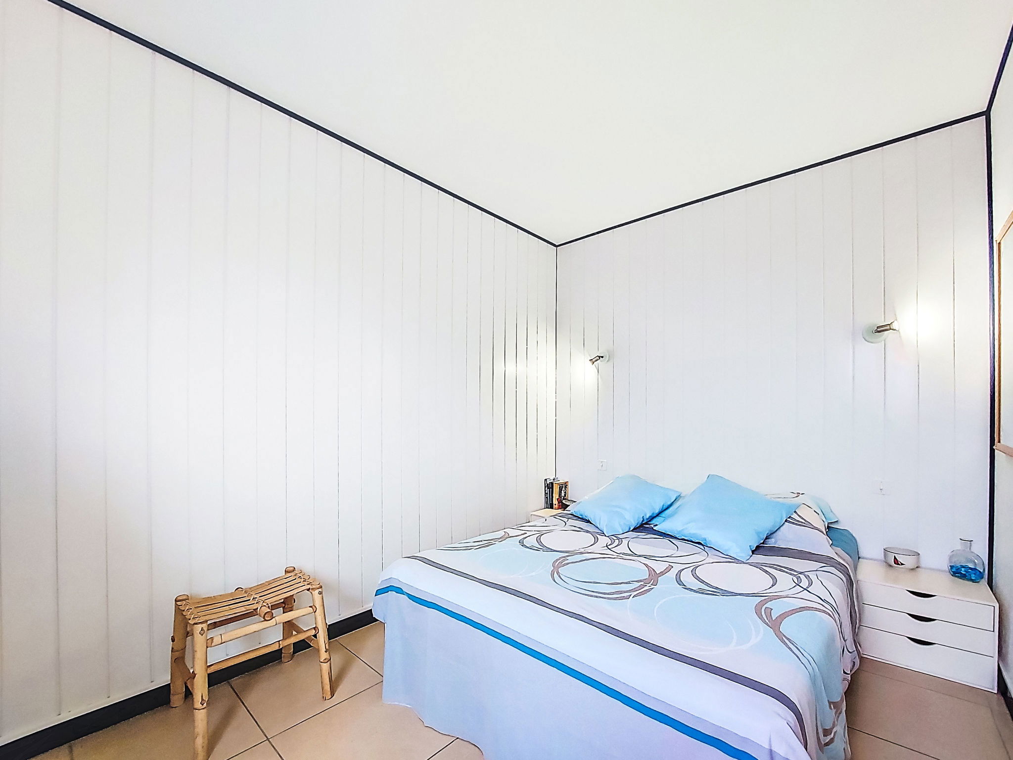 4-Zimmer-Haus 60 m2, Südlage. Zweckmässig eingerichtet: Wohnzimmer 25 m2 mit Panoramafenster mit TV (Flachbildschirm). Ausgang zur Terrasse. 1 Zimmer 10 m2 mit 1 franz. Bett (140 cm, Länge 190 cm), elektrischem Rollladen. 2 kleine Kinderzimmer, jedes Zimmer mit 1 Bett (90 cm, Länge 190 cm). Kochnische (Mini-Backofen, Geschirrspüler, 4 Glaskeramikplatten, Toaster, Wasserkocher, Mikrowelle, Tiefkühler, elektrische Kaffeemaschine) mit Bar. Dusche, sep. WC. E-Heizung. Terrasse 20 m2, Südlage. Terrassenmöbel, Gartengrill. Sicht auf das Meer und die Bucht. Zur Verfügung: Waschmaschine, Haartrockner. Bitte beachten: Nichtraucher-Haus. Maximal 1 Haustier/Hund erlaubt. Rauchmelder.