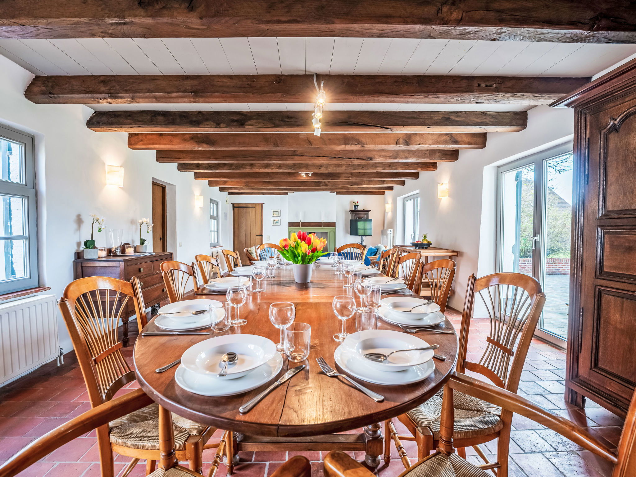 "Dunezwin - protected cultural heritage", 5-Zimmer-Bauernhaus 300 m2. Objekt geeignet für 6 Erwachsene + 6 Kinder. Komfortabel eingerichtet: Eingang mit sep. WC. 1 grosses Doppelzimmer mit 1 Bett (180 cm, Länge 200 cm), Bad/Dusche/WC und Doppelwaschbecken. Offenes Wohn-/Esszimmer mit offenem Kamin (nur Deko), TV. Ausgang zum Garten, zur Terrasse. Grosser Salon mit TV und Internationale TV-Sender. 1 grosses Doppelzimmer mit 2 Betten (90 cm, Länge 200 cm), Bad/WC. Küche (4 Kochplatten, Backofen, Geschirrspüler, Toaster, Wasserkocher, Mikrowelle, Tiefkühler, elektrische Kaffeemaschine). Ausgang zum Garten, zum Gartensitzplatz. Obergeschoss: 1 grosses Doppelzimmer mit 2 Betten (90 cm, Länge 200 cm), Waschbecken und sep. WC. 1 offenes grosses Kinderzimmer mit 6 Betten (90 cm, Länge 200 cm), Bad/Dusche/WC. Natursteinboden. Komfortable Einrichtung im Landhausstil. Grosse Terrasse. Terrassenmöbel, Gartengrill (mobil). Zur Verfügung: Kinderhochstuhl, Haartrockner, Holz (gratis). Internet (Wireless LAN, gratis). Bitte beachten: geeignet für Familien. Nichtraucher-Haus. Maximal 3 Haustiere/Hunde erlaubt. Rauchmelder, Feuerlöscher.