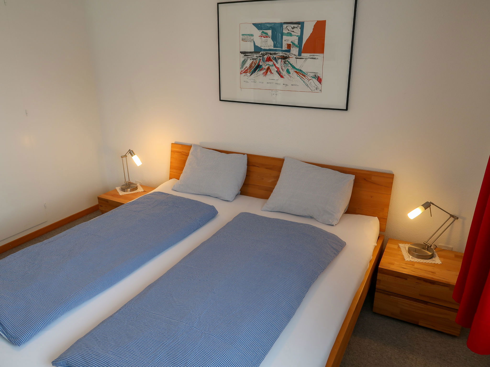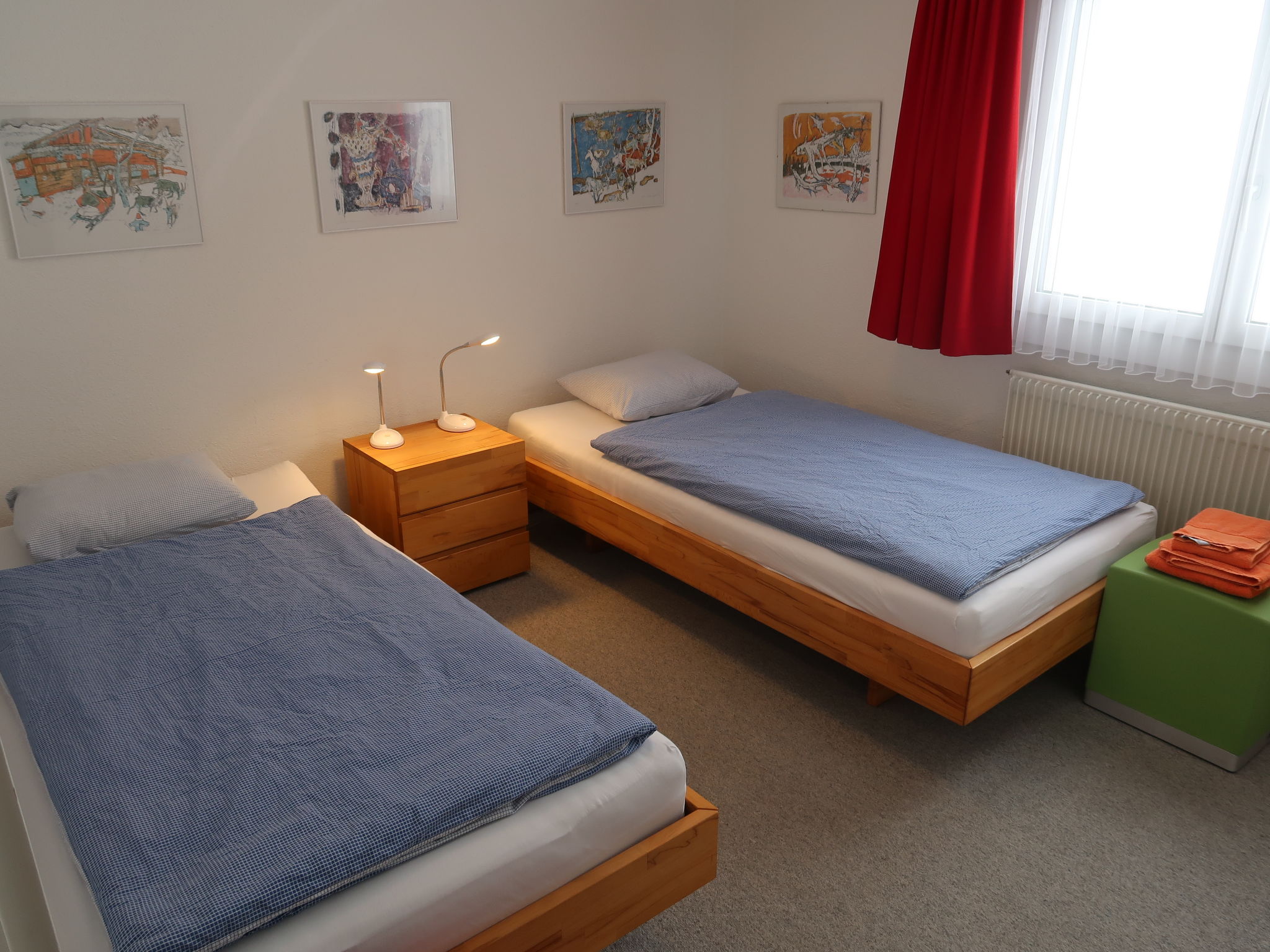 4-Zimmer-Haus 70 m2, Südlage. Einfach und gemütlich eingerichtet: Wohn-/Esszimmer mit Sat-TV (Flachbildschirm), Radio. 1 Doppelzimmer. 1 Zimmer mit 2 Betten. 1 kleines Zimmer mit 1 x 2 Etagenbetten. Küche (3 Kochplatten, Backofen, Wasserkocher). Bad/WC. Heizung. Kleiner Gartensitzplatz teilweise überdacht. Terrassenmöbel. Sicht auf die Berge und die Landschaft. Zur Verfügung: Internet (Wireless LAN, gratis). Garage beim Haus. Bitte beachten: Nichtraucher-Unterkunft. Maximal 1 Haustier/Hund erlaubt.