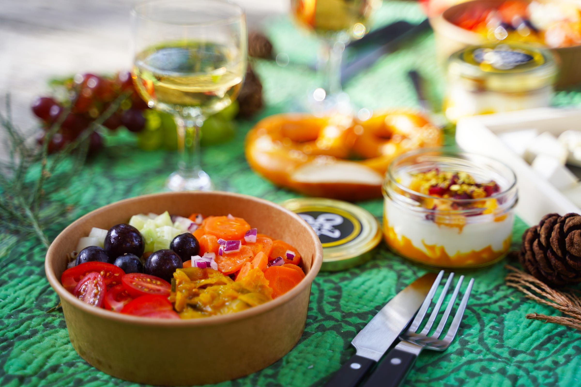 - Das Nötigste für ein gutes gemeinsames Essen (Gläser, Besteck, Teller, Utensilien usw.)