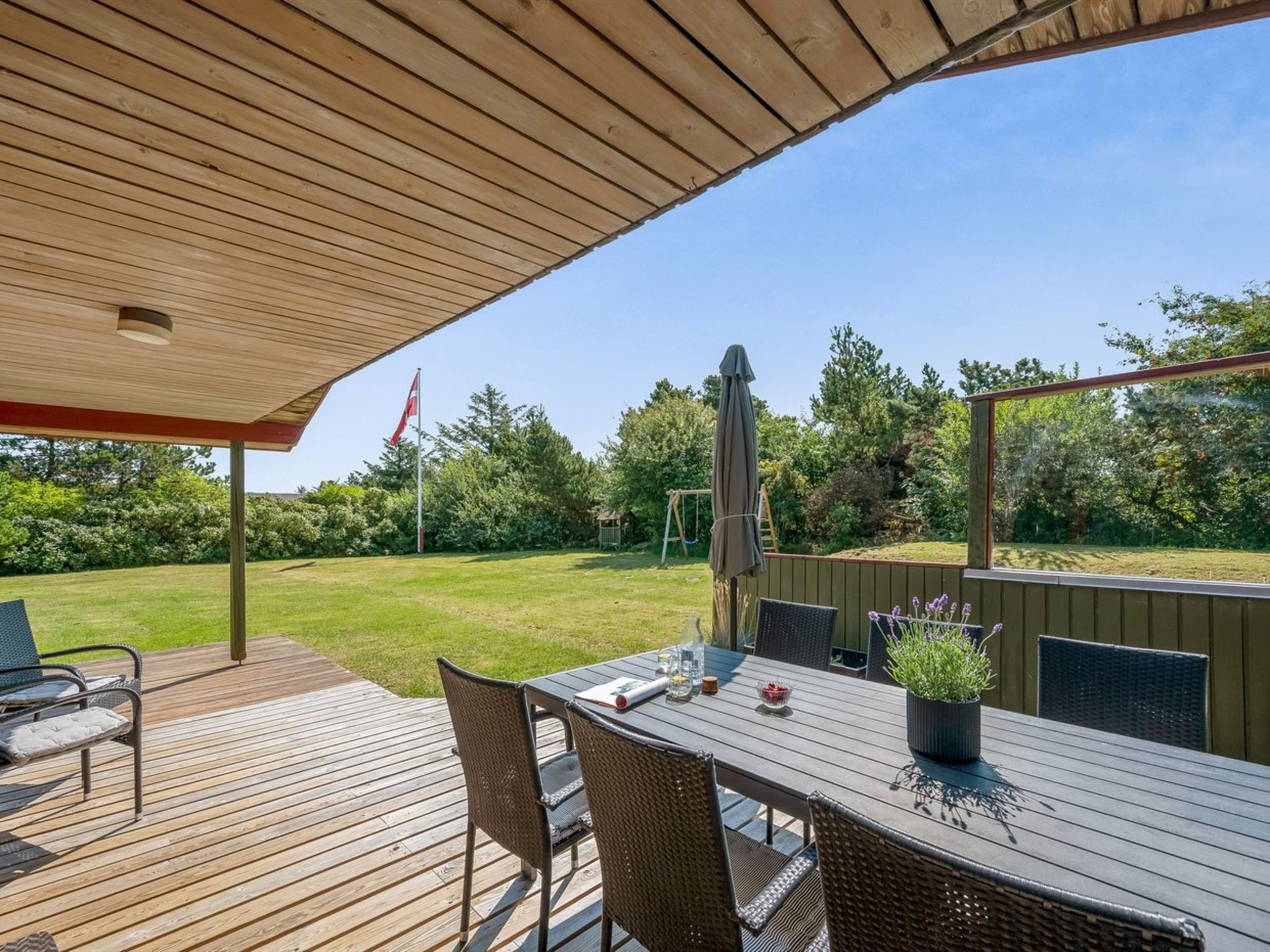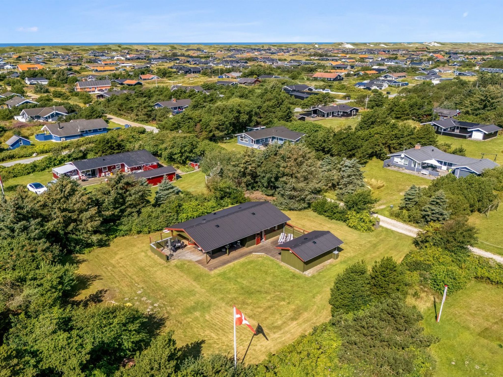 Einfamilienhaus, Baujahr 1974. 900 m vom Meer. Zur Alleinbenutzung: naturbelassenes Grundstück 1'200 m2. Kinderspielplatz (Rutschbahn, Schaukel). Im Hause: Waschmaschine. Parkplatz beim Haus. Lebensmittelgeschäft 300 m. Der Besitzer akzeptiert keine Jugendgruppen.