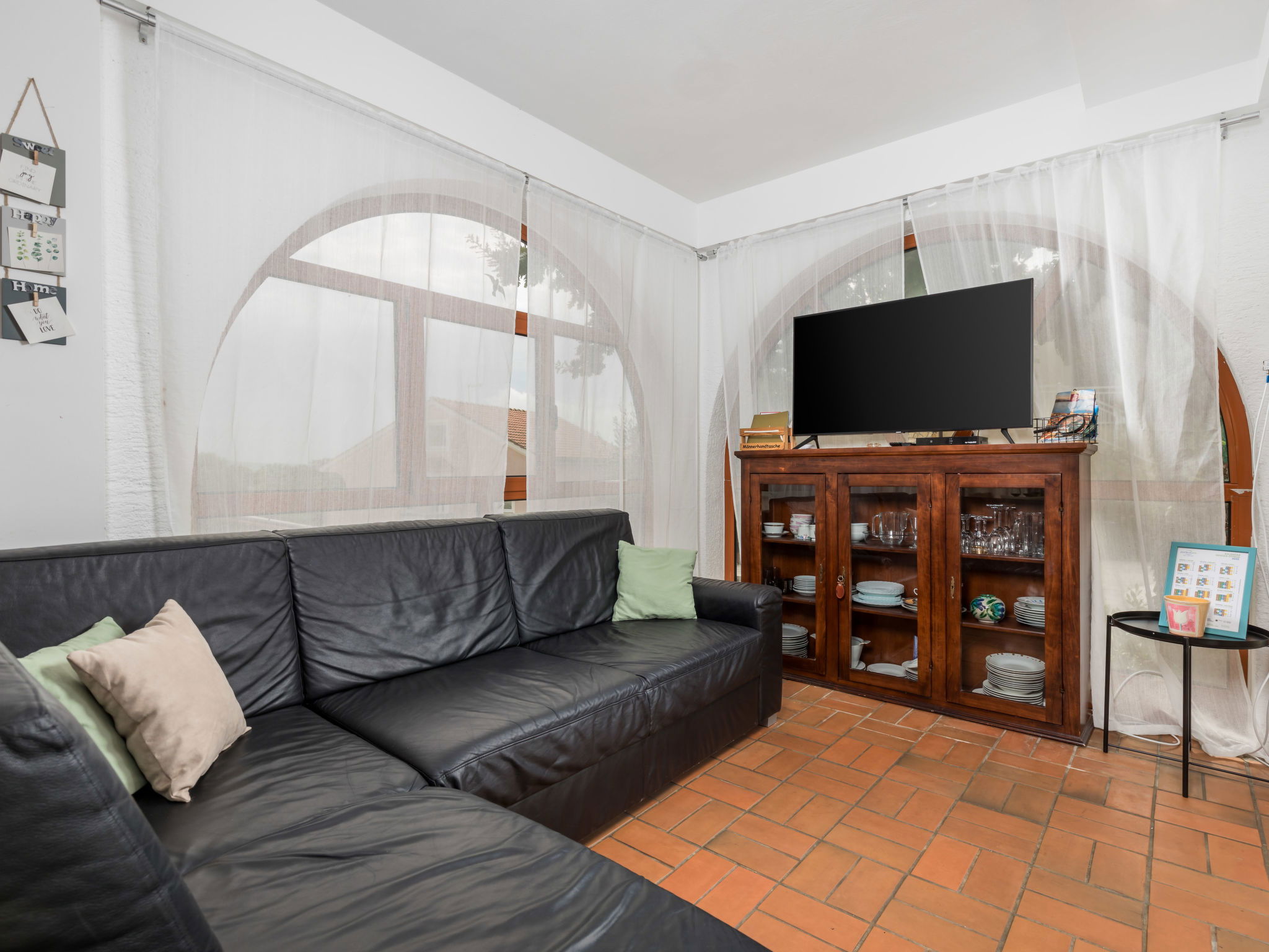4-Zimmer-Haus 85 m2 auf 2 Stockwerken. Wohn-/Esszimmer mit Sat-TV (Flachbildschirm), Klimaanlage. Ausgang zur Terrasse, zum Schwimmbad. 1 Zimmer mit 1 franz. Bett (160 cm, Länge 200 cm). Ausgang zur Terrasse. 1 Zimmer mit 2 Betten (80 cm, Länge 200 cm). Offene Küche (Backofen, 4 Glaskeramikplatten, Toaster, Wasserkocher, Tiefkühler, elektrische Kaffeemaschine) mit Sat-TV (Flachbildschirm), Klimaanlage. Ausgang zur Terrasse. Bad/WC. Obergeschoss: Eingang mit Klimaanlage. 1 Zimmer mit 1 Doppelbett (2 x 80 cm, Länge 190 cm). Ausgang zum Balkon, zur Terrasse. Bad/WC. Heizung. Heizung nur verfügbar von 01.10. bis 01.05. Balkon 6 m2, Terrasse 25 m2. Terrassenmöbel, Liegestühle. Sicht auf das Meer und das Schwimmbad. Zur Verfügung: Safe, Bügeleisen, Kinderhochstuhl, Babybett, Haartrockner. Internet (Wireless LAN, gratis). Maximal 3 Haustiere/Hunde erlaubt.