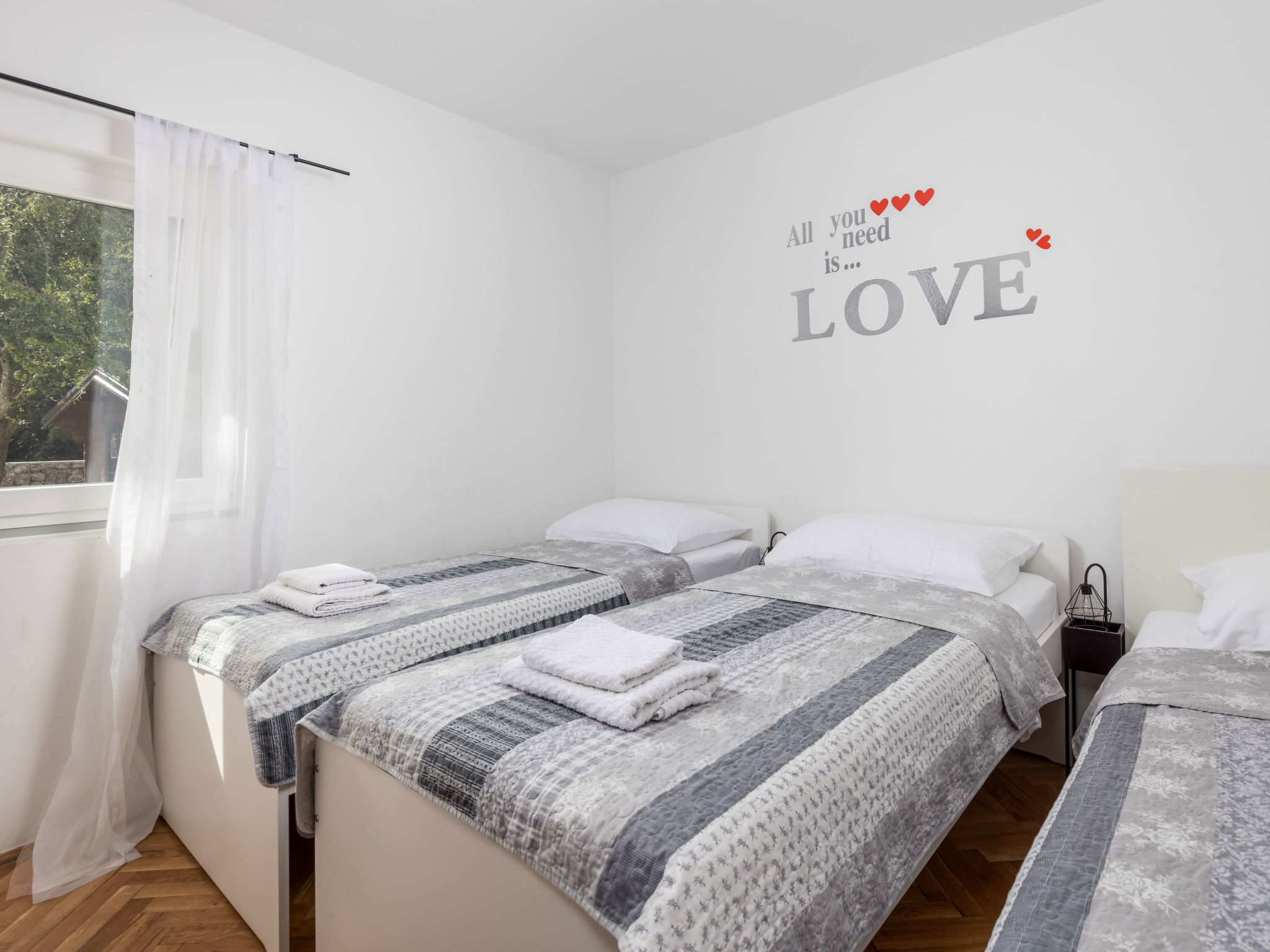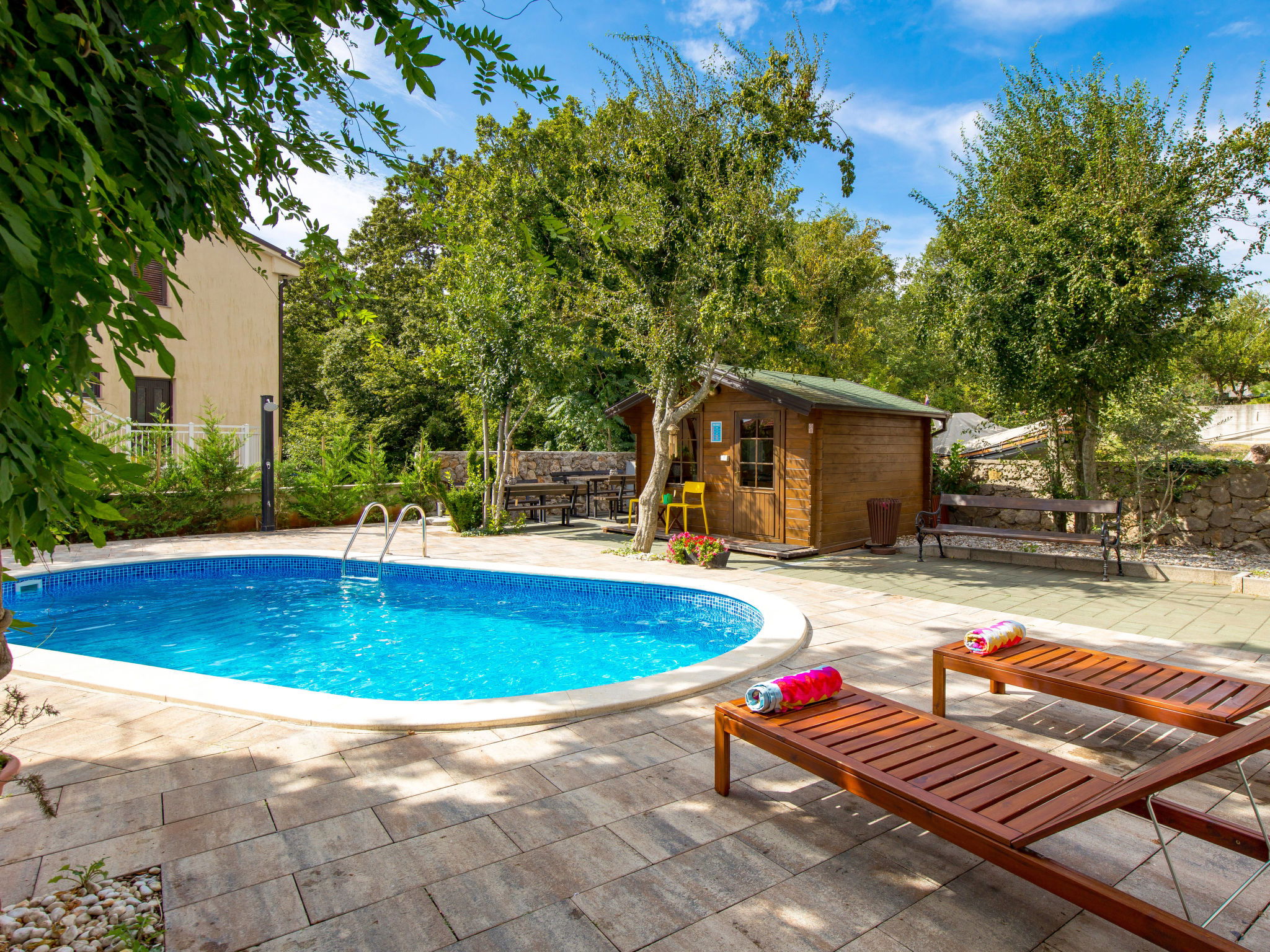 Einfamilienhaus "Noveanni", auf 2 Stockwerken. 350 m vom Zentrum von Kornić, 3.5 km vom Zentrum von Punat, ruhige, sonnige Lage, 900 m vom Meer, 900 m vom Strand, im Grünen. Zur Alleinbenutzung: Grundstück 550 m2 (eingezäunt), Pflanzen und Bäumen, Schwimmbad (24 m2, 150 cm tief, saisonale Verfügbarkeit: 01.Mai. - 15.Okt.). Ungleichmässige Schwimmbadform, Aussendusche, Terrasse (100 m2), Gartenmöbel, Grill. Im Hause: Internetzugang, Tischfussball, Waschmaschine. Parkplatz (für 4 Autos) beim Haus auf dem Grundstück. Einkaufsgeschäft 350 m, Restaurant 400 m, Bushaltestelle 1.4 km, Kieselstrand, Strandbad 900 m. Ein Teil des Hauses ist geschlossen und nicht bewohnt.