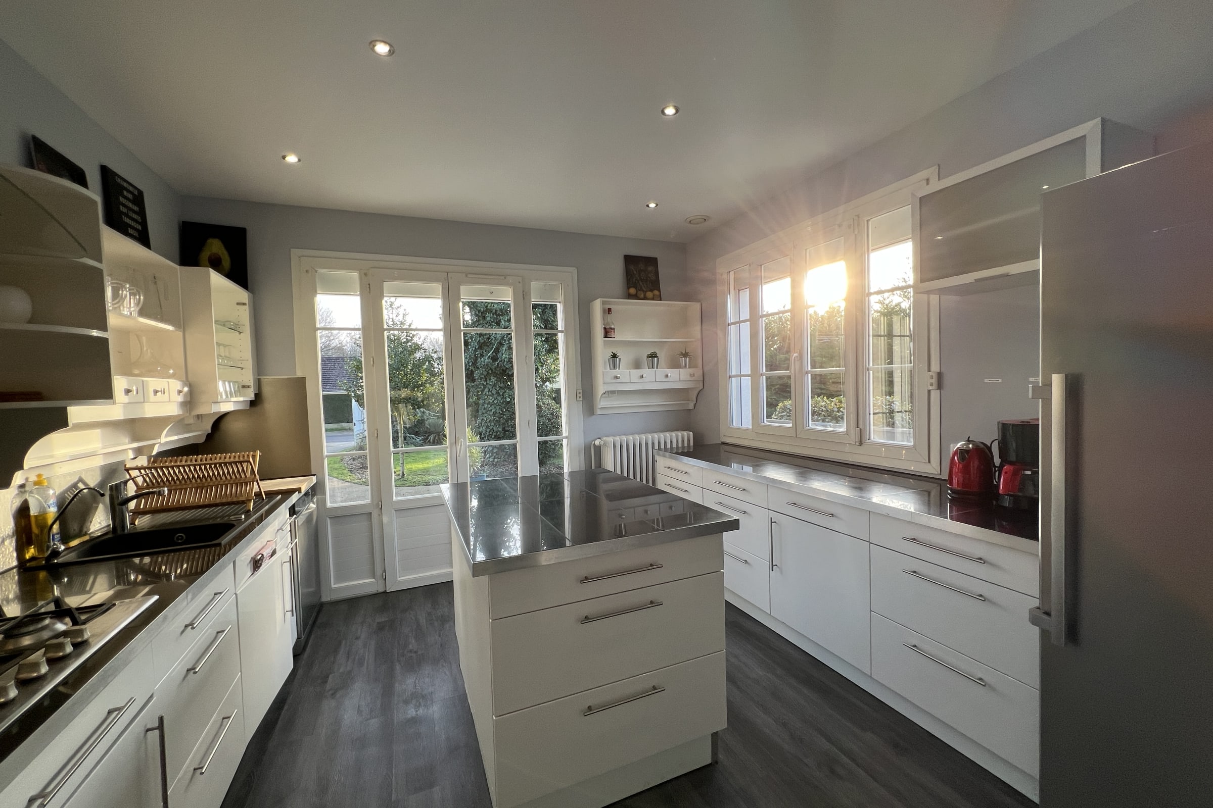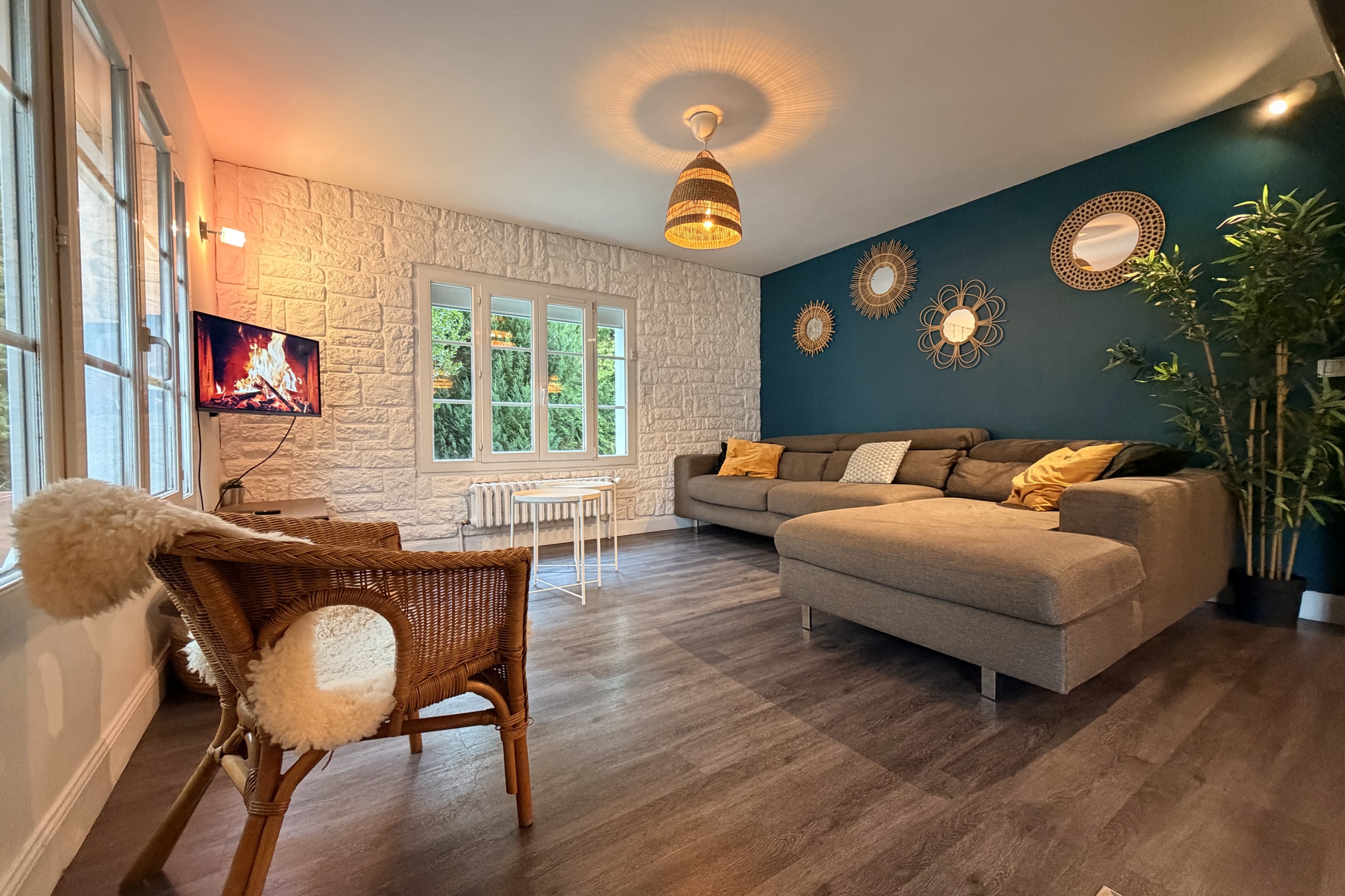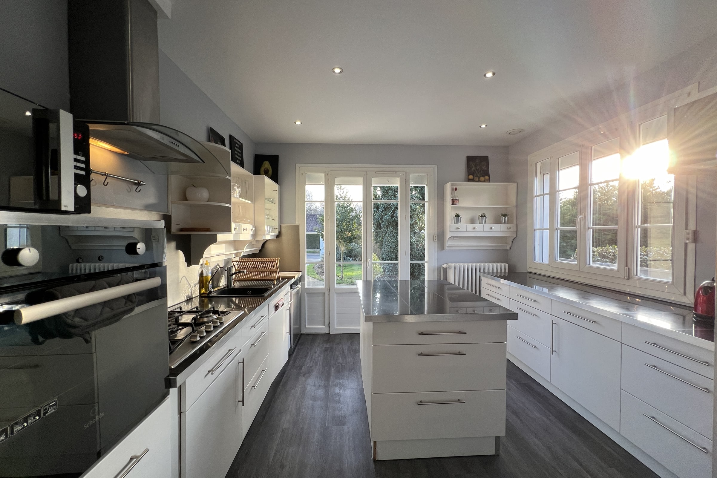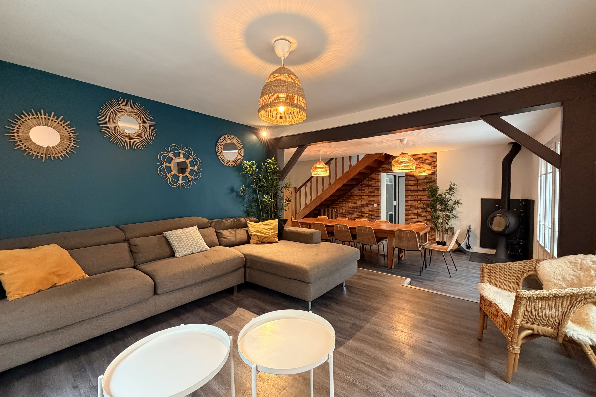 Vom Esszimmer aus haben Sie Zugang zu einer 100 m² großen Terrasse, die mit einem Grill und zwei großen Gartentischen für ein angenehmes Essen in der Sonne ausgestattet ist.