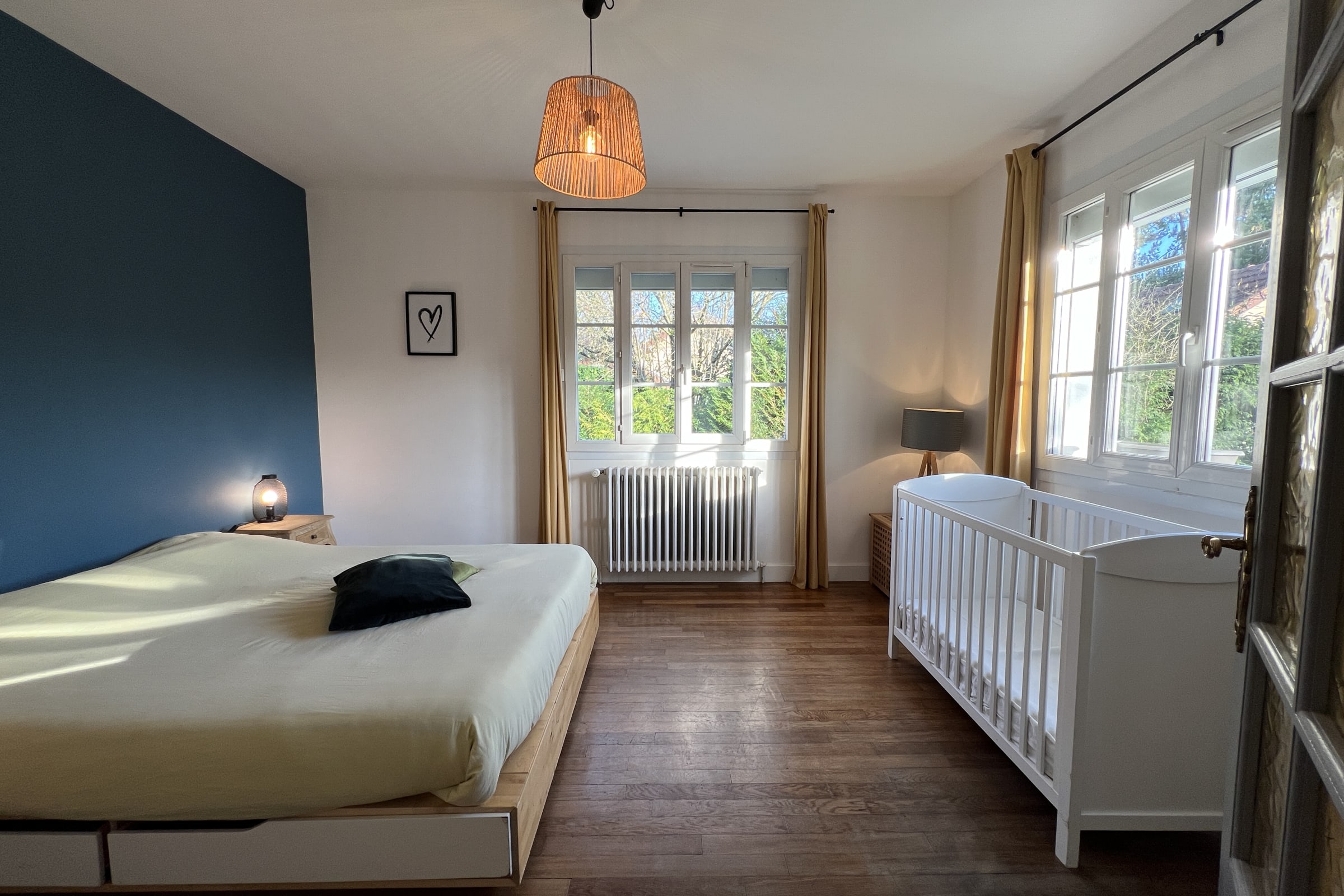 - Schlafzimmer 1 (Erdgeschoss): 1 Doppelbett + 1 Babybett