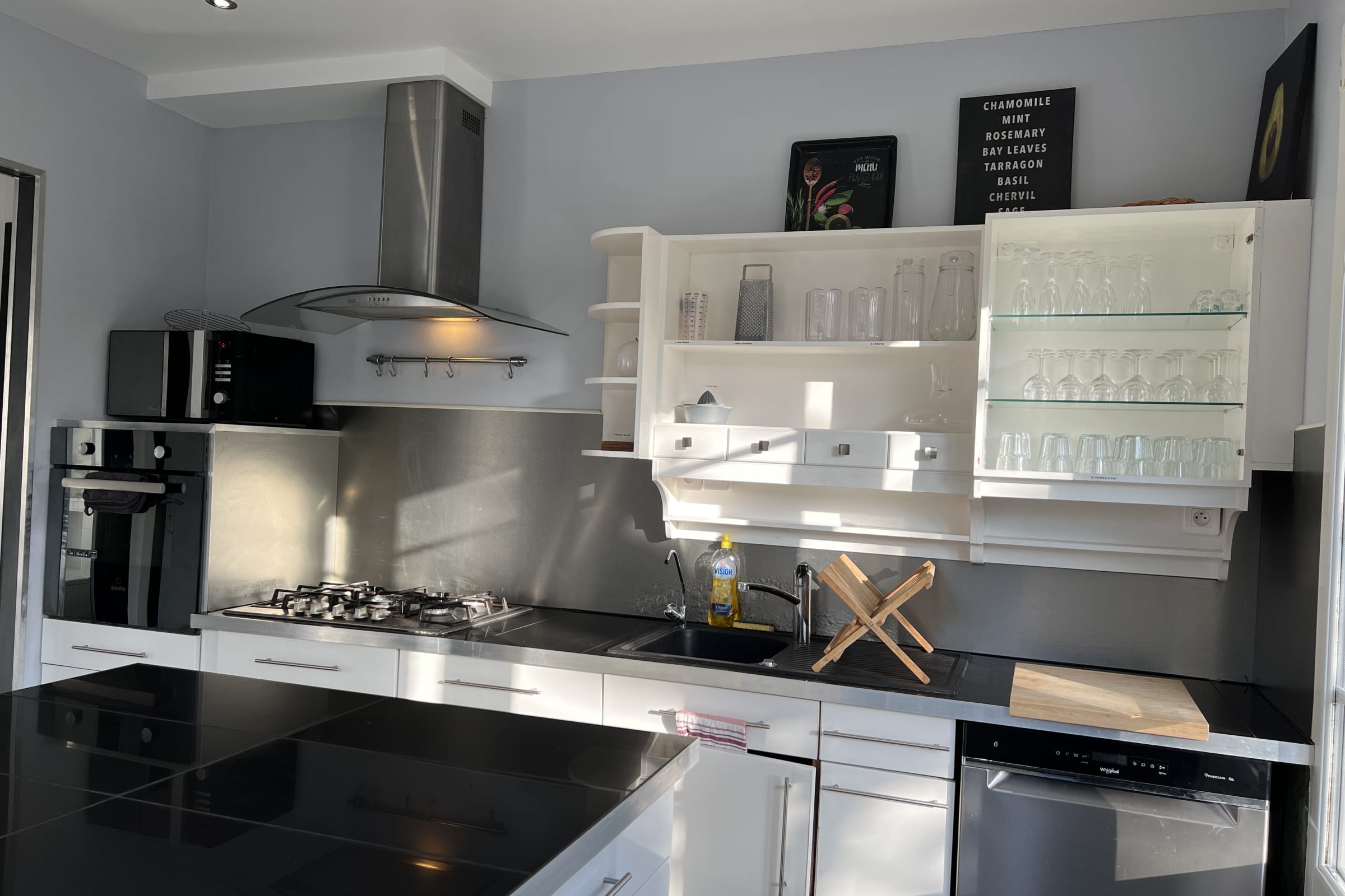 Die Küche ist voll ausgestattet: Kühlschrank, Backofen, Geschirrspüler, Mikrowelle, Filterkaffeemaschine (Filter erforderlich), Nespresso-Kaffeemaschine (Kapseln erforderlich), Waffeleisen, Toaster, Wasserkocher und Geschirr für 15 Personen. Außerdem finden Sie alles, was Sie zur Zubereitung Ihrer leckeren Rezepte benötigen (Auflaufformen, Bratpfannen, Töpfe usw.).
