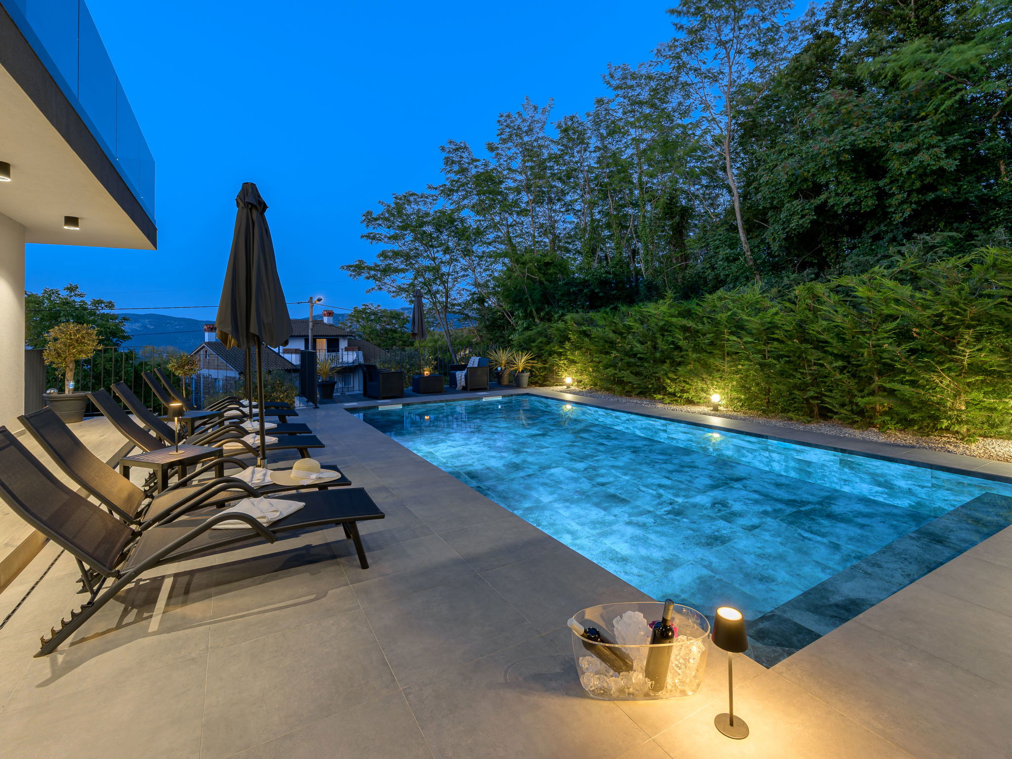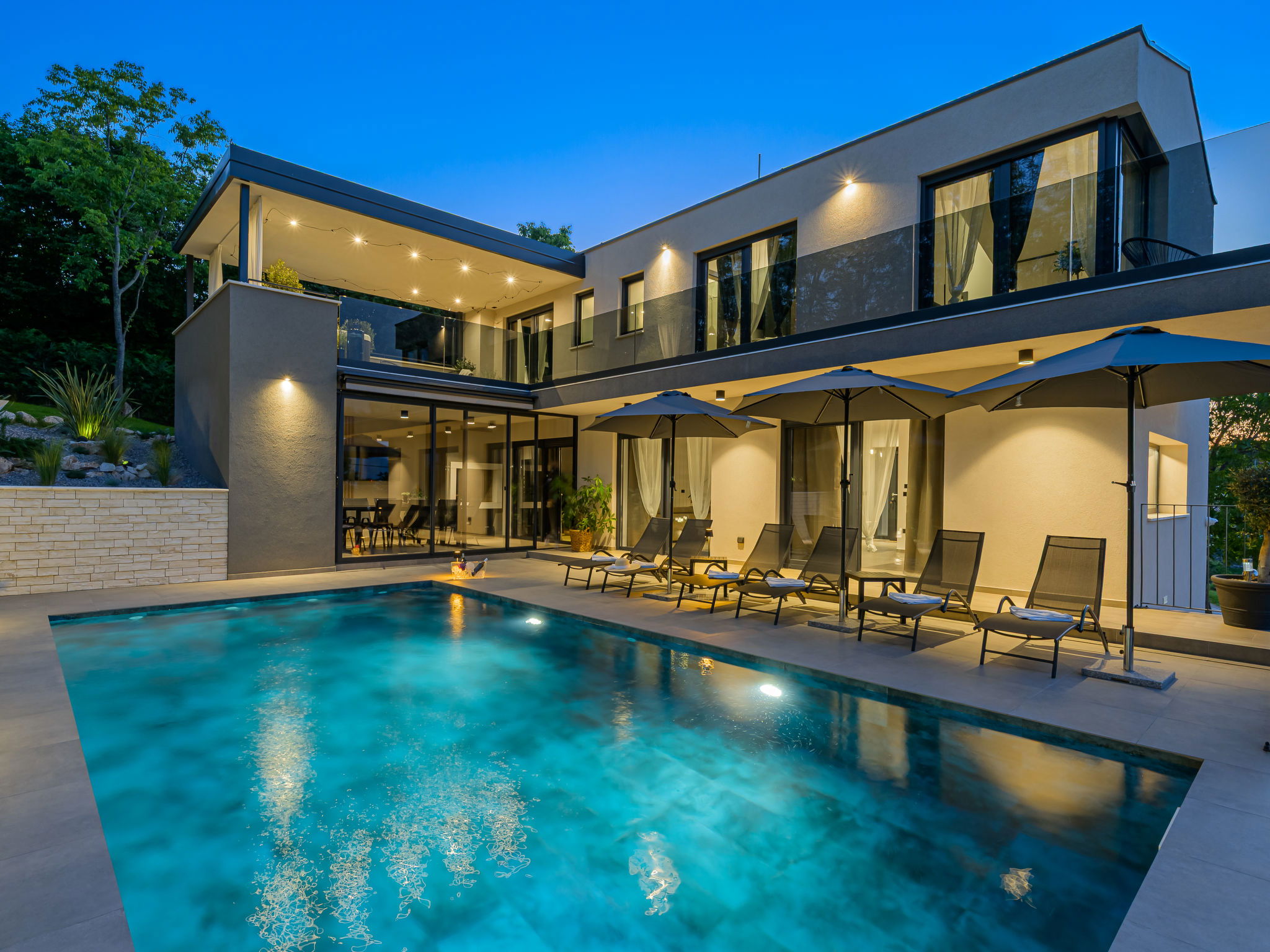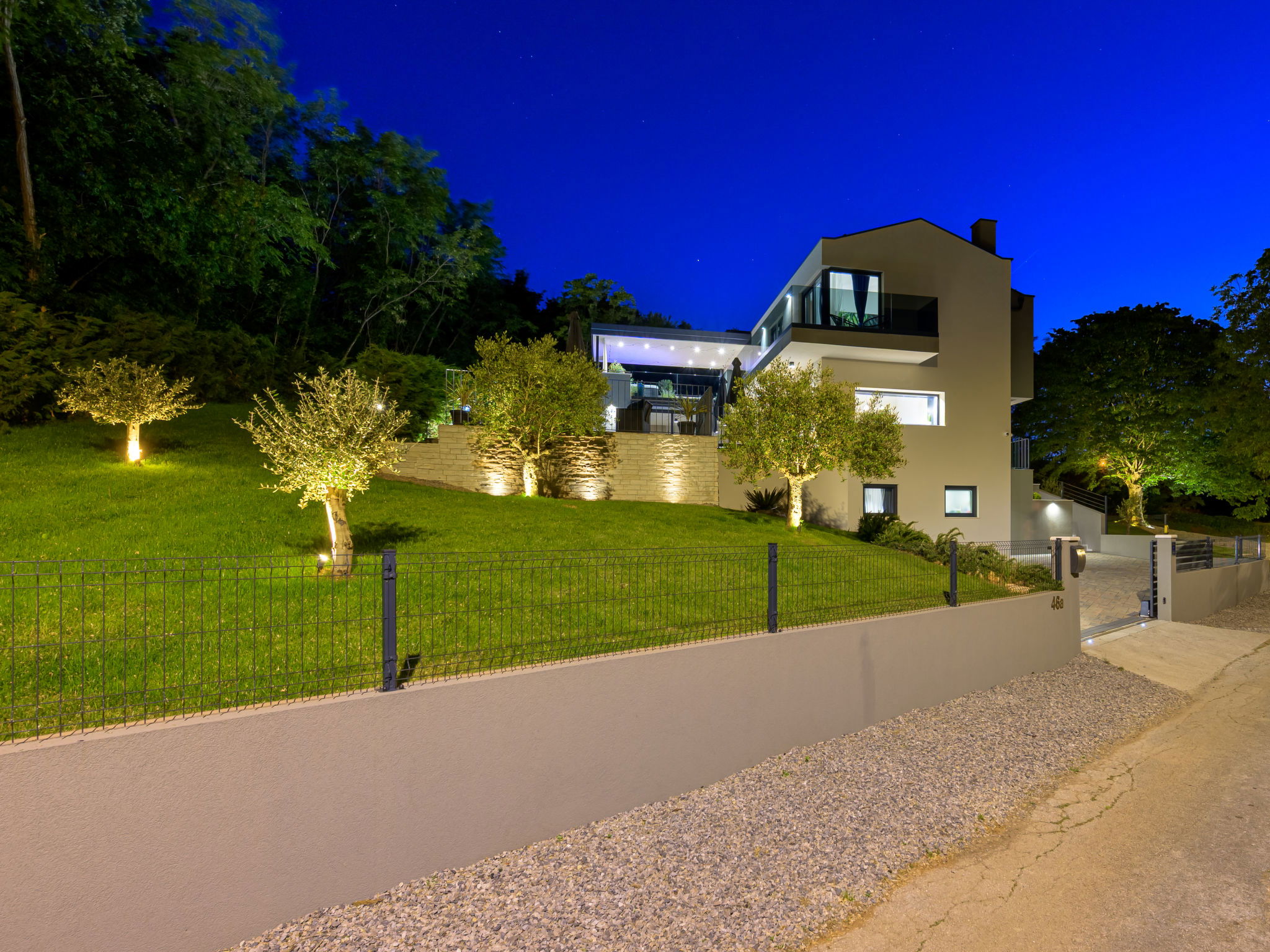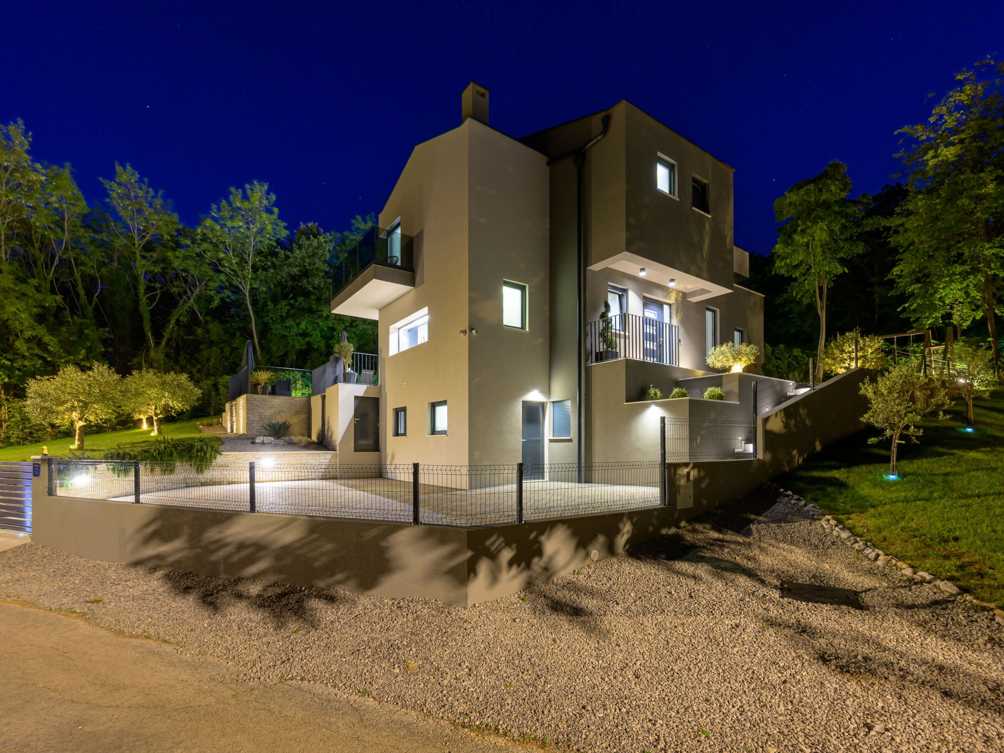 Sehr schöne, luxuriöse Villa "Ollea", auf 3 Stockwerken. Im Weiler Radovići, 10 km vom Zentrum von Labin, 15 km vom Zentrum von Rabac, 15 km vom Meer. Zur Alleinbenutzung: Grundstück 900 m2 (eingezäunt) mit Pflanzen und Bäumen, Schwimmbad eckig (8 x 4 m, 150 cm tief, saisonale Verfügbarkeit: 01.Apr. - 30.Okt.) mit Innentreppe. Aussendusche, Sprudelbad, Tischtennis, Grill (Rutschbahn, Schaukel), Poolpflege durch den Besitzer/Gärtner. Im Hause: Internetzugang, Sauna, Tischfussball, Waschmaschine, Wäschetrockner. Parkplatz (für 4 Autos, überdacht) beim Haus auf dem Grundstück. Einkaufsgeschäft 4 km, Supermarkt 10 km, Restaurant 4 km, Bushaltestelle "Labin" 10 km, Kieselstrand 15 km. Der Besitzer akzeptiert keine Jugendgruppen. Bitte beachten: Flugplatz 53 km vom Haus. Videoüberwachung der Einfahrt und des Parkplatzes.