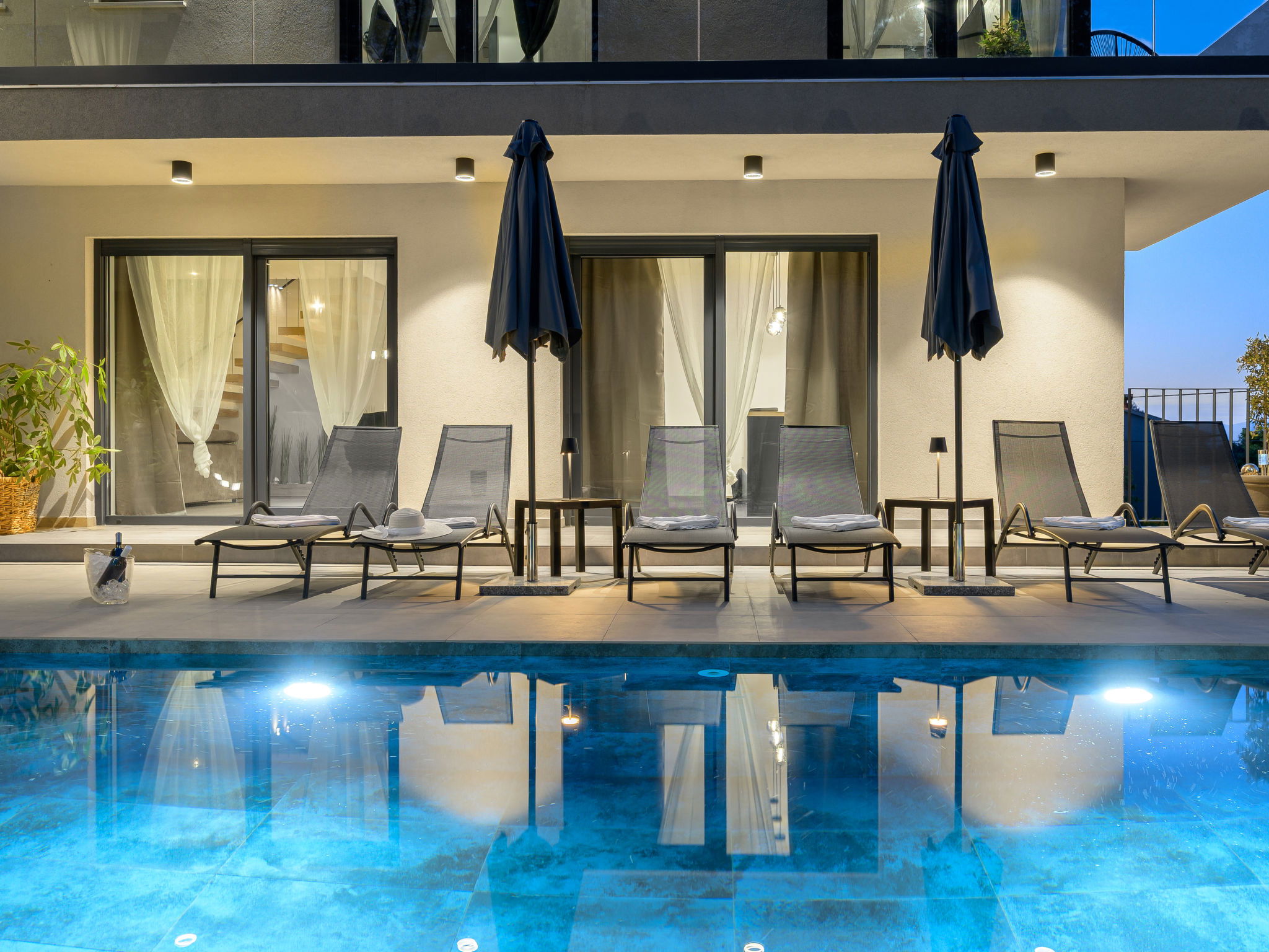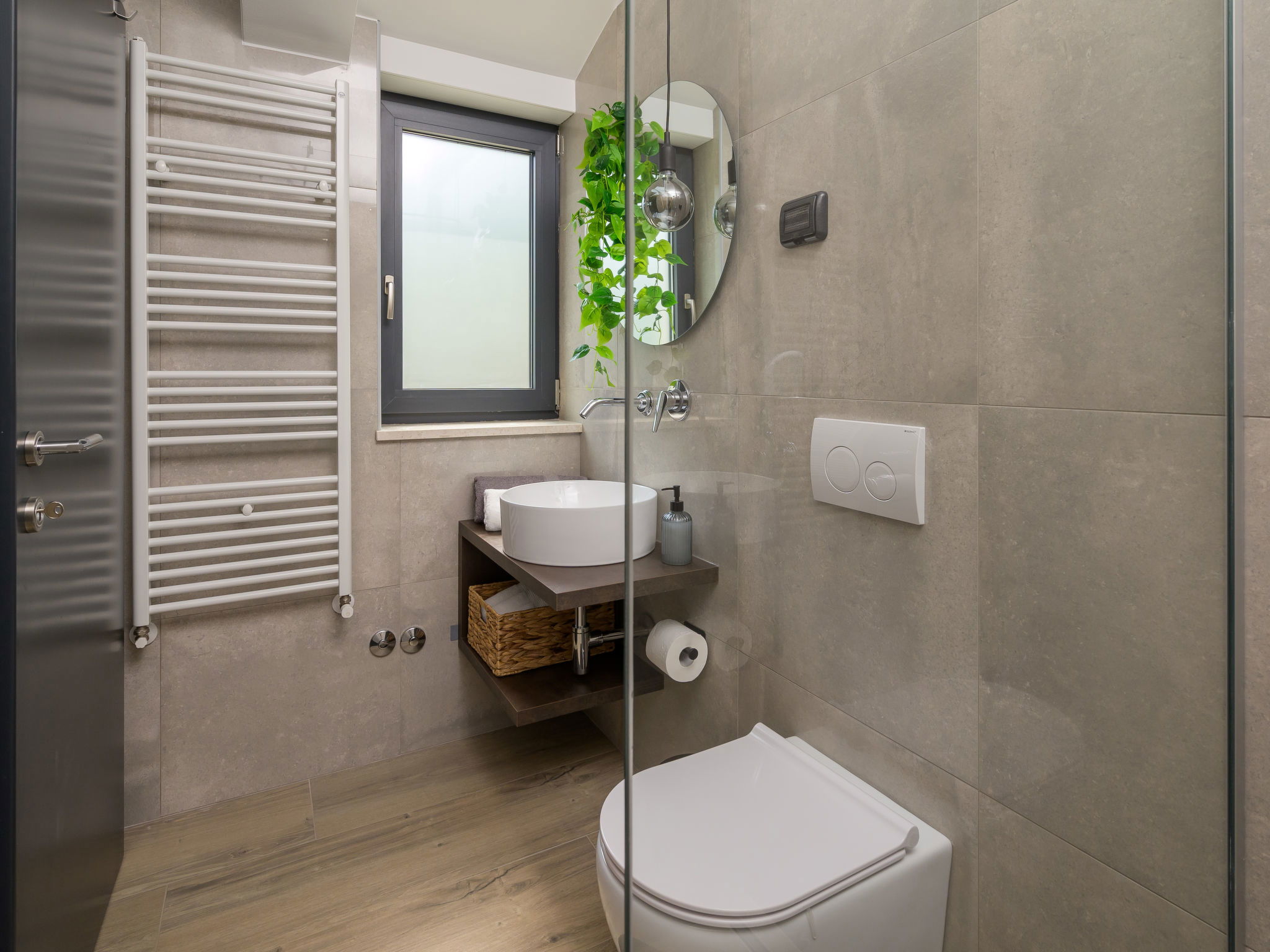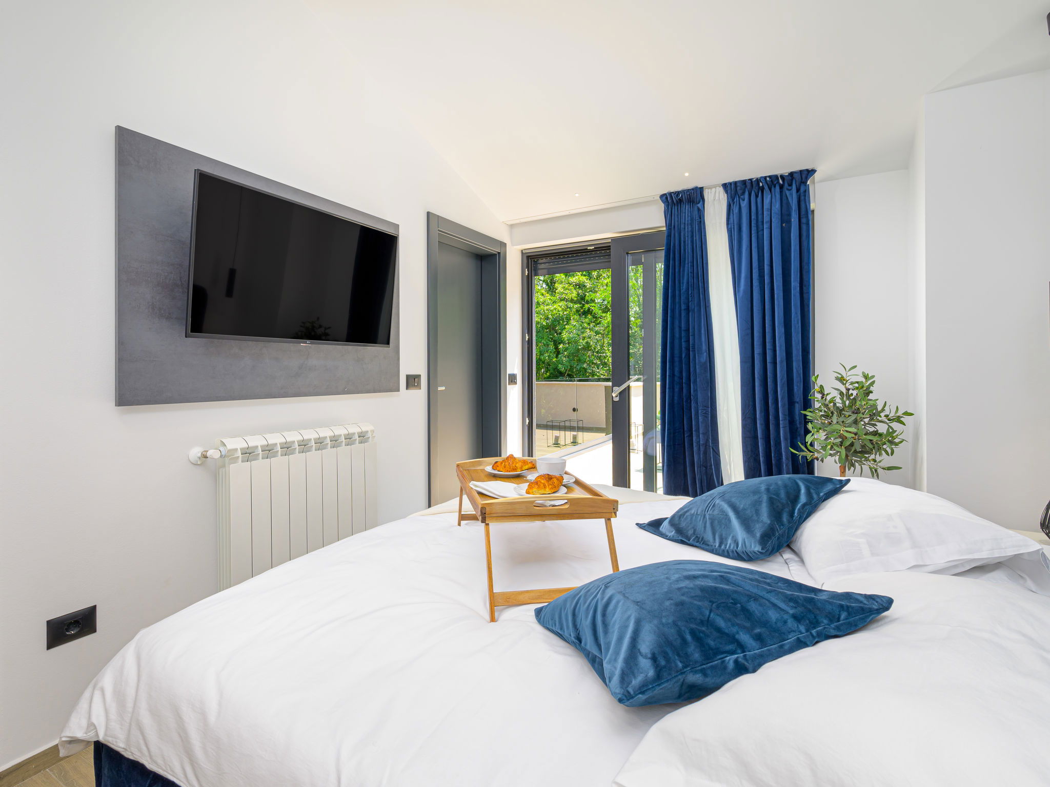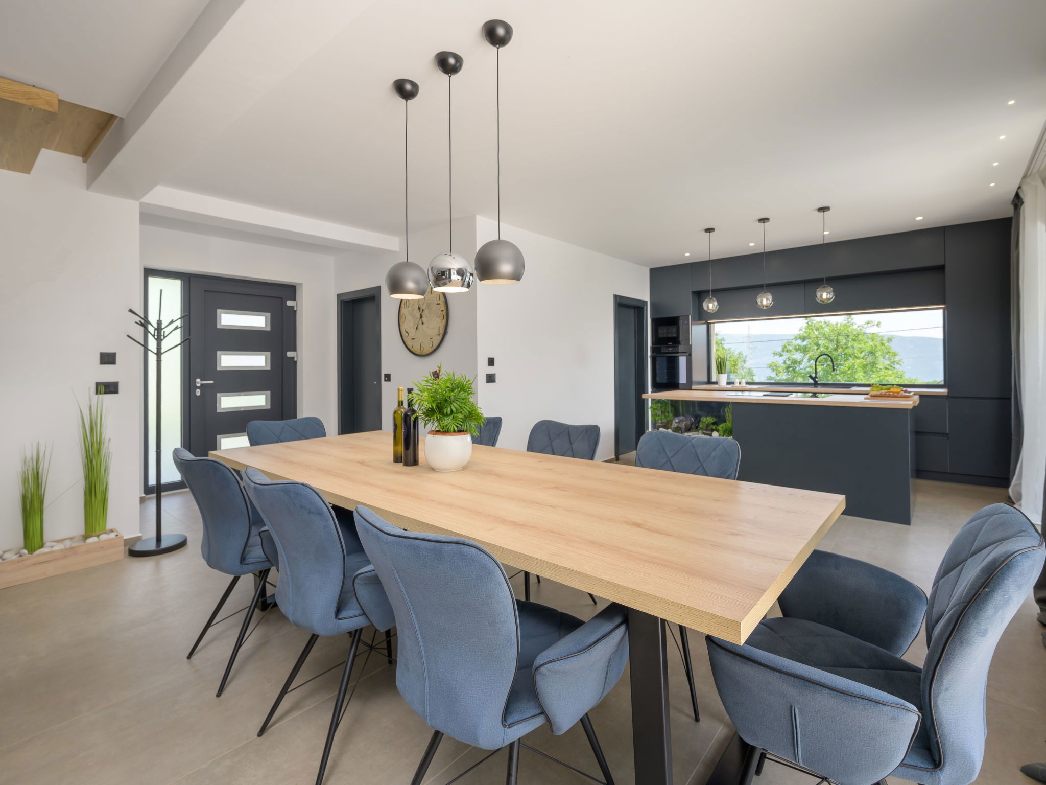 Sehr schöne, luxuriöse Villa "Ollea", auf 3 Stockwerken. Im Weiler Radovići, 10 km vom Zentrum von Labin, 15 km vom Zentrum von Rabac, 15 km vom Meer. Zur Alleinbenutzung: Grundstück 900 m2 (eingezäunt) mit Pflanzen und Bäumen, Schwimmbad eckig (8 x 4 m, 150 cm tief, saisonale Verfügbarkeit: 01.Apr. - 30.Okt.) mit Innentreppe. Aussendusche, Sprudelbad, Tischtennis, Grill (Rutschbahn, Schaukel), Poolpflege durch den Besitzer/Gärtner. Im Hause: Internetzugang, Sauna, Tischfussball, Waschmaschine, Wäschetrockner. Parkplatz (für 4 Autos, überdacht) beim Haus auf dem Grundstück. Einkaufsgeschäft 4 km, Supermarkt 10 km, Restaurant 4 km, Bushaltestelle "Labin" 10 km, Kieselstrand 15 km. Der Besitzer akzeptiert keine Jugendgruppen. Bitte beachten: Flugplatz 53 km vom Haus. Videoüberwachung der Einfahrt und des Parkplatzes.