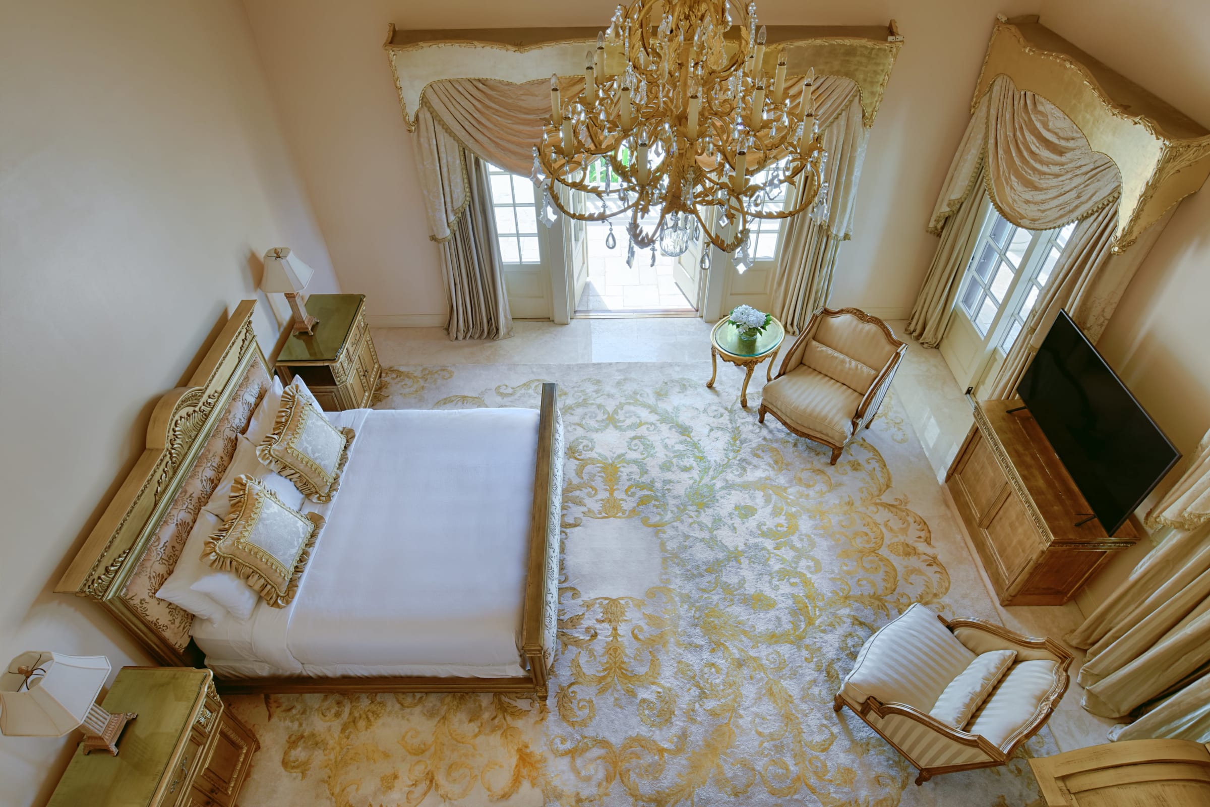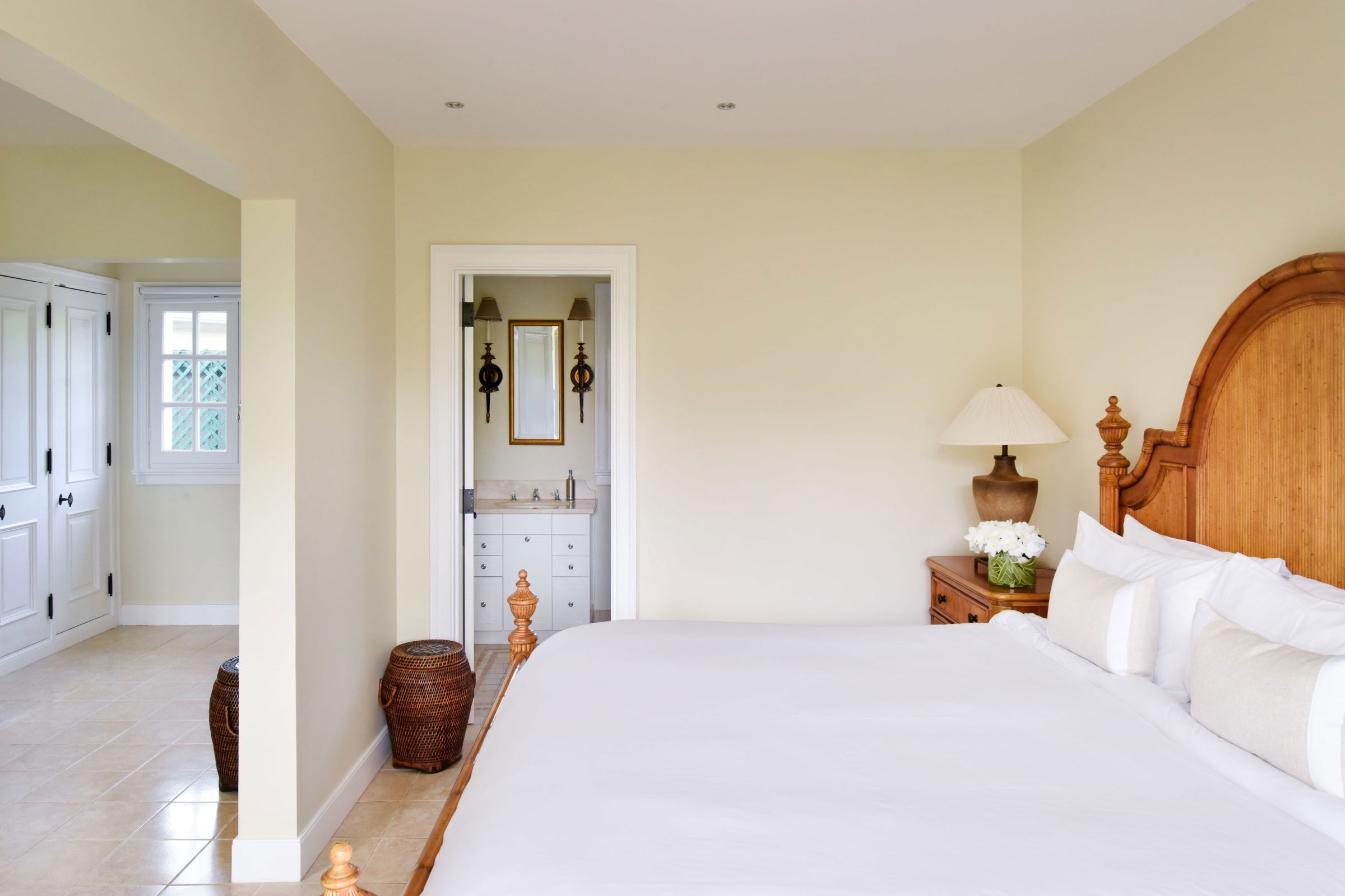 Auf der Gartenseite des Anwesens befinden sich vier weitere Schlafzimmer, eine Küche, ein Tennisplatz und ein Fitnessstudio. Diese Einrichtungen bieten den Gästen Zugang zu einer breiten Palette an Annehmlichkeiten zur Entspannung und Unterhaltung.