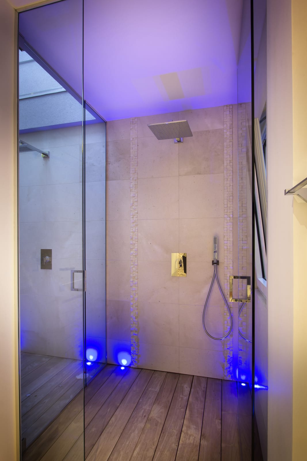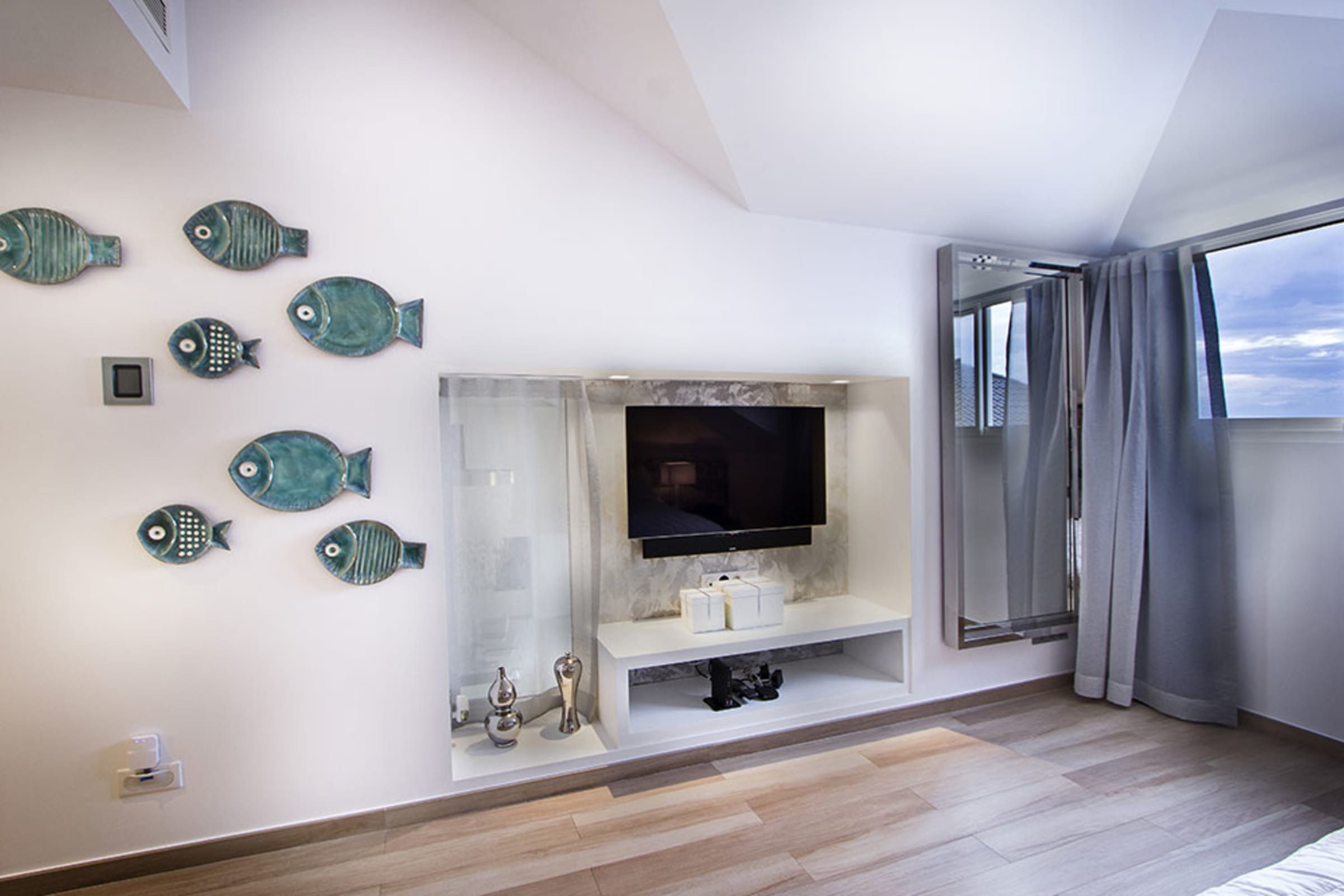 Zusätzlich zu den vier Schlafzimmern gibt es zwei weitere Schlafzimmer, die vom Inneren der Villa über eine Glastreppe zugänglich sind. Diese Schlafzimmer verfügen ebenfalls über ein eigenes Bad und bieten einen atemberaubenden Blick auf die Umgebung.