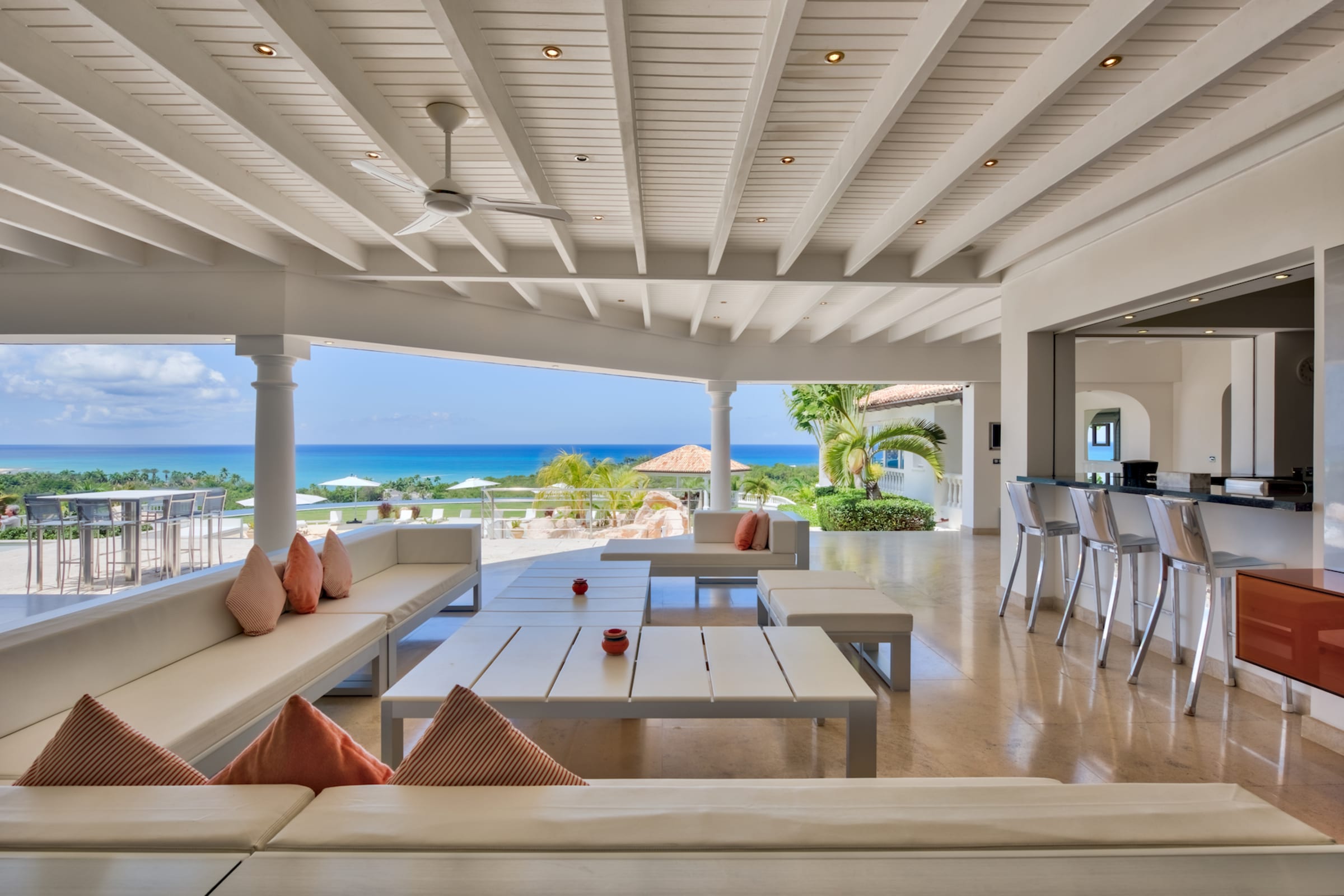 Die Außenbereiche, aufgewertet durch von Philippe Starck entworfene Möbel, schaffen eine elegante und einladende Atmosphäre, ideal für Momente der Geselligkeit oder Entspannung unter der karibischen Sonne.