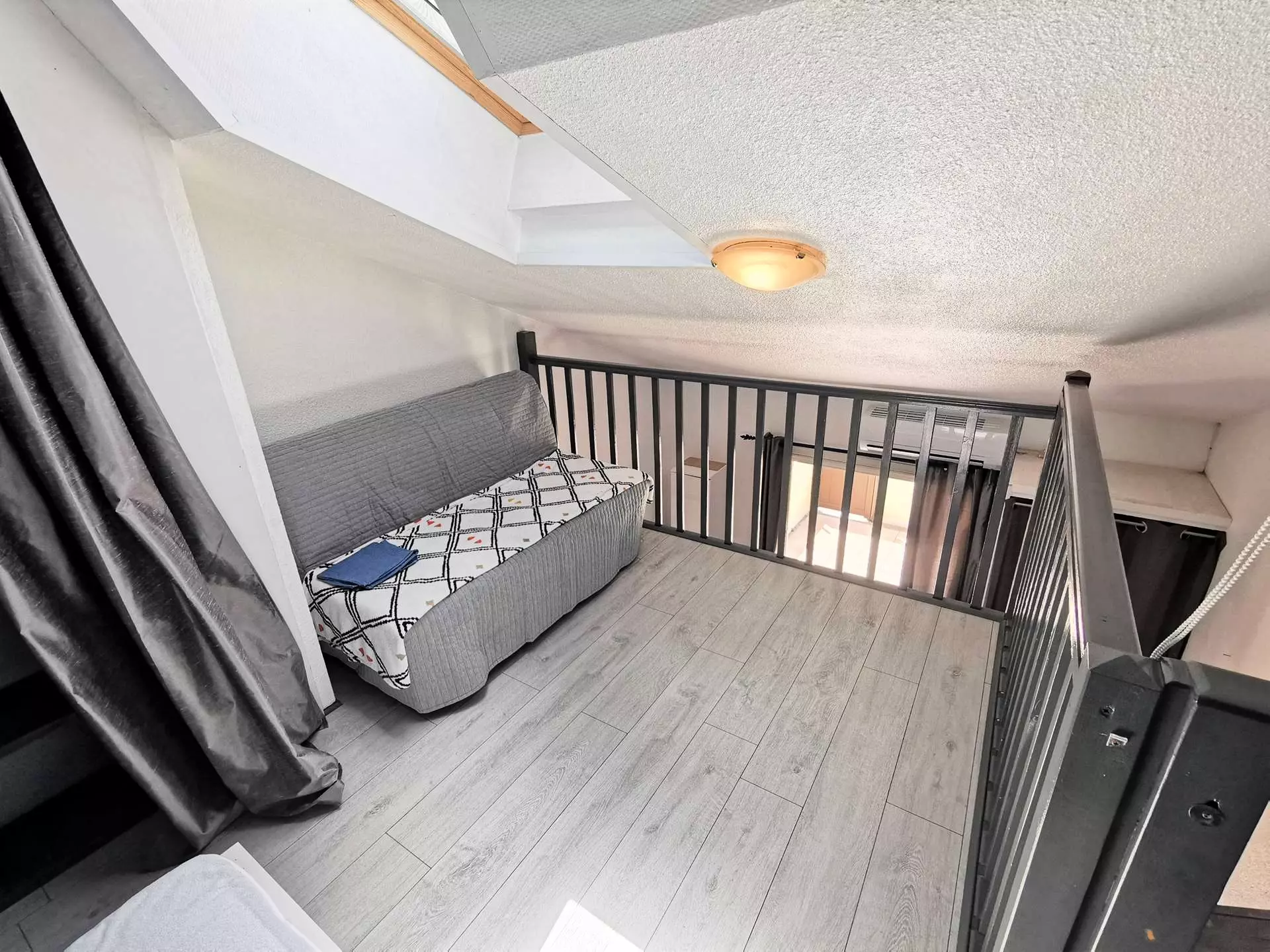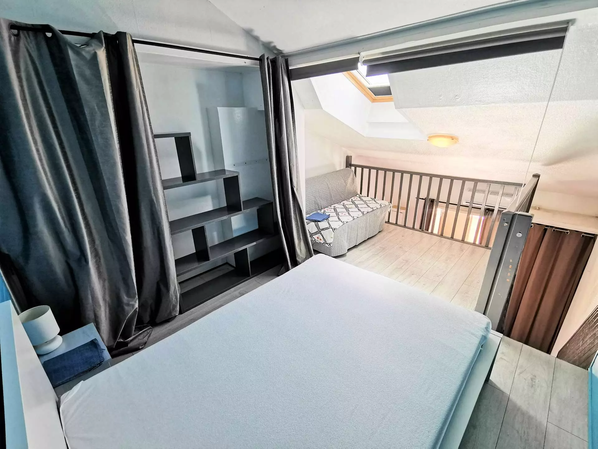 - Ein Zwischengeschoss mit einem Doppelbett und einem Doppelschlafsofa