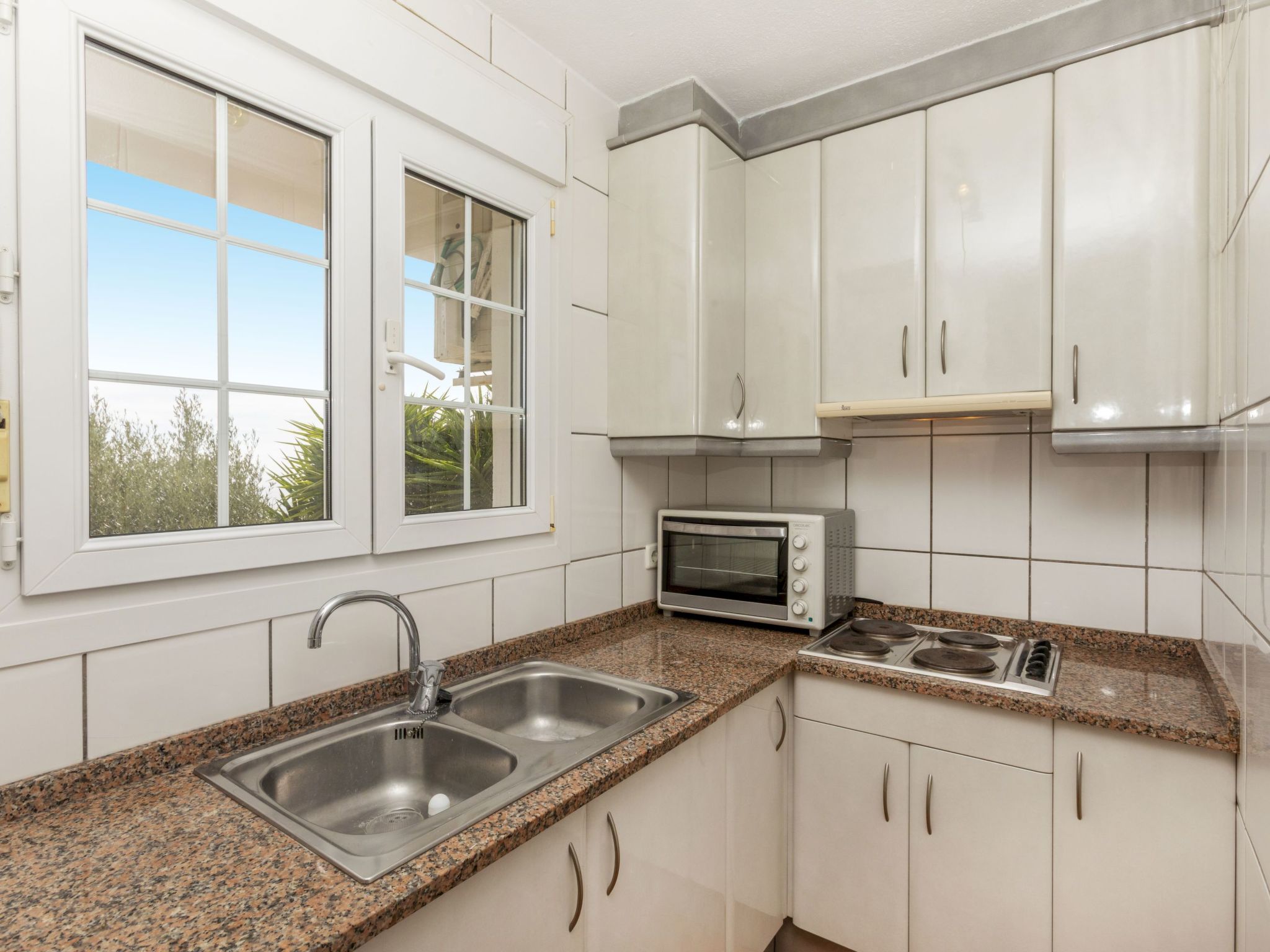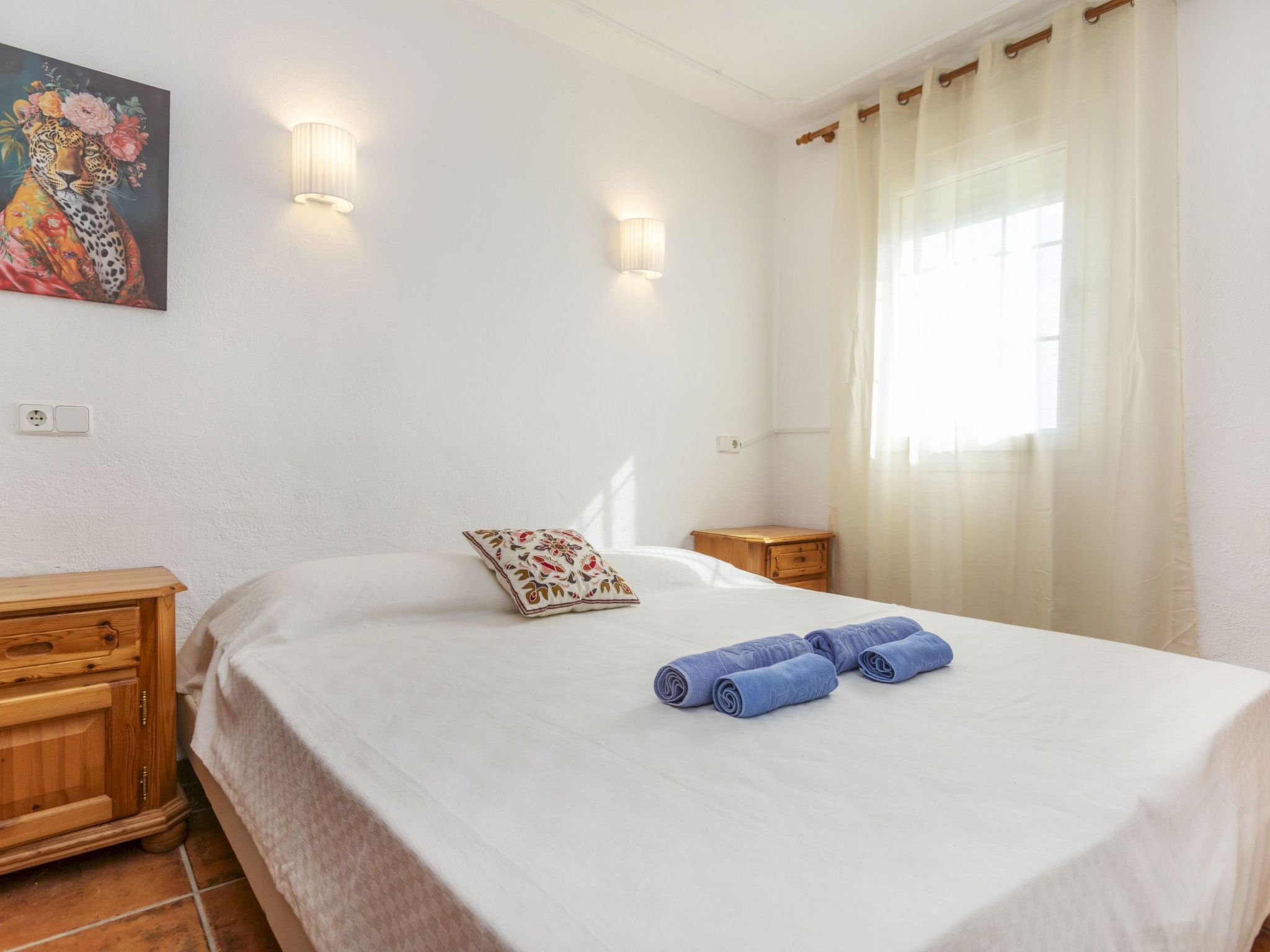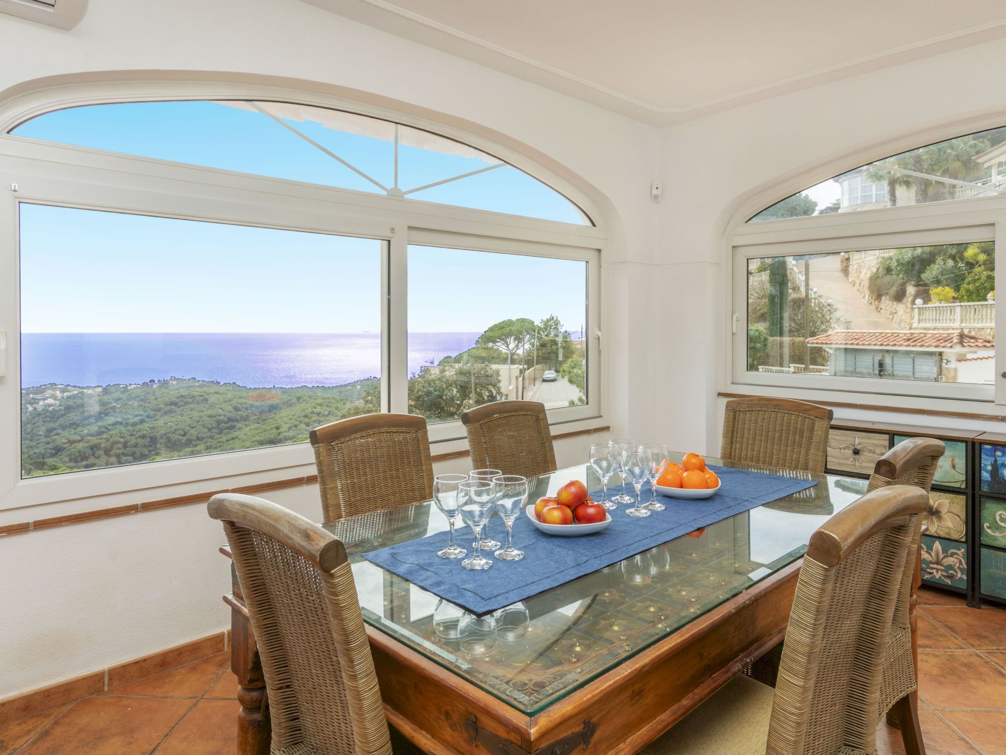 "Floramar", 7-Zimmer-Haus 288 m2 auf 2 Stockwerken. Geräumig und hell, sehr zweckmässig und komfortabel eingerichtet: Wohn-/Esszimmer mit offenem Kamin, Esstisch, Digital-TV und Internationale TV-Sender. 1 Doppelzimmer mit 1 franz. Bett (160 cm, Länge 190 cm). 1 Doppelzimmer mit 2 Betten (90 cm, Länge 190 cm). 1 Doppelzimmer mit 1 franz. Bett (180 cm, Länge 200 cm). Offene Küche (Backofen, Geschirrspüler, 4 Glaskeramikplatten, Toaster, Wasserkocher, Mikrowelle, Tiefkühler, elektrische Kaffeemaschine). 2 Duschen/WC. Unteres Geschoss: 1 Doppelzimmer mit 1 franz. Bett (200 cm, Länge 200 cm) mit 1 Doppeldiwanbett (135 cm, Länge 190 cm), Digital-TV und Internationale TV-Sender. Ausgang zum Gartensitzplatz. Offene Küche (Toaster, Wasserkocher, Mikrowelle, Tiefkühler, elektrische Kaffeemaschine) mit Esstisch. Dusche/WC. Terrassenmöbel, Gartengrill, Liegestühle. Herrliche Sicht auf das Meer. Zur Verfügung: Waschmaschine, Bügeleisen, Kinderhochstuhl, Babybett bis 2 Jahre, Haartrockner. Internet (WLAN, gratis). Bitte beachten: geeignet für Familien ein Doppelzimmer liegt außerhalb der Wohnung. Maximal 1 kleines Haustier/Hund erlaubt. TV nur FR, DE, ES. HUTG-014930