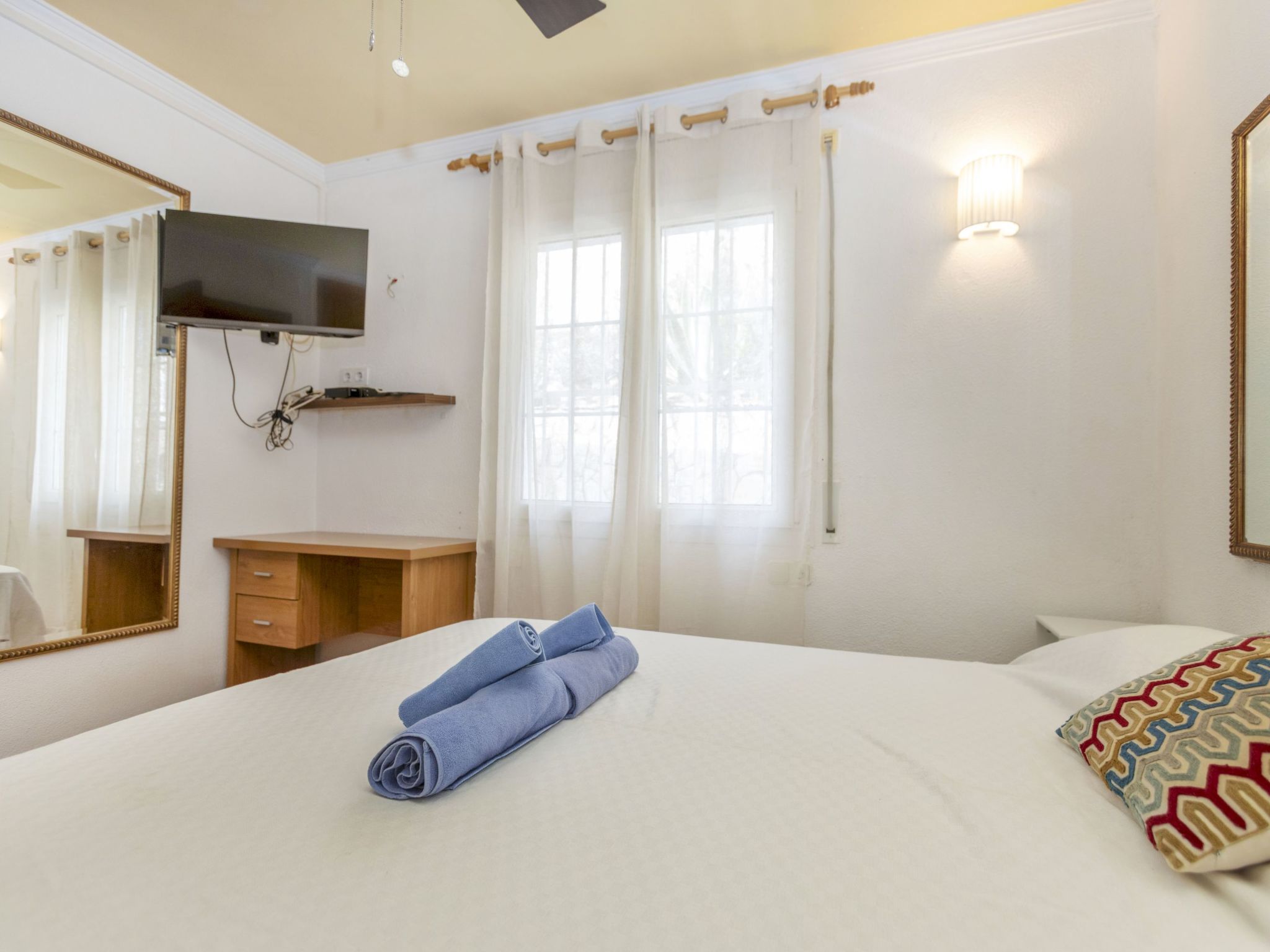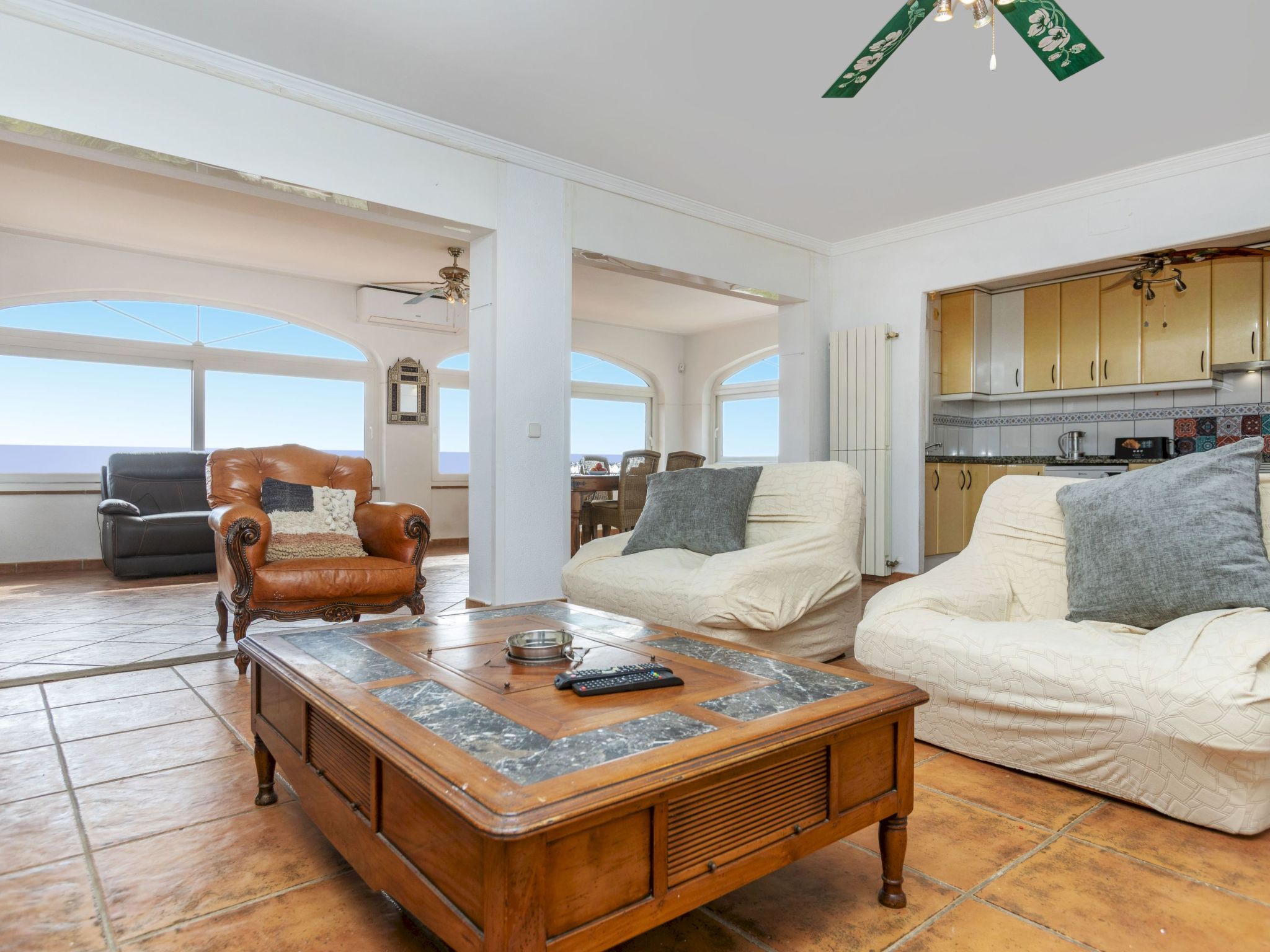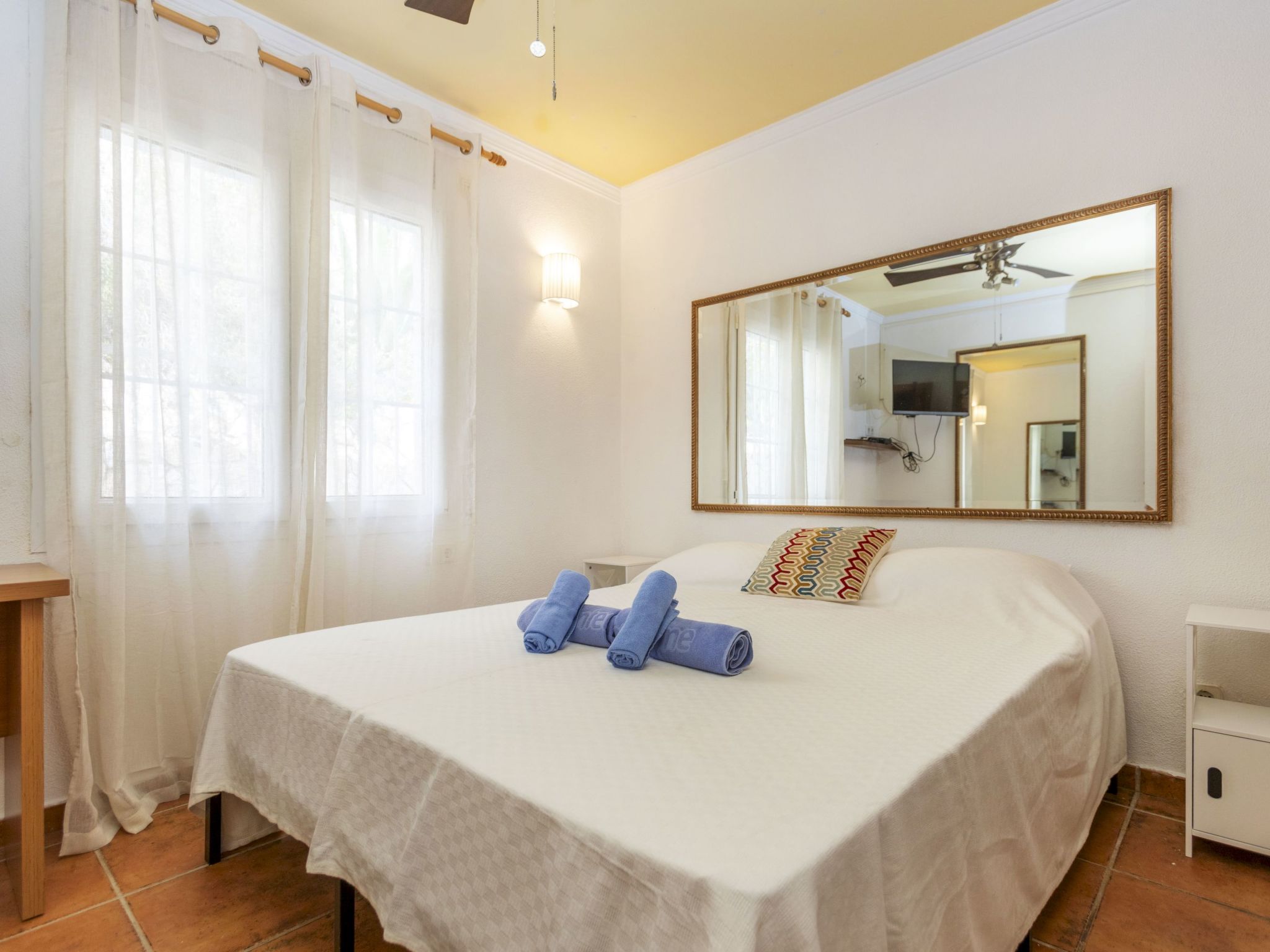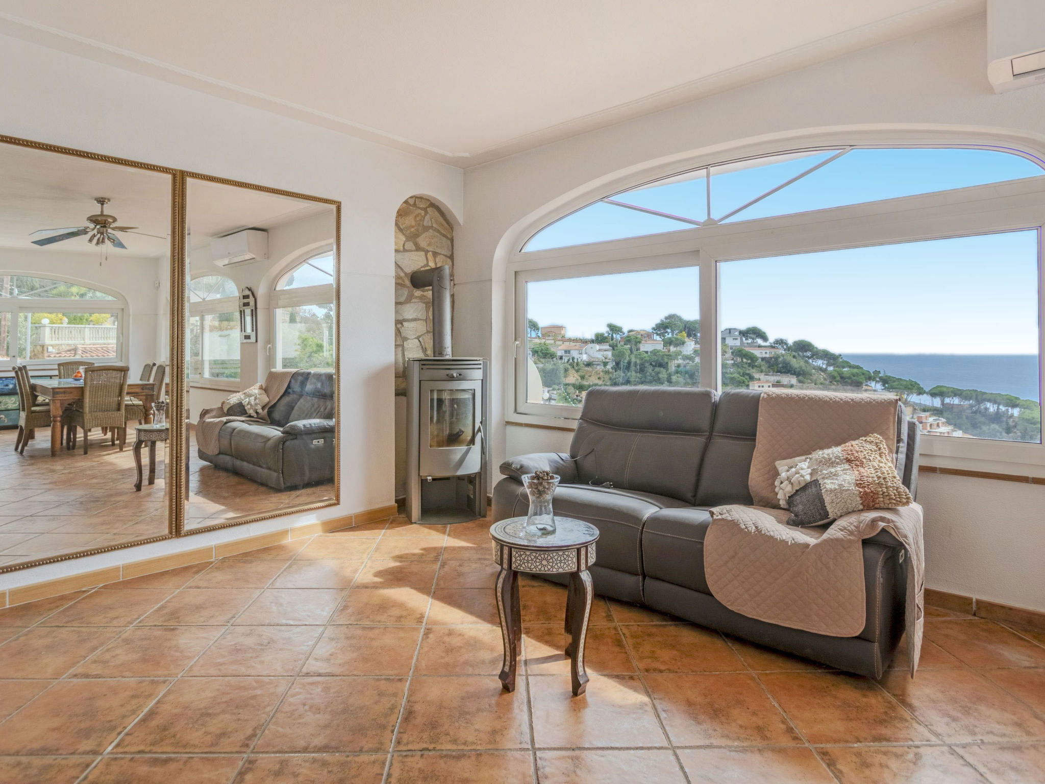 "Floramar", 7-Zimmer-Haus 288 m2 auf 2 Stockwerken. Geräumig und hell, sehr zweckmässig und komfortabel eingerichtet: Wohn-/Esszimmer mit offenem Kamin, Esstisch, Digital-TV und Internationale TV-Sender. 1 Doppelzimmer mit 1 franz. Bett (160 cm, Länge 190 cm). 1 Doppelzimmer mit 2 Betten (90 cm, Länge 190 cm). 1 Doppelzimmer mit 1 franz. Bett (180 cm, Länge 200 cm). Offene Küche (Backofen, Geschirrspüler, 4 Glaskeramikplatten, Toaster, Wasserkocher, Mikrowelle, Tiefkühler, elektrische Kaffeemaschine). 2 Duschen/WC. Unteres Geschoss: 1 Doppelzimmer mit 1 franz. Bett (200 cm, Länge 200 cm) mit 1 Doppeldiwanbett (135 cm, Länge 190 cm), Digital-TV und Internationale TV-Sender. Ausgang zum Gartensitzplatz. Offene Küche (Toaster, Wasserkocher, Mikrowelle, Tiefkühler, elektrische Kaffeemaschine) mit Esstisch. Dusche/WC. Terrassenmöbel, Gartengrill, Liegestühle. Herrliche Sicht auf das Meer. Zur Verfügung: Waschmaschine, Bügeleisen, Kinderhochstuhl, Babybett bis 2 Jahre, Haartrockner. Internet (WLAN, gratis). Bitte beachten: geeignet für Familien ein Doppelzimmer liegt außerhalb der Wohnung. Maximal 1 kleines Haustier/Hund erlaubt. TV nur FR, DE, ES. HUTG-014930