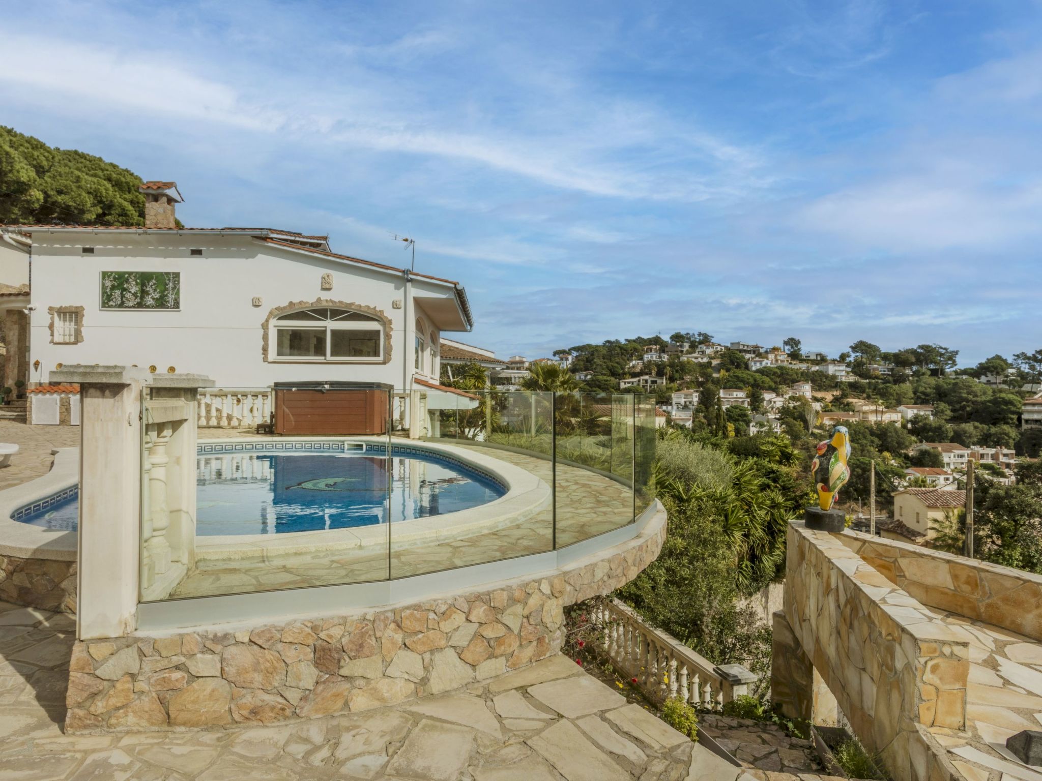 Serra Brava 5 km von Lloret de Mar: Haus "Floramar", auf 2 Stockwerken. 3 km vom Meer, 3 km vom Strand. Zur Alleinbenutzung: terrassierter Garten, Schwimmbad nierenförmig (7 x 3 m, 200 cm tief, saisonale Verfügbarkeit: 01.Mai. - 30.Okt.). Einzelgarage beim Haus. Supermarkt 1 km, Restaurant 1 km, Bar 1 km, Bushaltestelle 2 km, Sandstrand "Cala Canyelles" 3 km. Sporthafen 3 km, Golfplatz (18 Loch) 32 km. Nahe gelegene Sehenswürdigkeiten: Waterworld 7 km, Marineland 15 km, Barcelona 80 km, Girona 40 km. Bitte beachten: Fahrzeug empfohlen. Die Nachbarschaft ist sehr lärmempfindlich. Ruhe und gutes Benehmen wird erwartet.