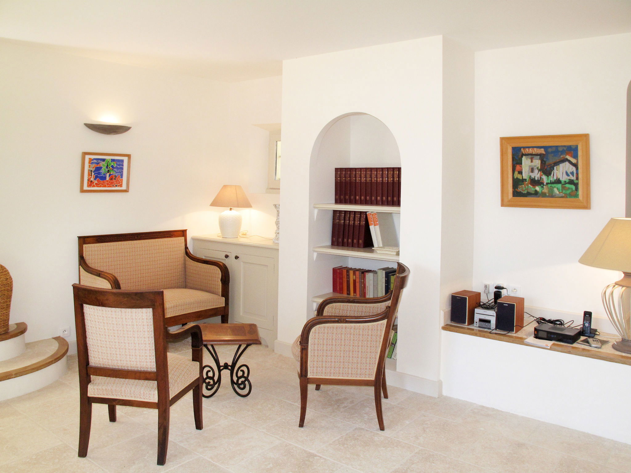 "Maussane (MSL100)", 6-Zimmer-Haus 150 m2 auf 2 Stockwerken. Antik und geschmackvoll eingerichtet: Wohnzimmer mit TV und Internationale TV-Sender (Flachbildschirm), Stereoanlage und DVD. Ausgang zur Terrasse. 1 Zimmer mit 1 franz. Bett (140 cm, Länge 190 cm). 2 Zimmer, jedes Zimmer mit 2 Betten (90 cm, Länge 200 cm). Esszimmer mit Esstisch. Ausgang zur Terrasse. Offene Küche (Backofen, Geschirrspüler, 4 Glaskeramikherd Platten, Toaster, Wasserkocher, Mikrowelle, Tiefkühler, elektrische Kaffeemaschine, Kapseln für die Kaffeemaschine (Senseo et Nespresso) extra). Bad, Dusche, 2 sep. WC's, Doppelwaschbecken. Obergeschoss: 1 Zimmer mit 1 franz. Bett (160 cm, Länge 200 cm). Bad, sep. WC, Doppelwaschbecken. E-Heizung. Natursteinböden. Terrasse. Terrassenmöbel, Gartengrill (mobil), Liegestühle. Zur Verfügung: Waschmaschine, Wäschetrockner, Bügeleisen, Kinderhochstuhl, Babybett. Internet (Wireless LAN, gratis). Bitte beachten: geeignet für Familien. Nichtraucher-Haus. Maximal 2 Haustiere/Hunde erlaubt. Rauchmelder.