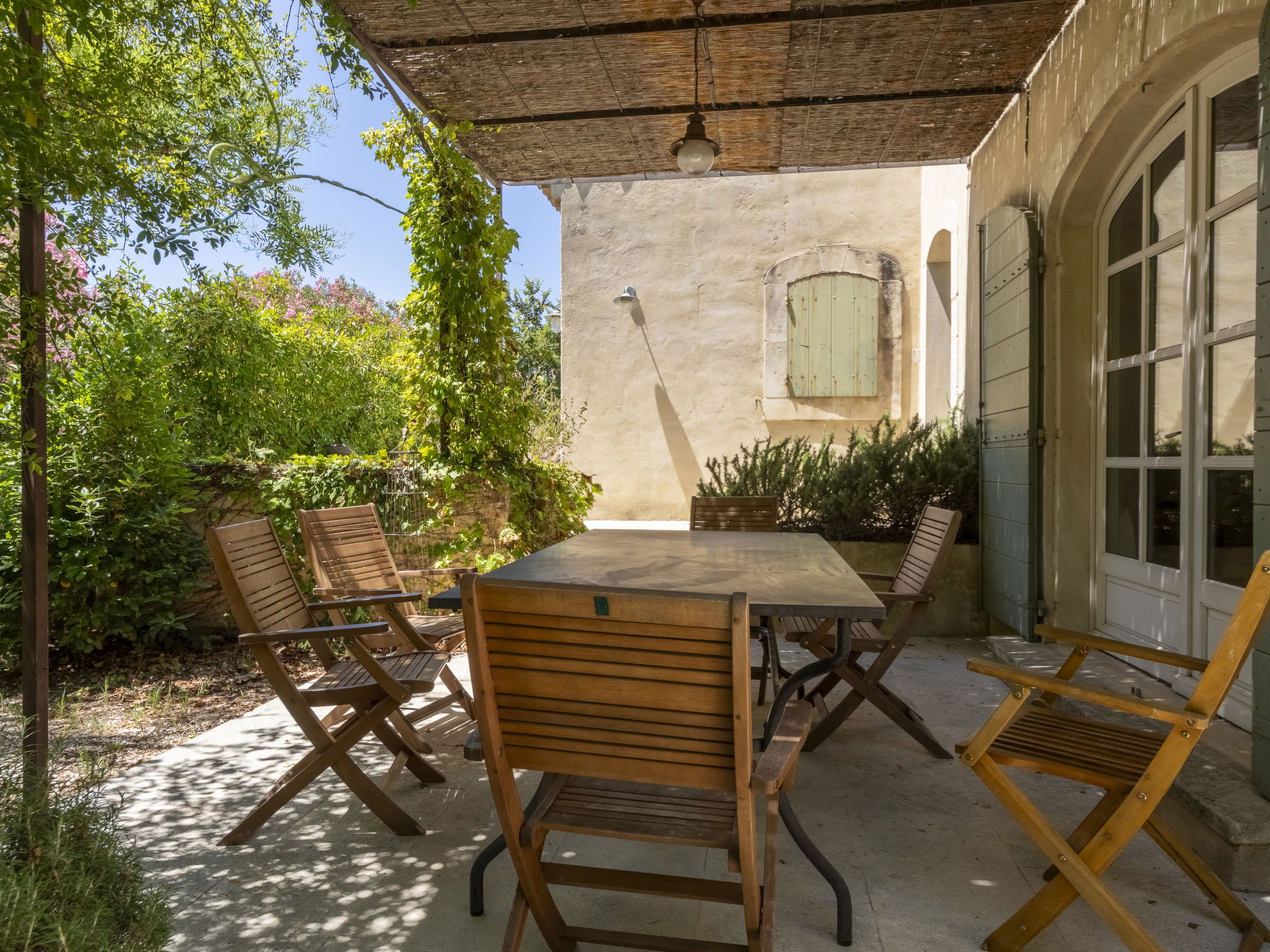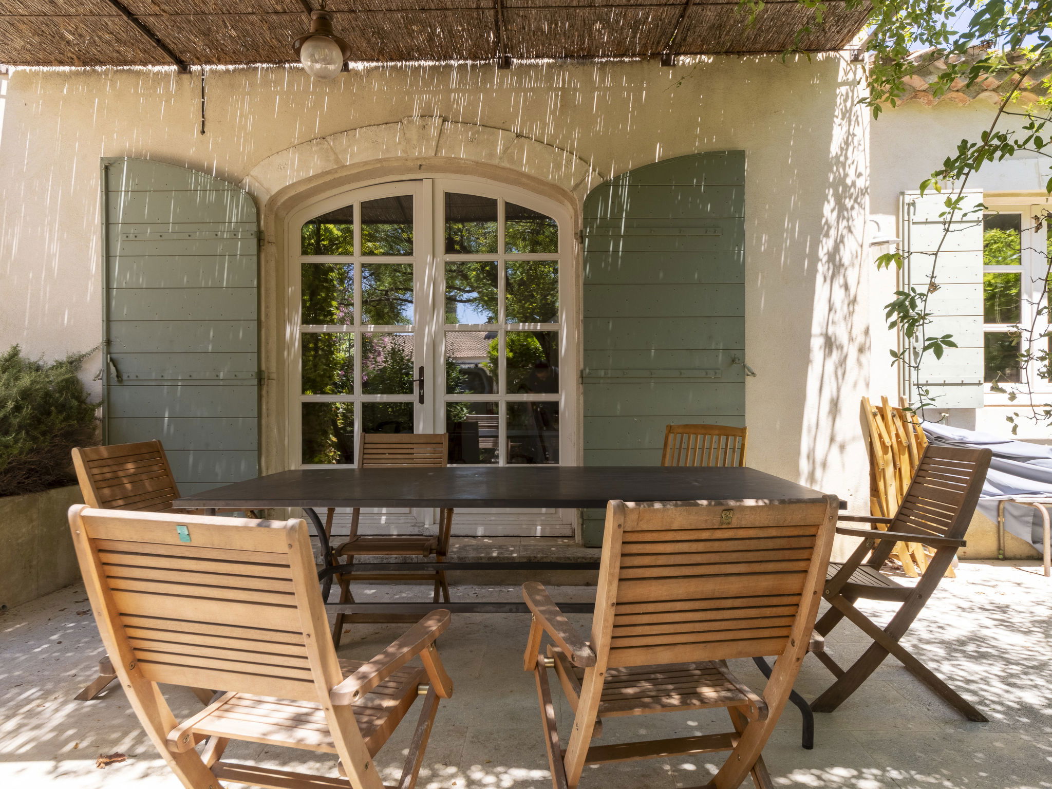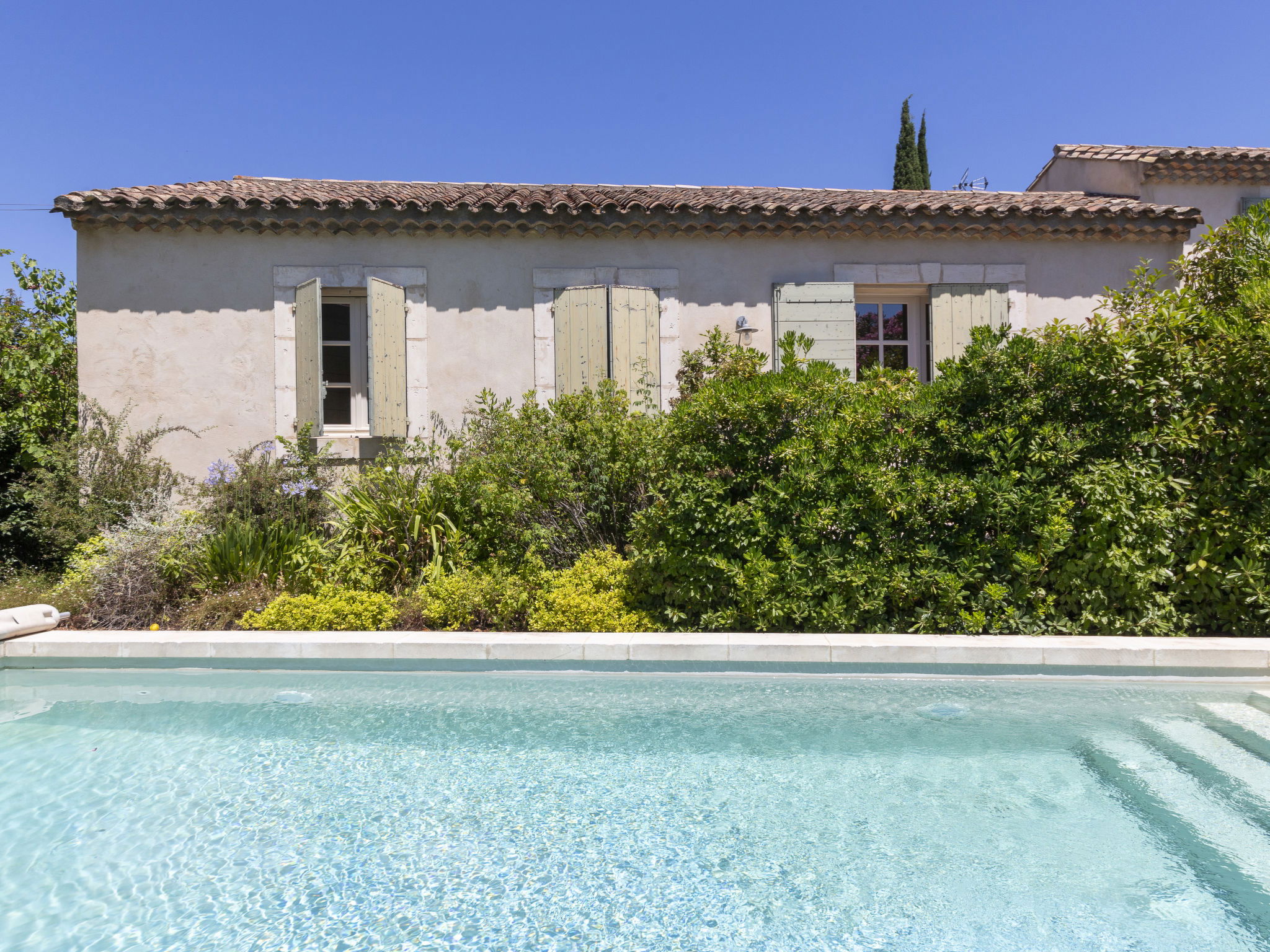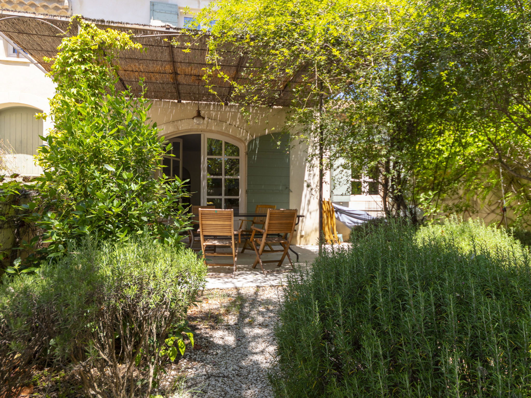 Villa "Maussane". 200 m vom Zentrum von Maussane-les-Alpilles, 10 km vom Zentrum von Saint-Rémy-de-Provence, 18 km vom Zentrum von Arles, in einem Wohnquartier, im Herzen der Stadt. Zur Alleinbenutzung: Grundstück 650 m2 (eingezäunt), Schwimmbad nicht einsehbar (8 x 4 m, saisonale Verfügbarkeit: 04.Mai. - 28.Sep.). Pergola, Terrasse, öffentliche Parkplätze auf der Strasse. Einkaufsgeschäft 200 m. Golfplatz (9 Loch) 1.5 km.
