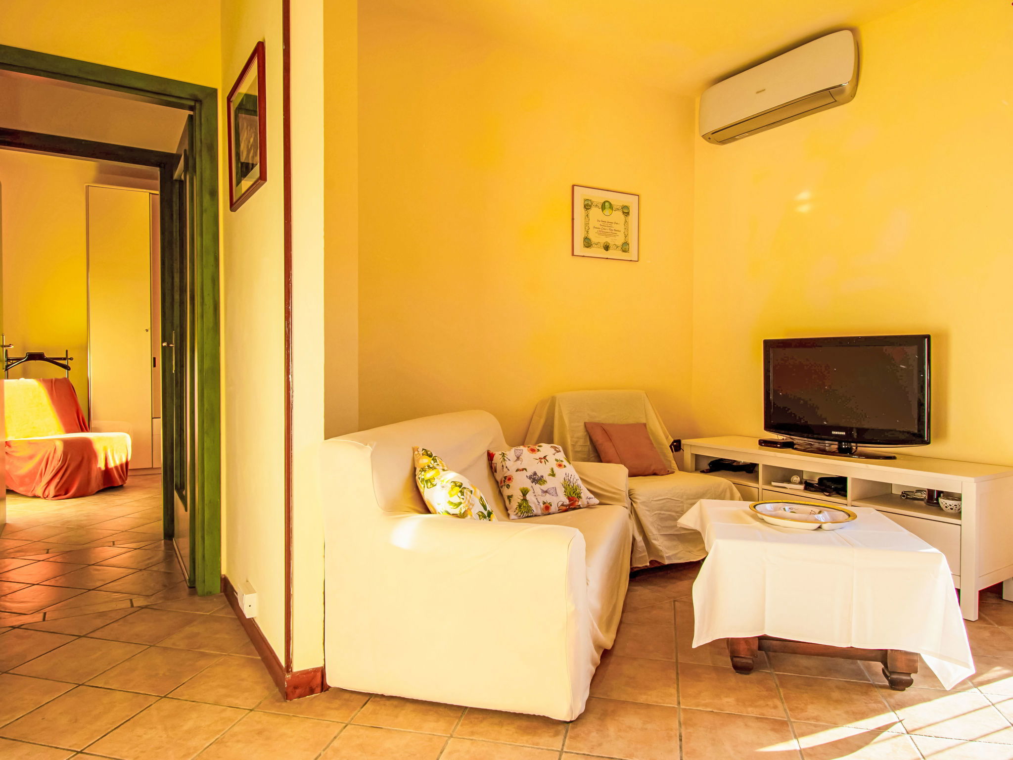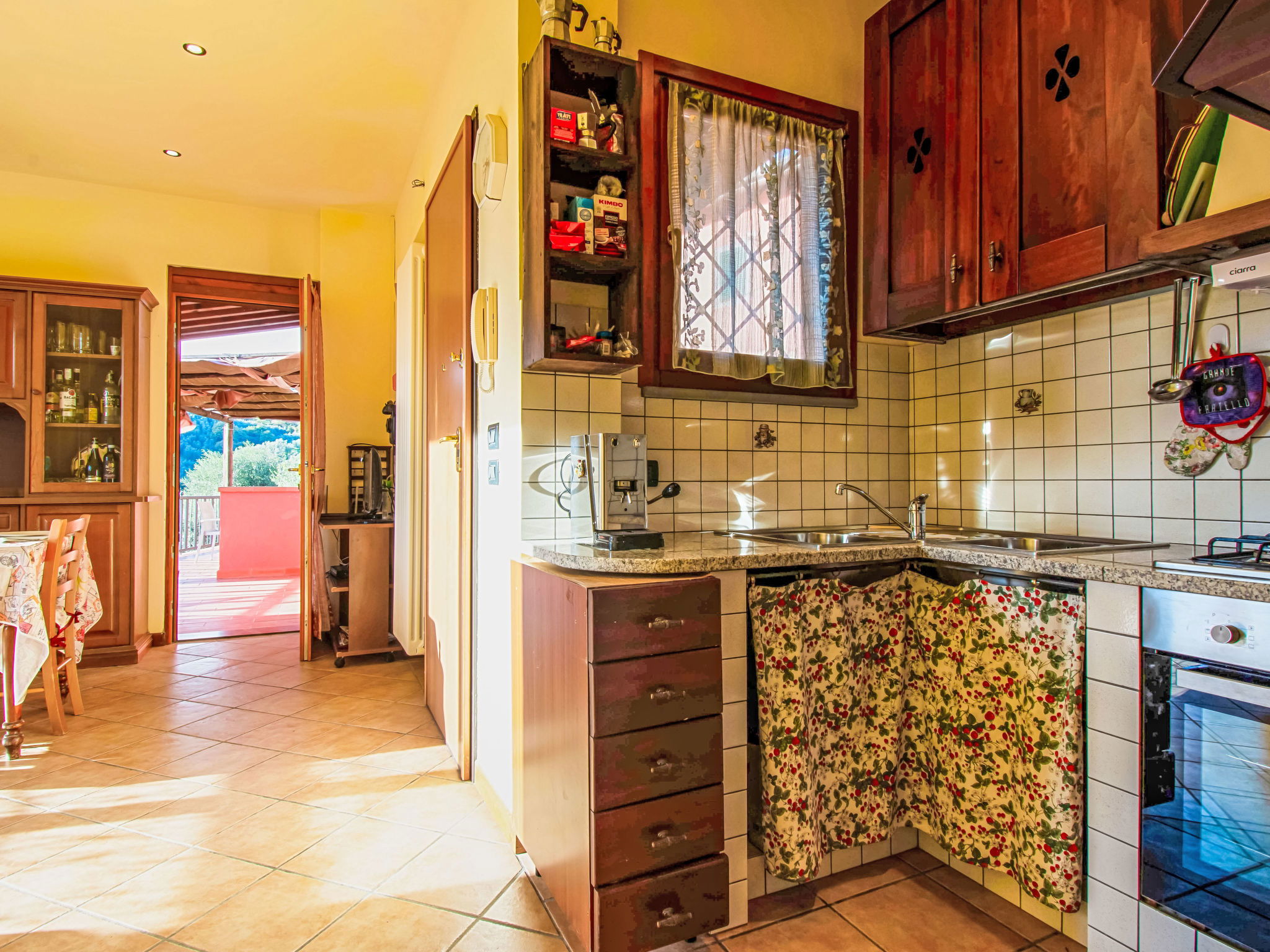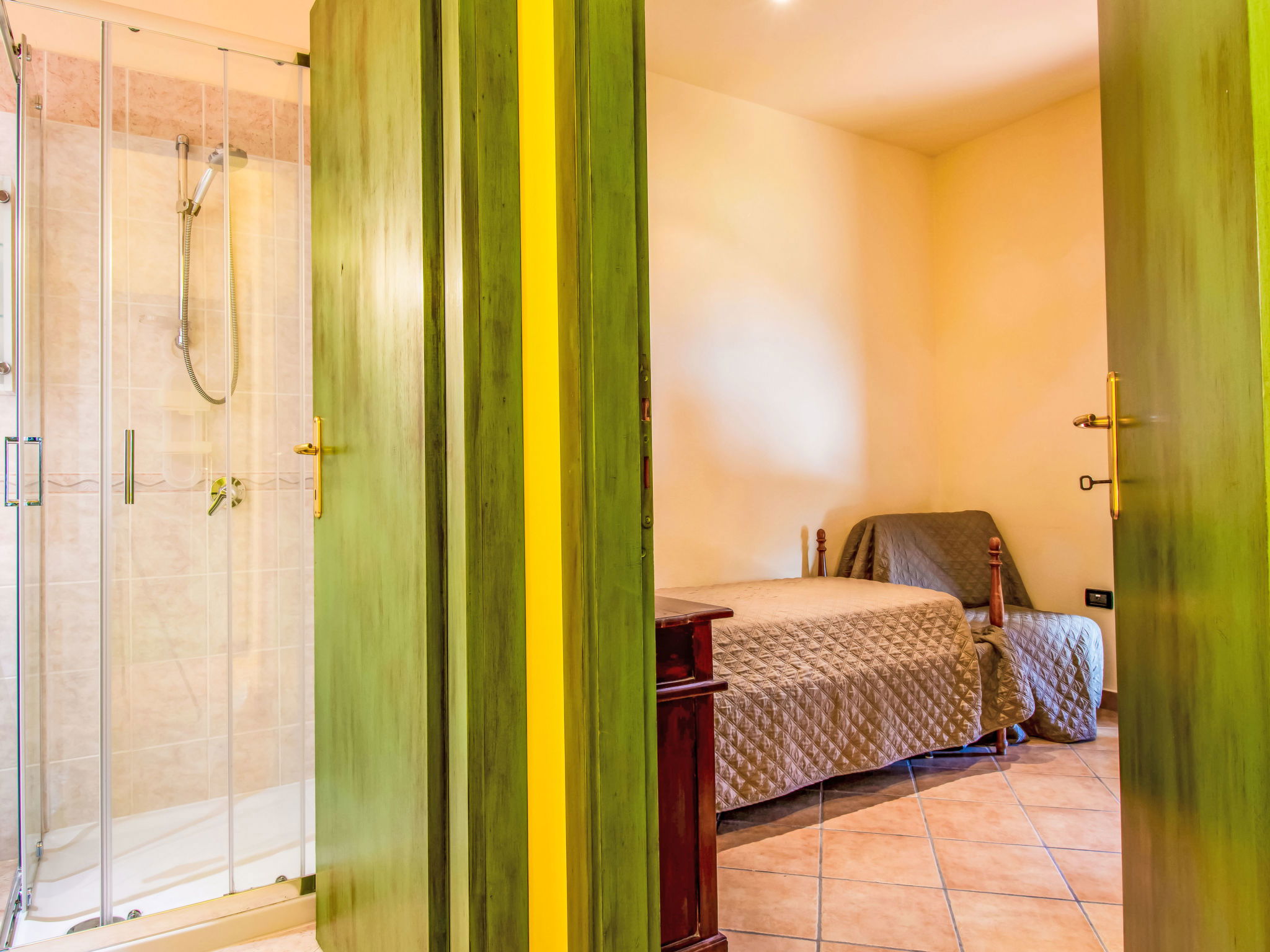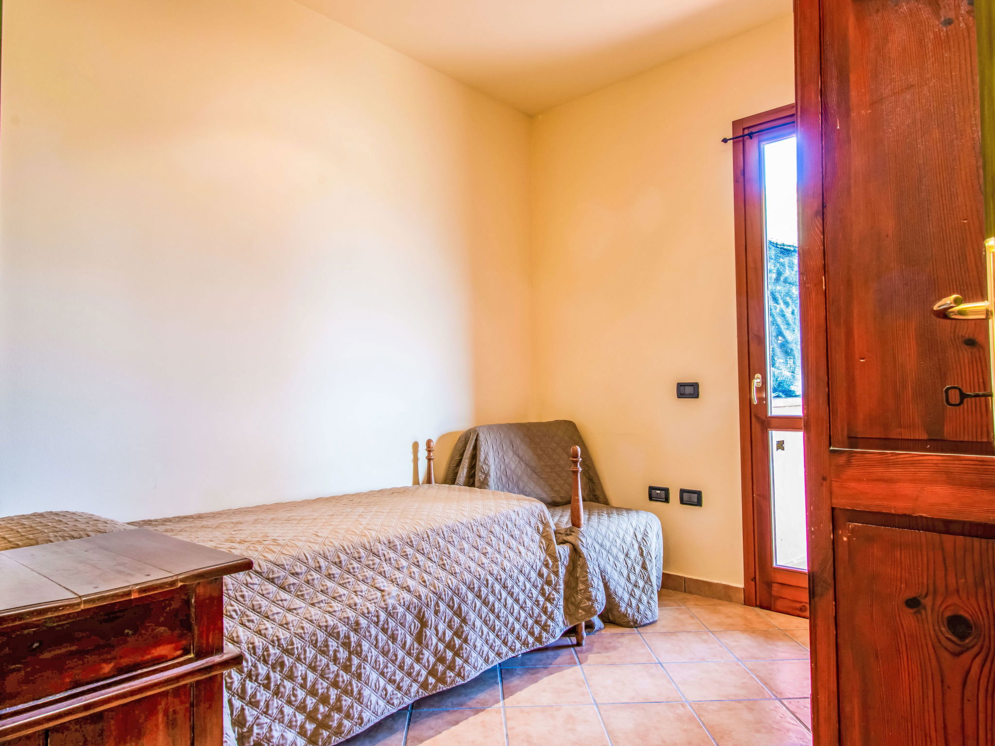 6-Zimmer-Haus 120 m2, im Erdgeschoss. Rustikal und mit viel Holz eingerichtet: offenes Wohnzimmer mit Sat-TV und Stereoanlage. 2 Doppelzimmer, jedes Zimmer mit E-Heizung und Klimaanlage. Ausgang zum Garten. 2 Zimmer, jedes Zimmer mit 1 Bett (80 cm). Offene Küche (Backofen, Geschirrspüler, 4 Flammen, Toaster, Wasserkocher, Mikrowelle, Tiefkühler, elektrische Kaffeemaschine) mit Esstisch, offenem Kamin. 2 Duschen/WC. Terrasse 20 m2, Terrasse 8 m2. Terrassenmöbel, Gartengrill, Liegestühle. Schöne Sicht auf die Landschaft. Zur Verfügung: Waschmaschine, Bügeleisen, Kinderhochstuhl, Babybett bis 2 Jahre. Internet (WLAN, gratis). Parkplatz (eingezäunt, 3 Autos) beim Haus. Bitte beachten: Nichtraucher-Haus. Maximal 2 Haustiere/Hunde erlaubt. Rauchmelder, Feuerlöscher. Keine interne Verbindung zwischen den separaten Wohneinheiten. IT047011C2QDFZ6G4Z