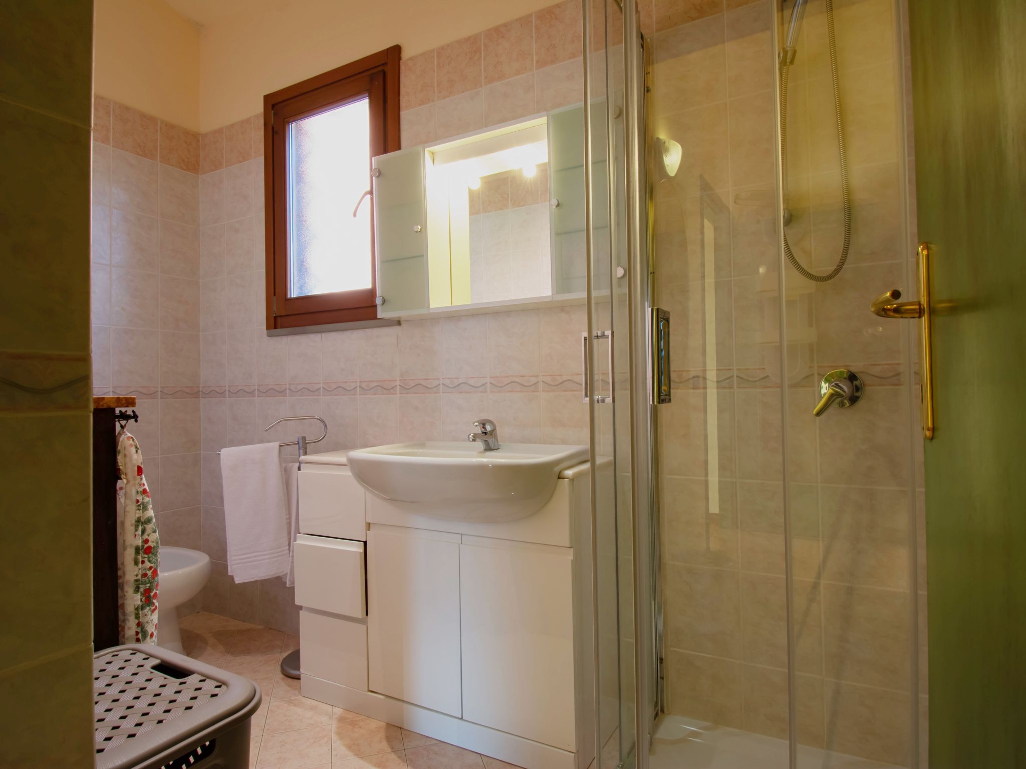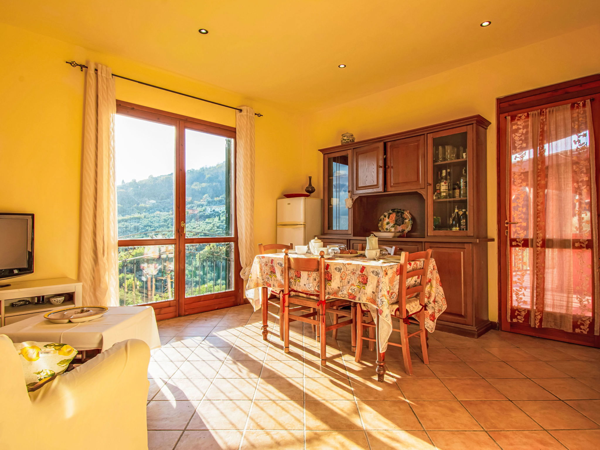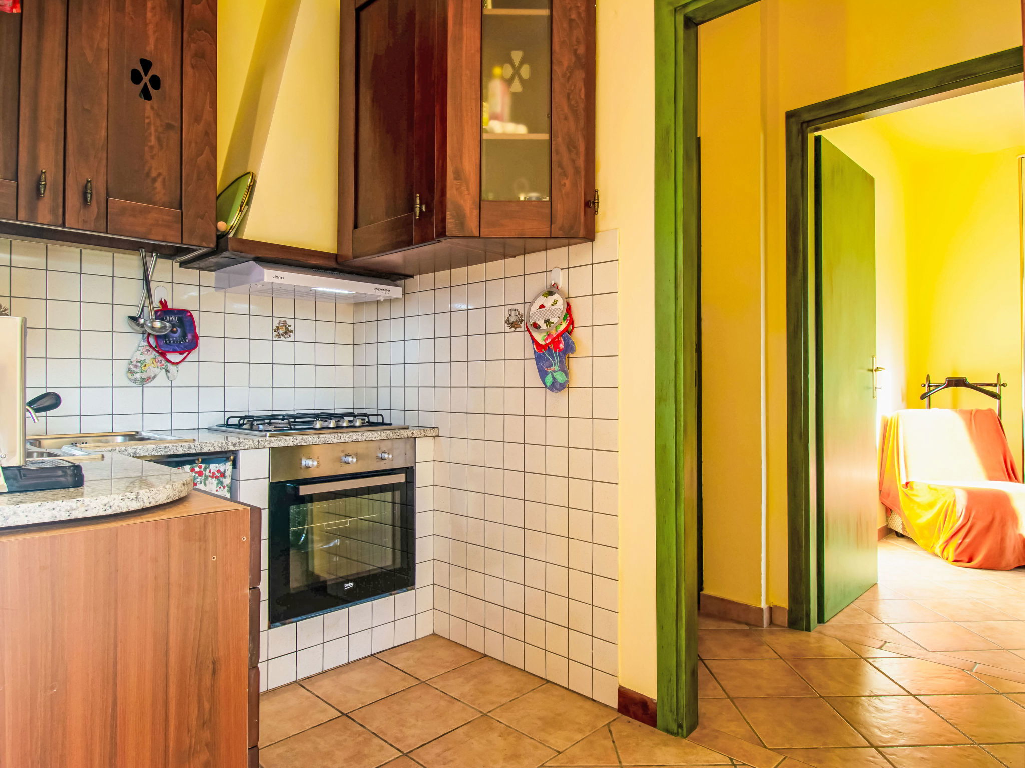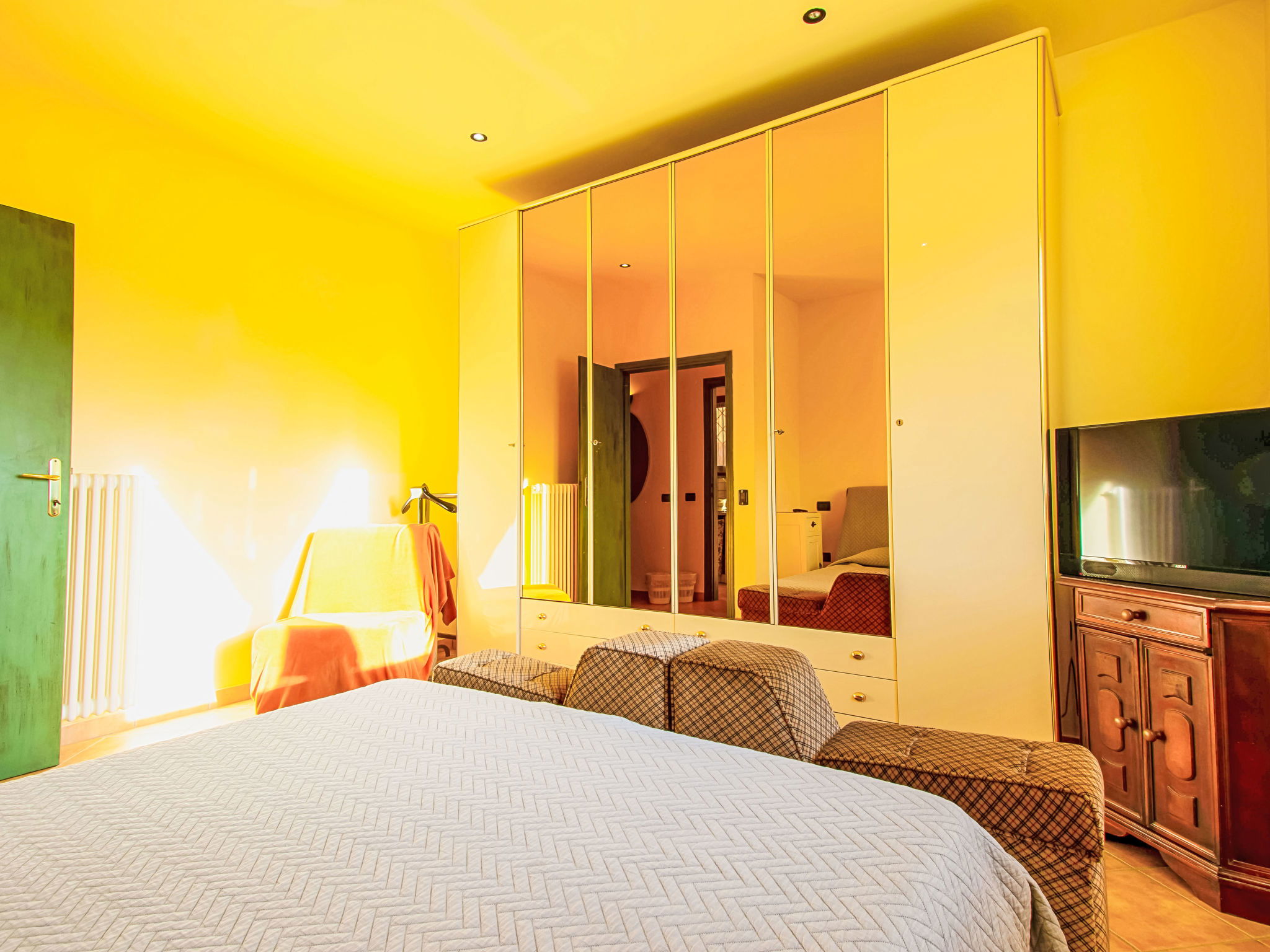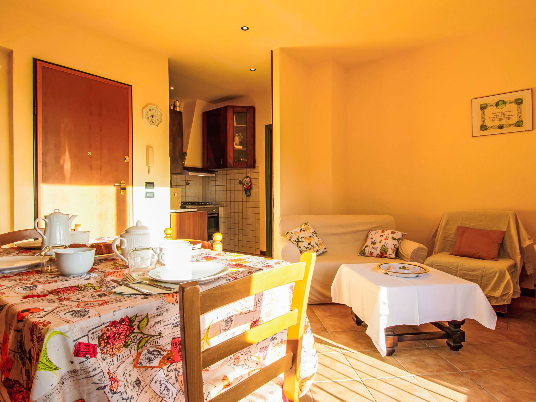 6-Zimmer-Haus 120 m2, im Erdgeschoss. Rustikal und mit viel Holz eingerichtet: offenes Wohnzimmer mit Sat-TV und Stereoanlage. 2 Doppelzimmer, jedes Zimmer mit E-Heizung und Klimaanlage. Ausgang zum Garten. 2 Zimmer, jedes Zimmer mit 1 Bett (80 cm). Offene Küche (Backofen, Geschirrspüler, 4 Flammen, Toaster, Wasserkocher, Mikrowelle, Tiefkühler, elektrische Kaffeemaschine) mit Esstisch, offenem Kamin. 2 Duschen/WC. Terrasse 20 m2, Terrasse 8 m2. Terrassenmöbel, Gartengrill, Liegestühle. Schöne Sicht auf die Landschaft. Zur Verfügung: Waschmaschine, Bügeleisen, Kinderhochstuhl, Babybett bis 2 Jahre. Internet (WLAN, gratis). Parkplatz (eingezäunt, 3 Autos) beim Haus. Bitte beachten: Nichtraucher-Haus. Maximal 2 Haustiere/Hunde erlaubt. Rauchmelder, Feuerlöscher. Keine interne Verbindung zwischen den separaten Wohneinheiten. IT047011C2QDFZ6G4Z