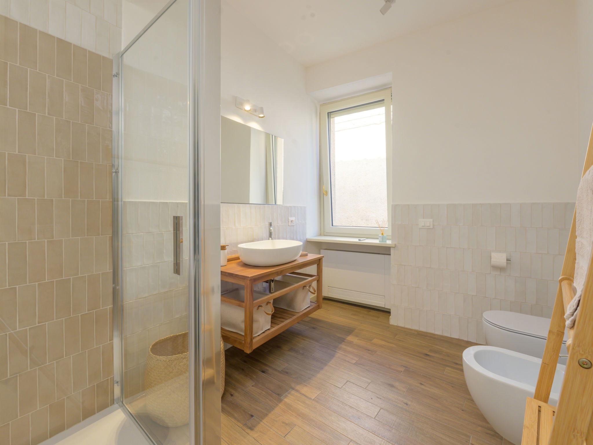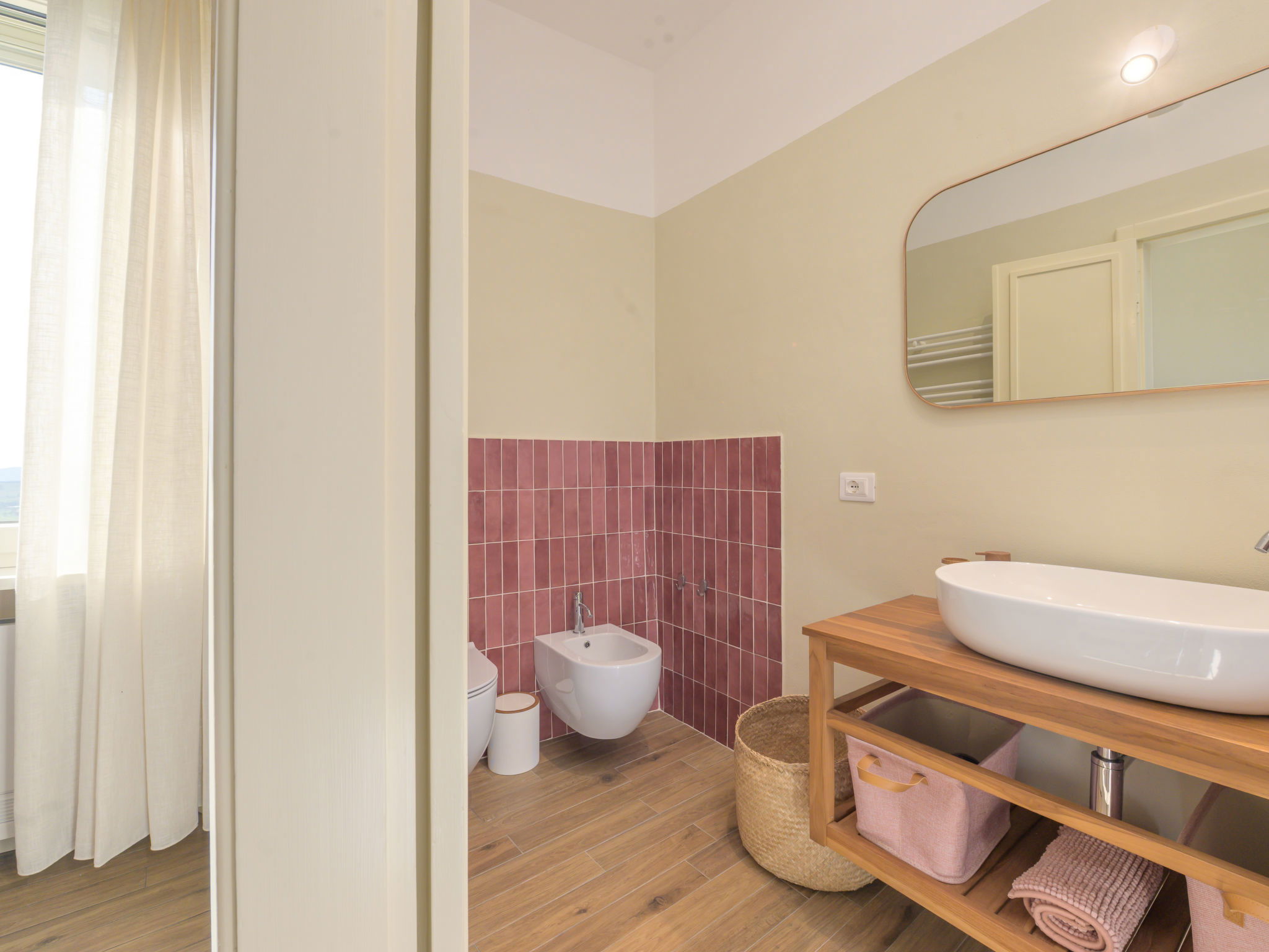 6-Zimmer-Haus 200 m2 auf 2 Stockwerken. Geräumig und hell, modern und geschmackvoll eingerichtet: 3 Doppelzimmer, jedes Zimmer mit Dusche/Bidet/WC. 1 Zimmer mit 2 Betten (80 cm), Dusche/Bidet/WC. 1 Zimmer mit 1 franz. Bett (140 cm), Dusche/Bidet/WC. Unteres Geschoss: offenes grosses Wohn-/Esszimmer mit Panoramafenster mit Esstisch und TV. Ausgang zum Garten. Gartensitzplatz teilweise überdacht, Garten. Sehr schöne Panoramasicht auf das Meer und die Landschaft. Zur Verfügung: Waschmaschine, Bügeleisen, Babybett bis 2 Jahre, Haartrockner. Internet (WLAN, gratis). Parkplatz beim Haus. Bitte beachten: Maximal 1 Haustier/Hund erlaubt. Eigener Eingang, Feuerlöscher. IT053013C2WCFK9D2M