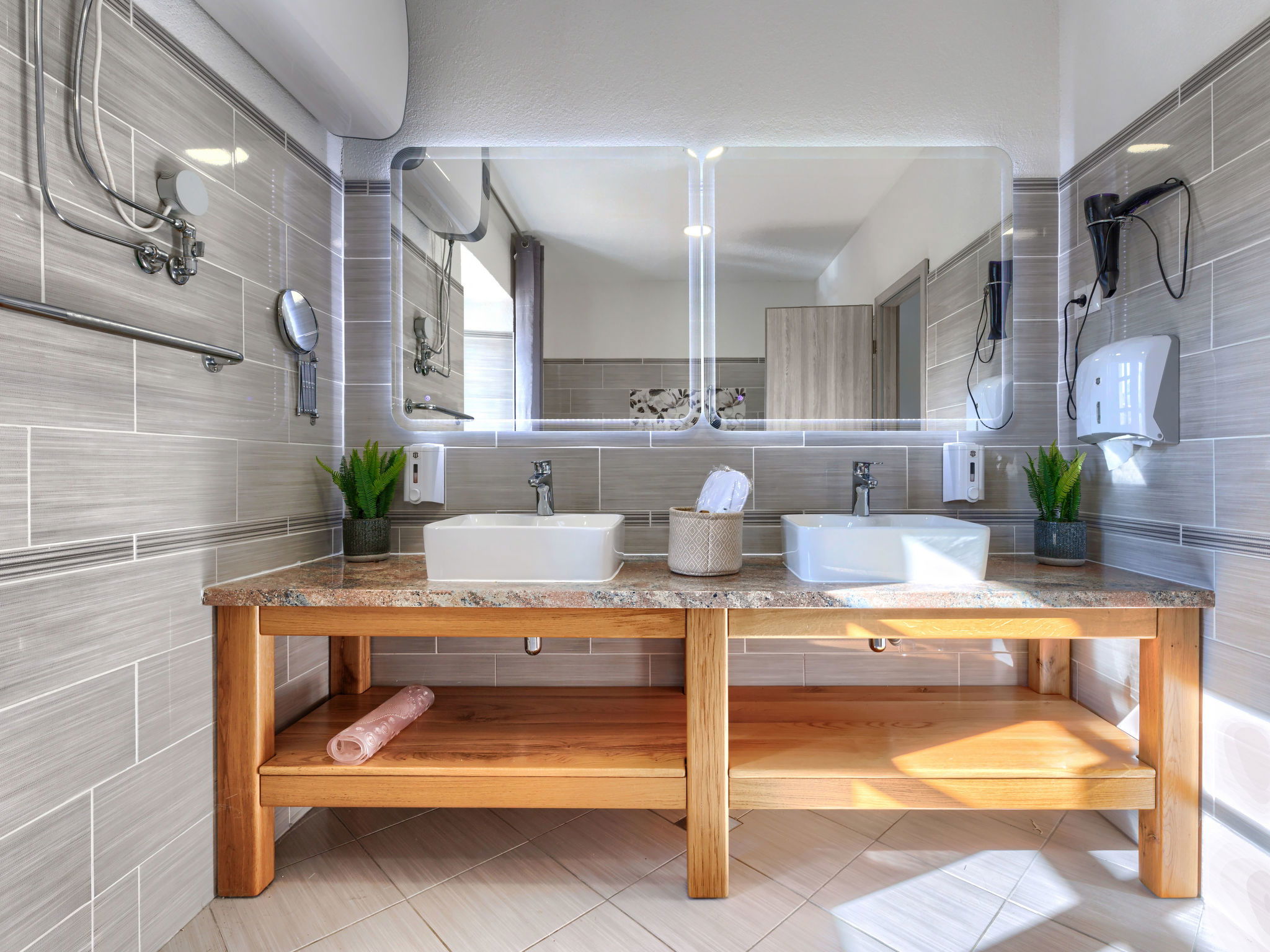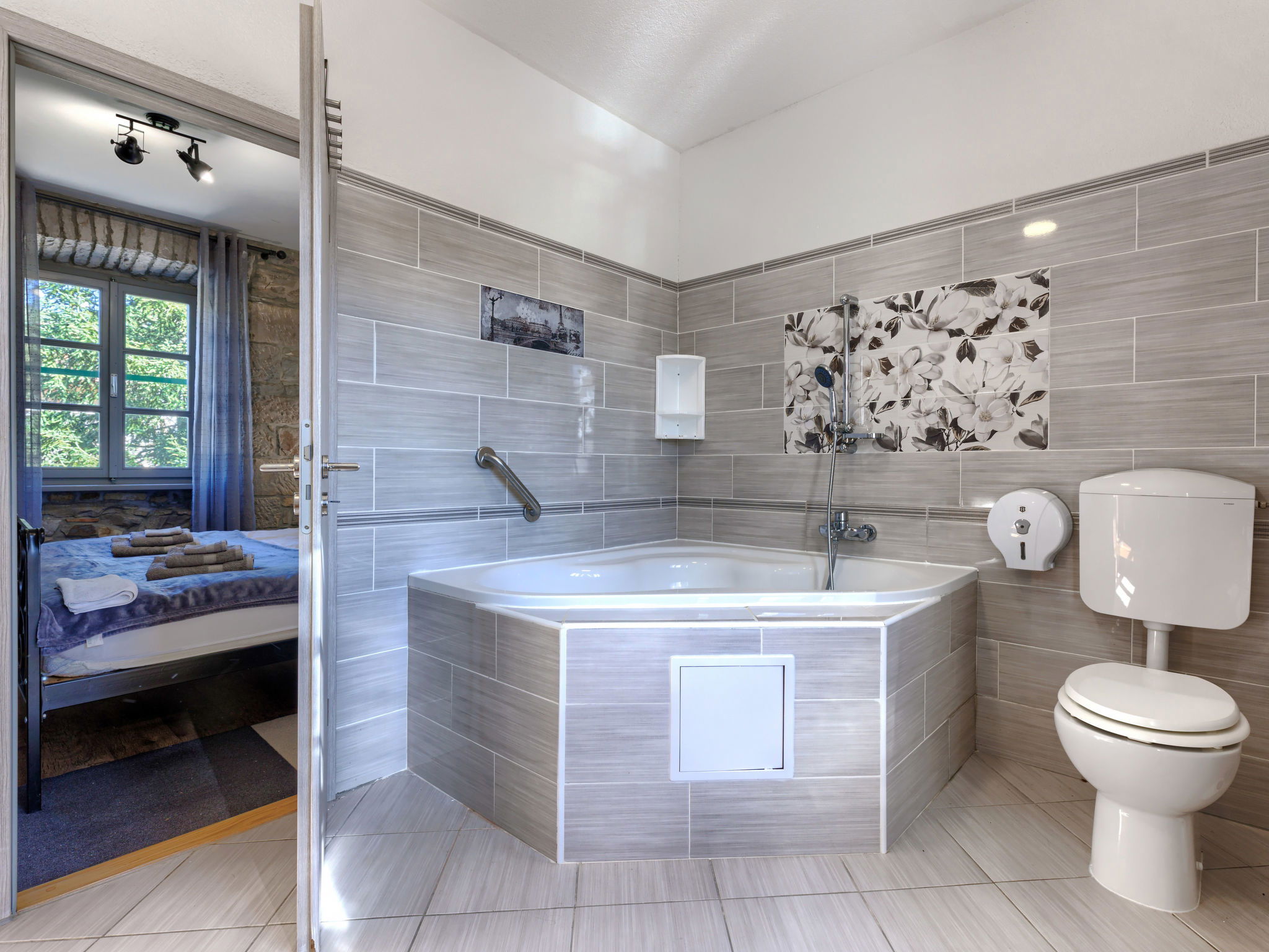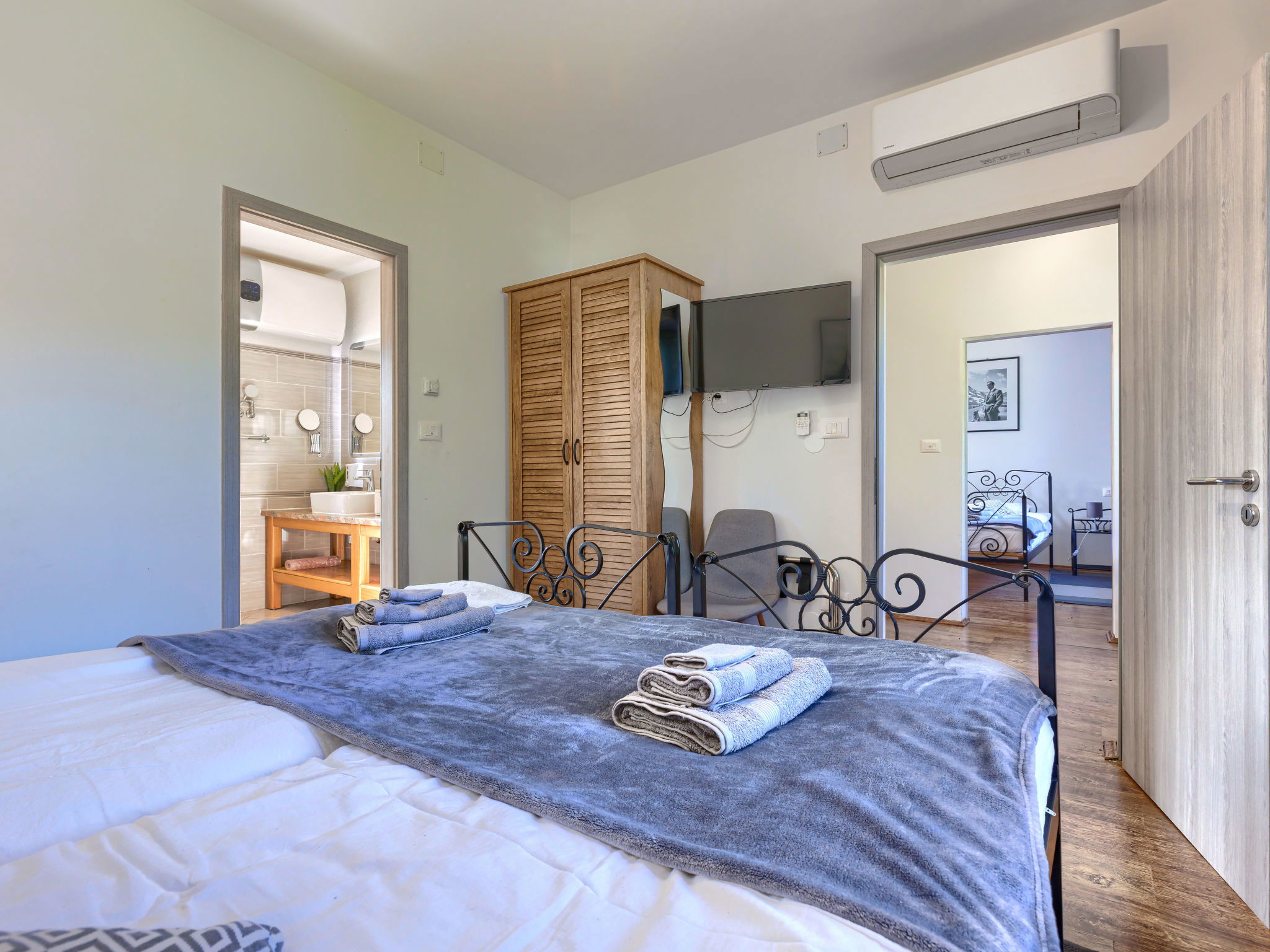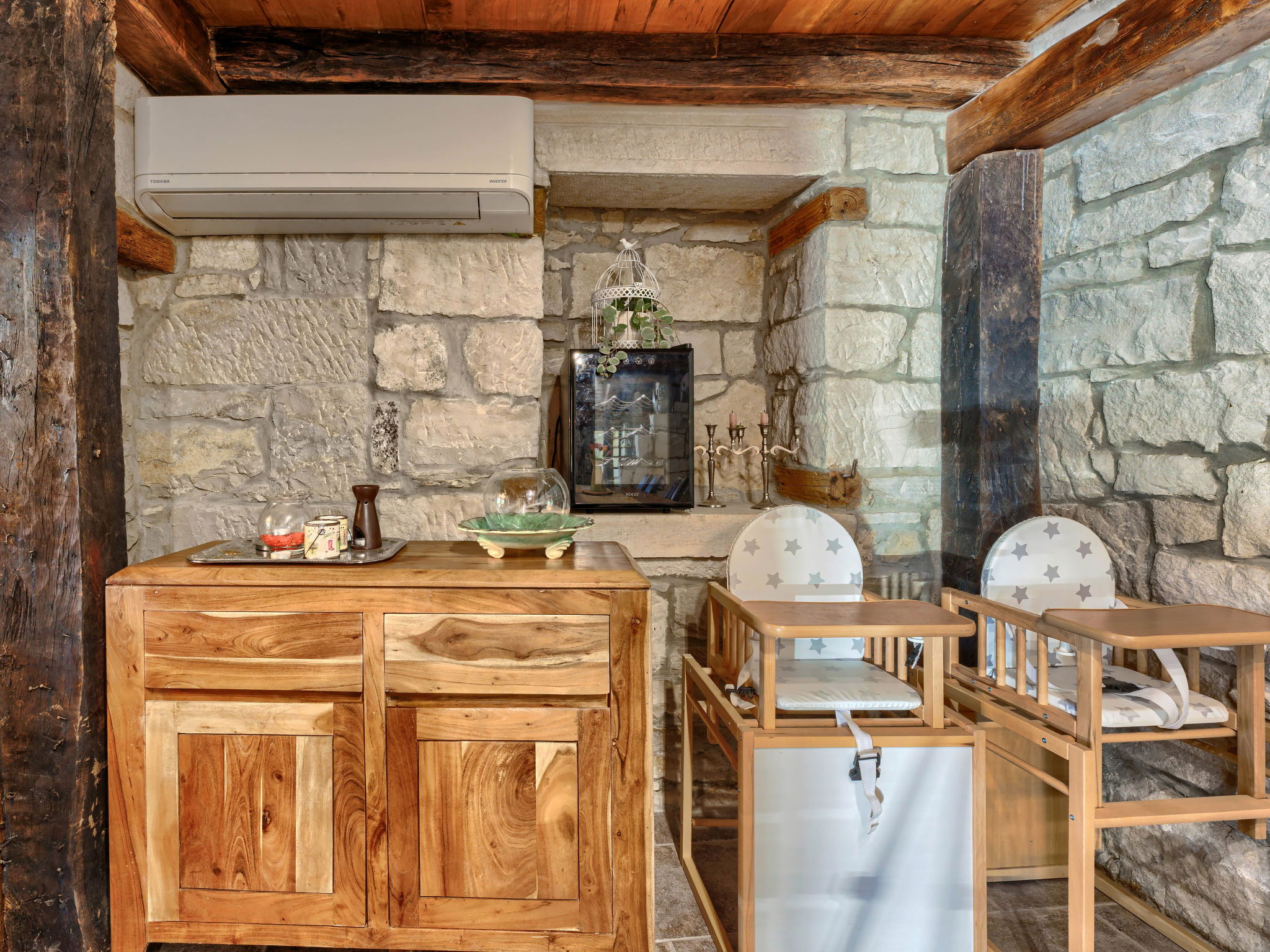 6-Zimmer-Villa 333 m2 auf 2 Stockwerken. Rustikal und gemütlich eingerichtet: Wohn-/Esszimmer mit Sat-TV und Klimaanlage. Ausgang zum Schwimmbad. Galerie mit 2 Diwanbetten (140 cm, Länge 200 cm), 2 Schlafmöglichkeiten (90 cm, Länge 200 cm), sep. WC. 2 Zimmer, jedes Zimmer mit 2 Betten (90 cm, Länge 200 cm), Dusche/WC, Sat-TV und Klimaanlage. Offene Küche (Backofen, Geschirrspüler, 5 Flammen, Toaster, Wasserkocher, Mikrowelle, Tiefkühler, elektrische Kaffeemaschine). Obergeschoss: 2 Zimmer, jedes Zimmer mit 1 franz. Bett (160 cm, Länge 200 cm), Bad/WC, Sat-TV und Klimaanlage. Heizung. Liegestühle. Sicht auf die Landschaft. Zur Verfügung: Safe, Kinderhochstuhl, Babybett, Haartrockner. Internet (WLAN, gratis). Maximal 1 Haustier/Hund erlaubt.