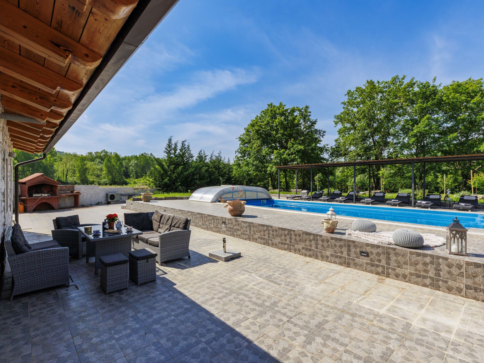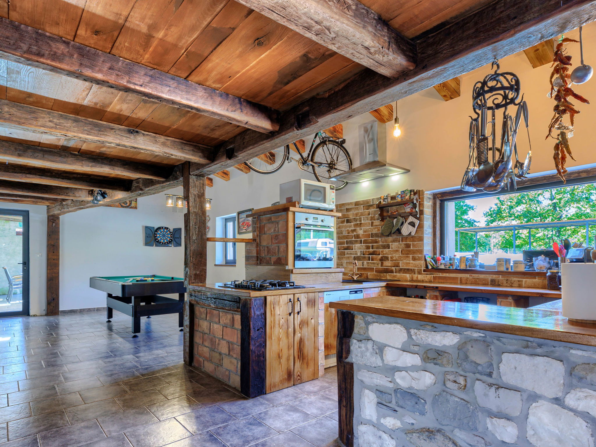 Gradinje 5 km von Motovun: Schöne Villa "Tina", auf 2 Stockwerken. 10 km vom Zentrum von Buzet, 30 km vom Zentrum von Novigrad, ruhige Lage, 30 km vom Meer, im Grünen. Zur Alleinbenutzung: Grundstück 3'500 m2 (eingezäunt), Garten mit Rasen, Schwimmbad eckig, beheizt (75 m2, 100 - 170 cm tief, saisonale Verfügbarkeit: 01.Mar. - 01.Nov.) mit Innentreppe und Rollladenabdeckung. Aussendusche, Terrasse (25 m2), Gartenmöbel, Grill, Kinderspielplatz (Rutschbahn, Schaukel). Im Hause: Internetzugang, Tischtennis, Billard, Waschmaschine. Parkplatz (für 6 Autos, überdacht) beim Haus auf dem Grundstück. E-Ladestation. Einkaufsgeschäft 3.5 km, Restaurant 400 m, Bushaltestelle 3.8 km. Wanderwege ab Haus, Radweg 100 m. Nahe gelegene Sehenswürdigkeiten: Aquapark 14 km. Bitte beachten: Flugplatz 30 km vom Haus. Fahrräder auf Anfrage (extra).