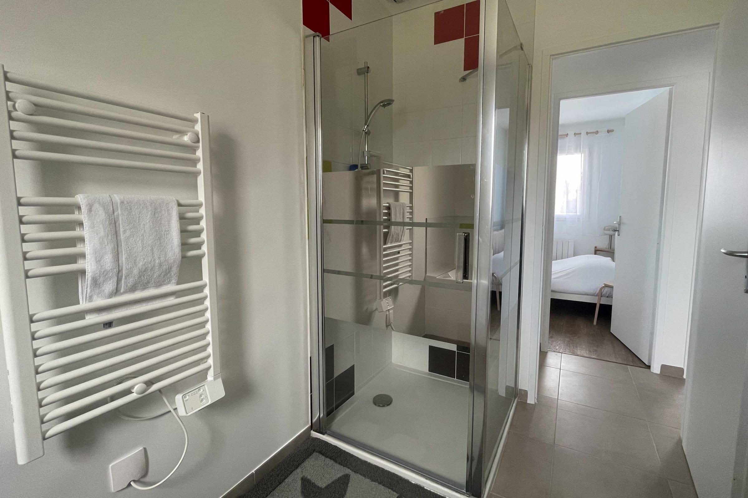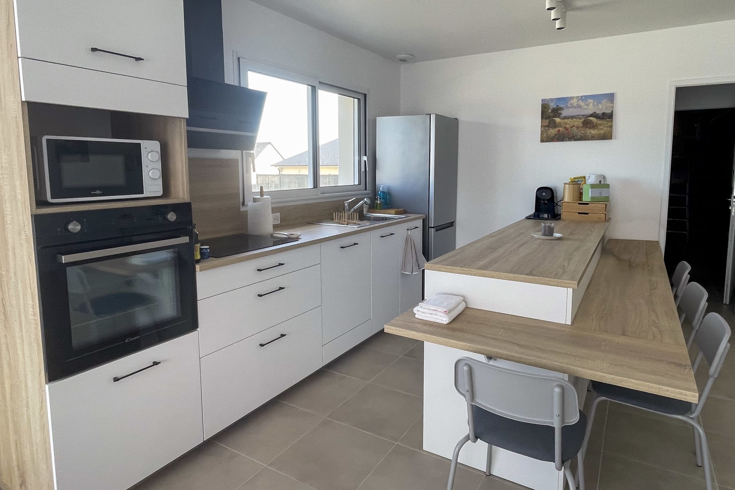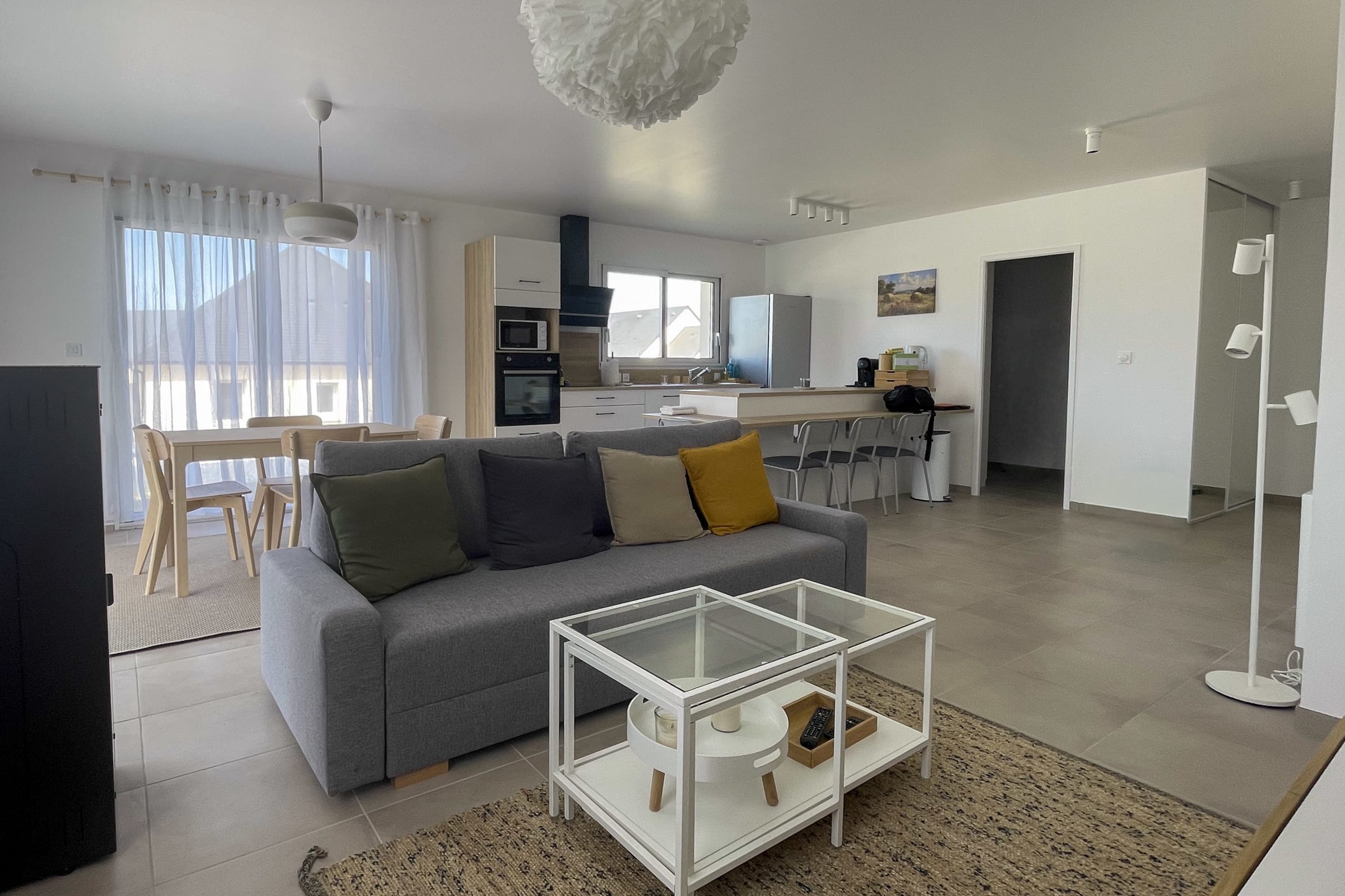 Sie haben 3 Schlafzimmer mit Doppelbetten, eine ebenerdige Dusche und einen großen, sehr hellen Wohnbereich, der Küche, Esszimmer und Wohnzimmer vereint.